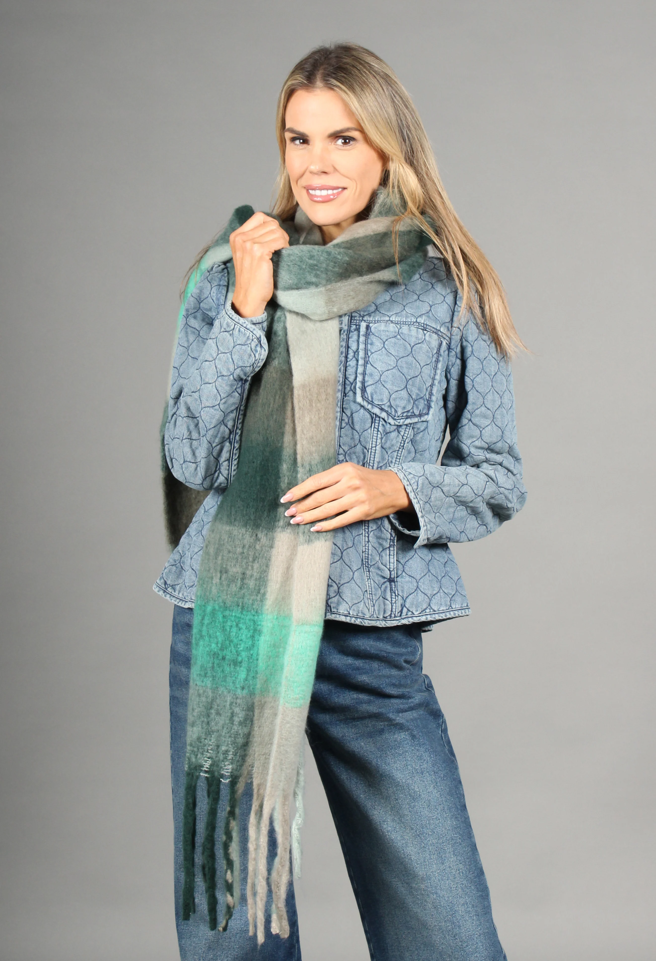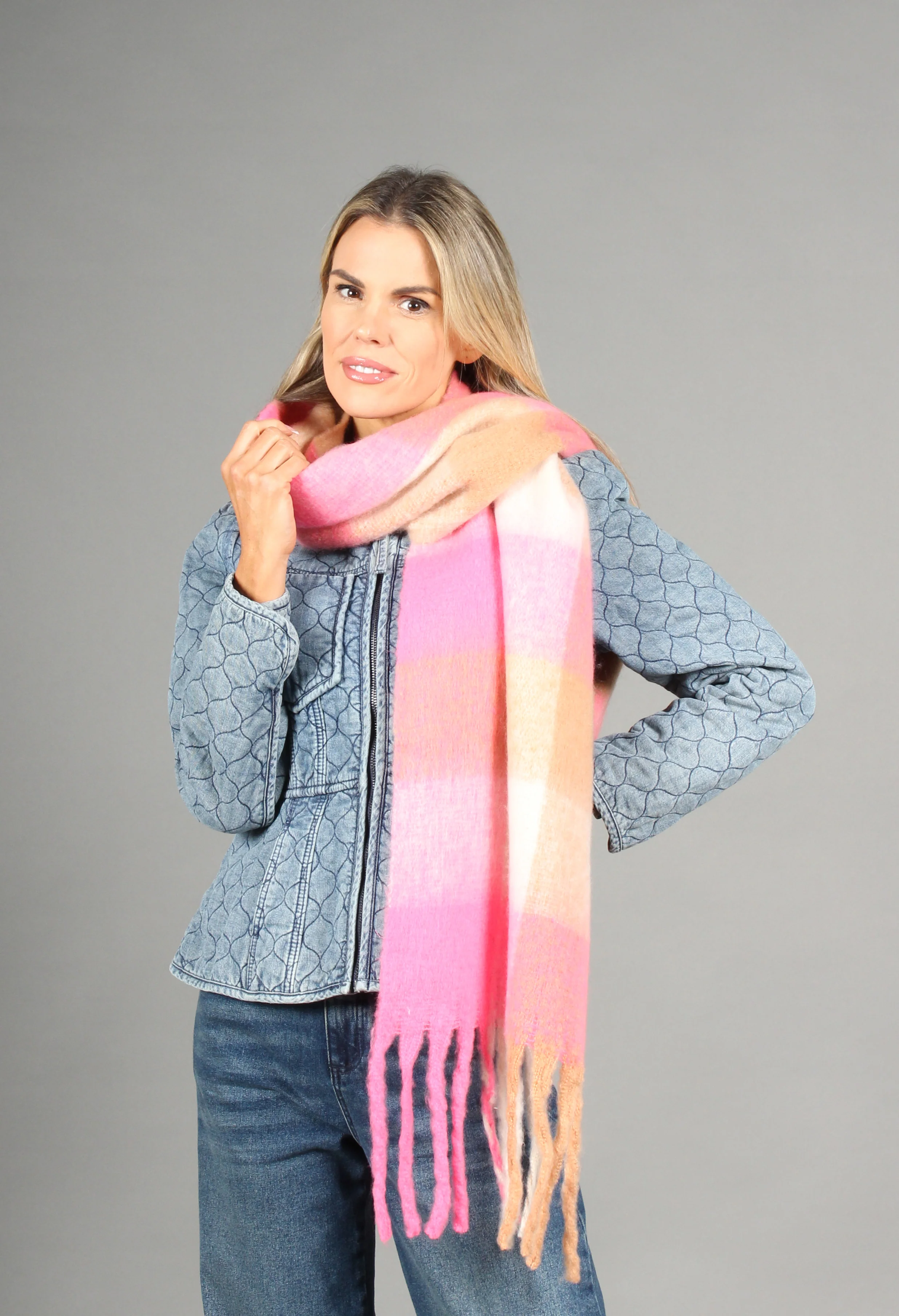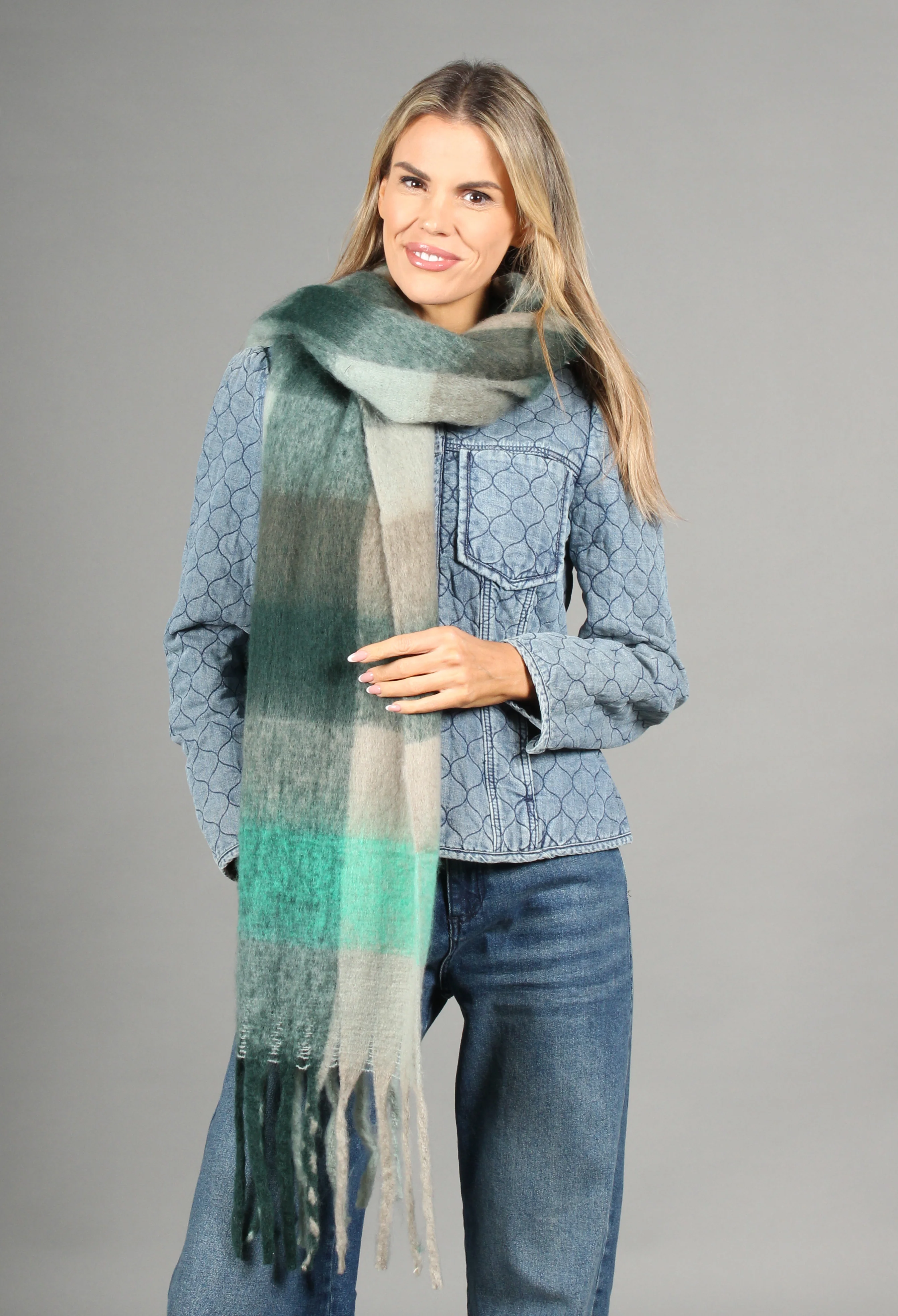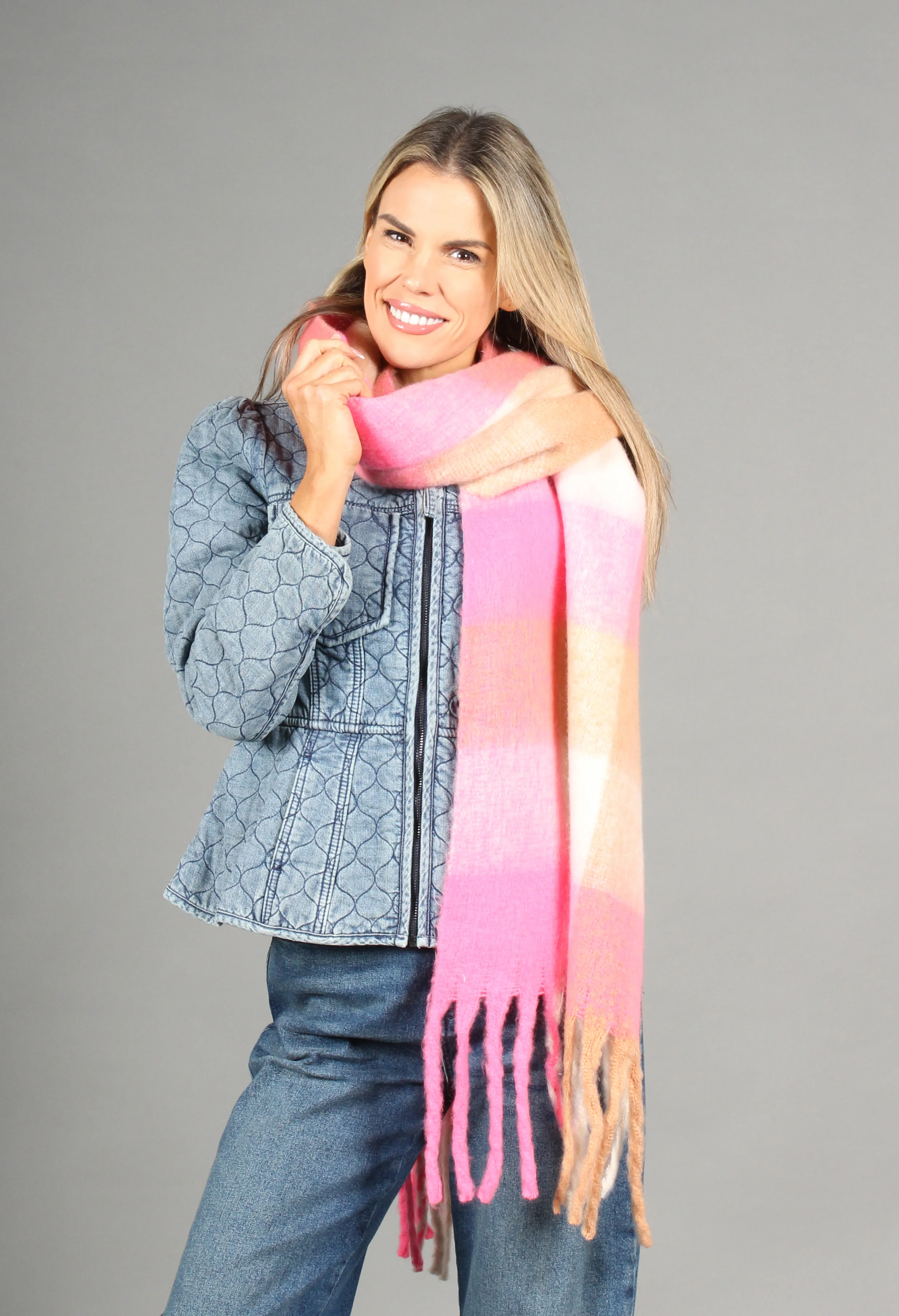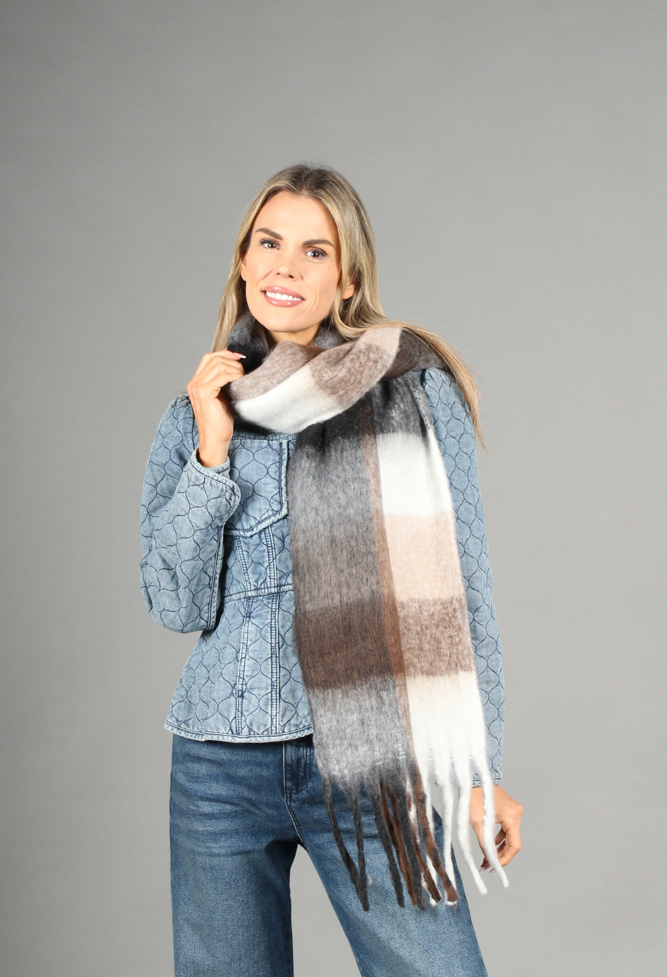 Super Soft Tassel End Check Scarf