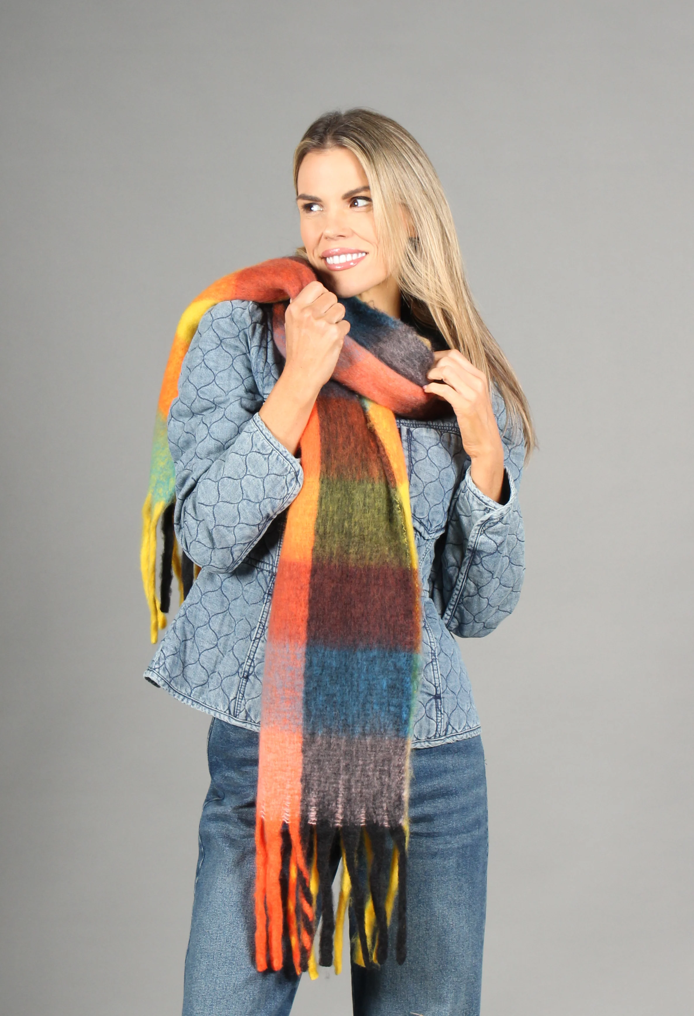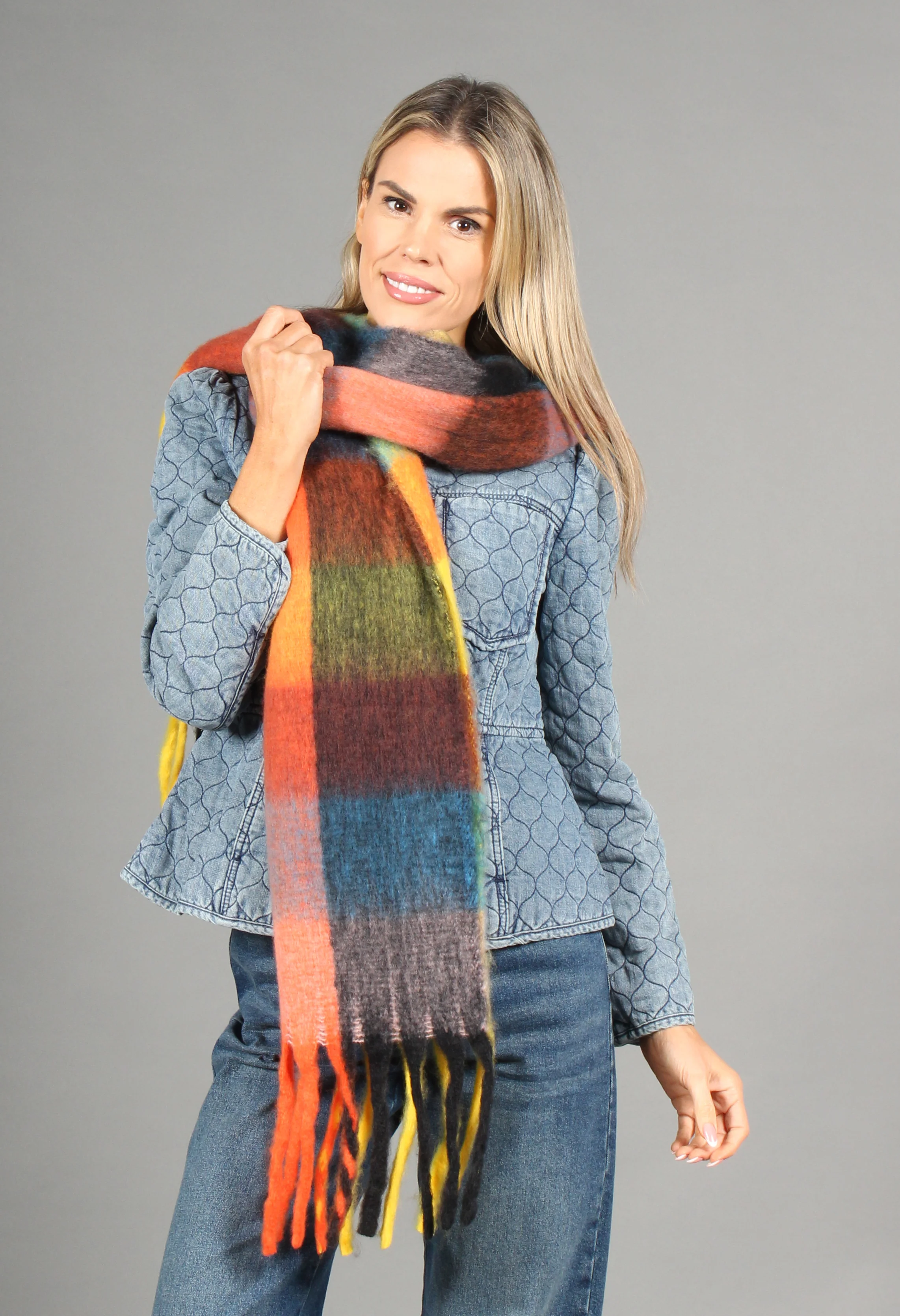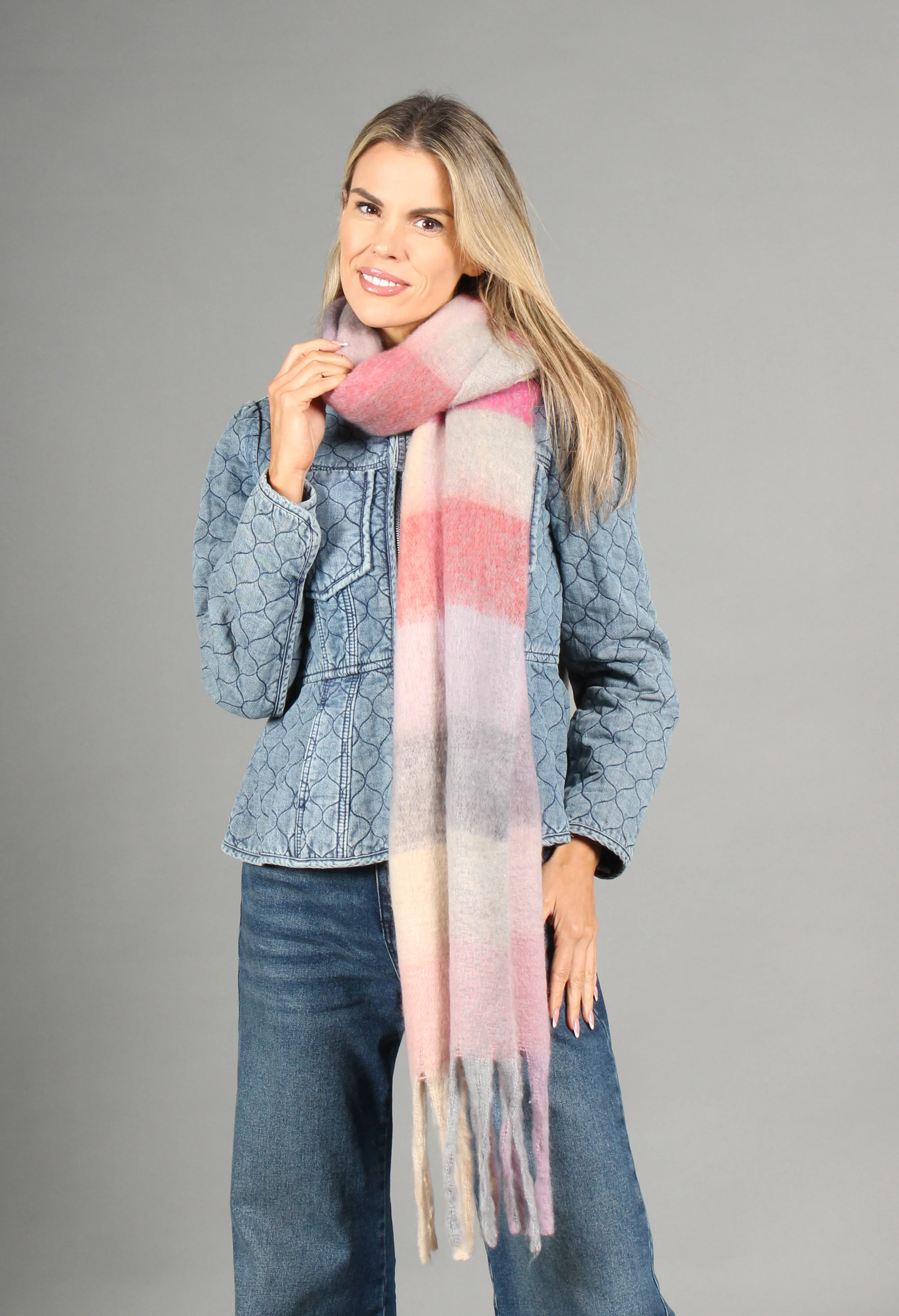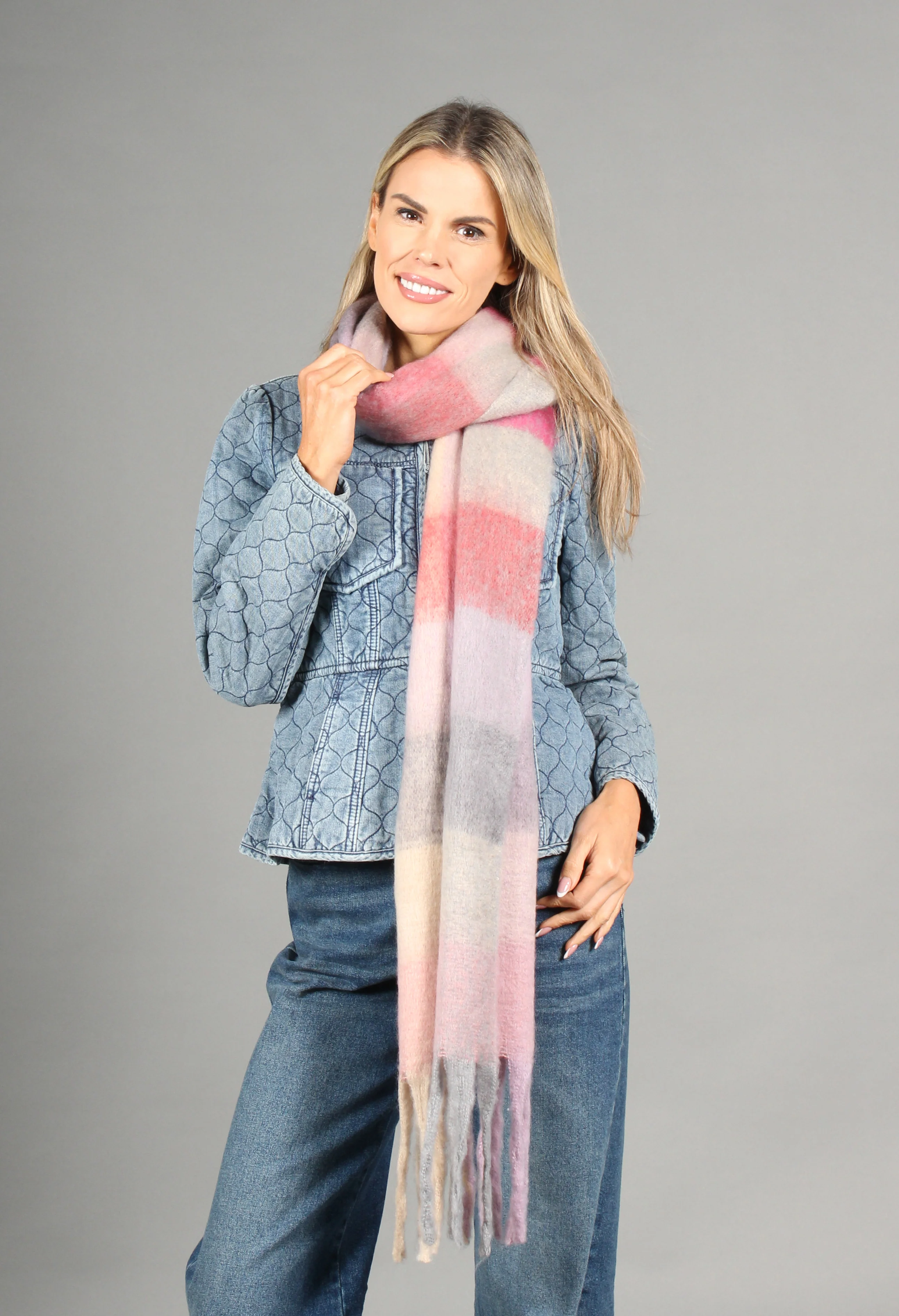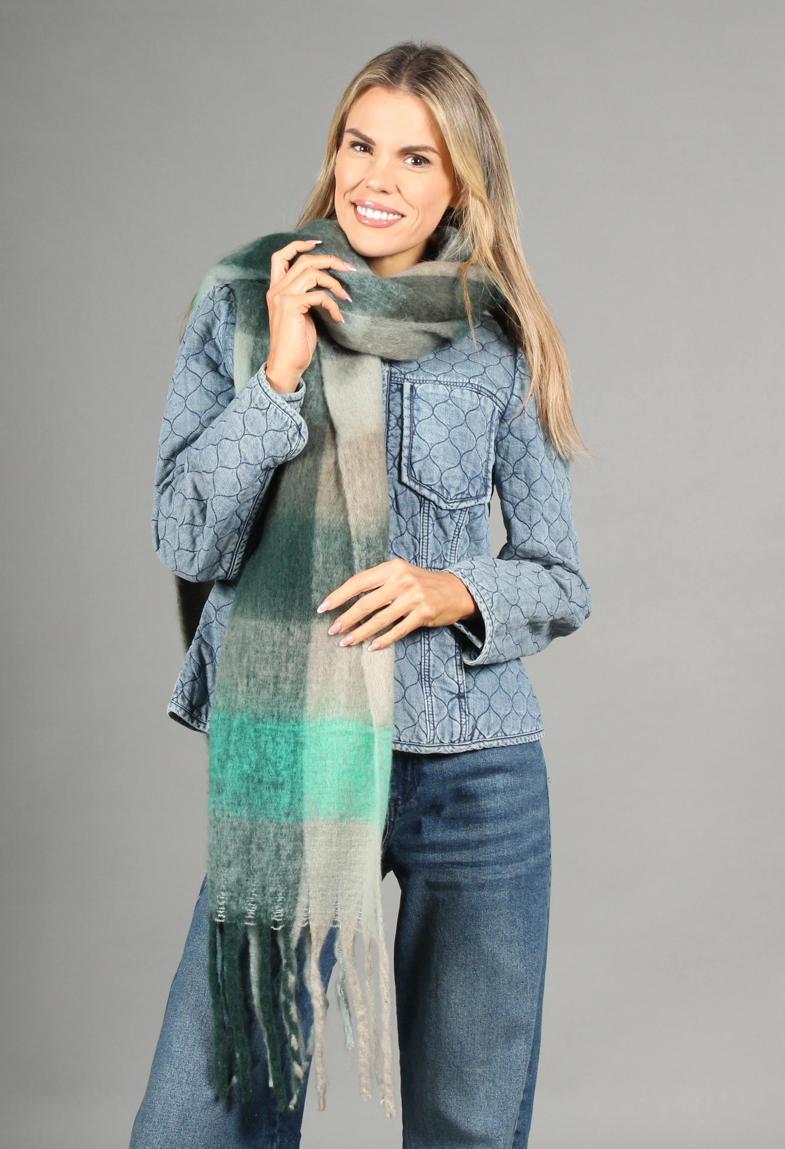 Super Soft Tassel End Check Scarf