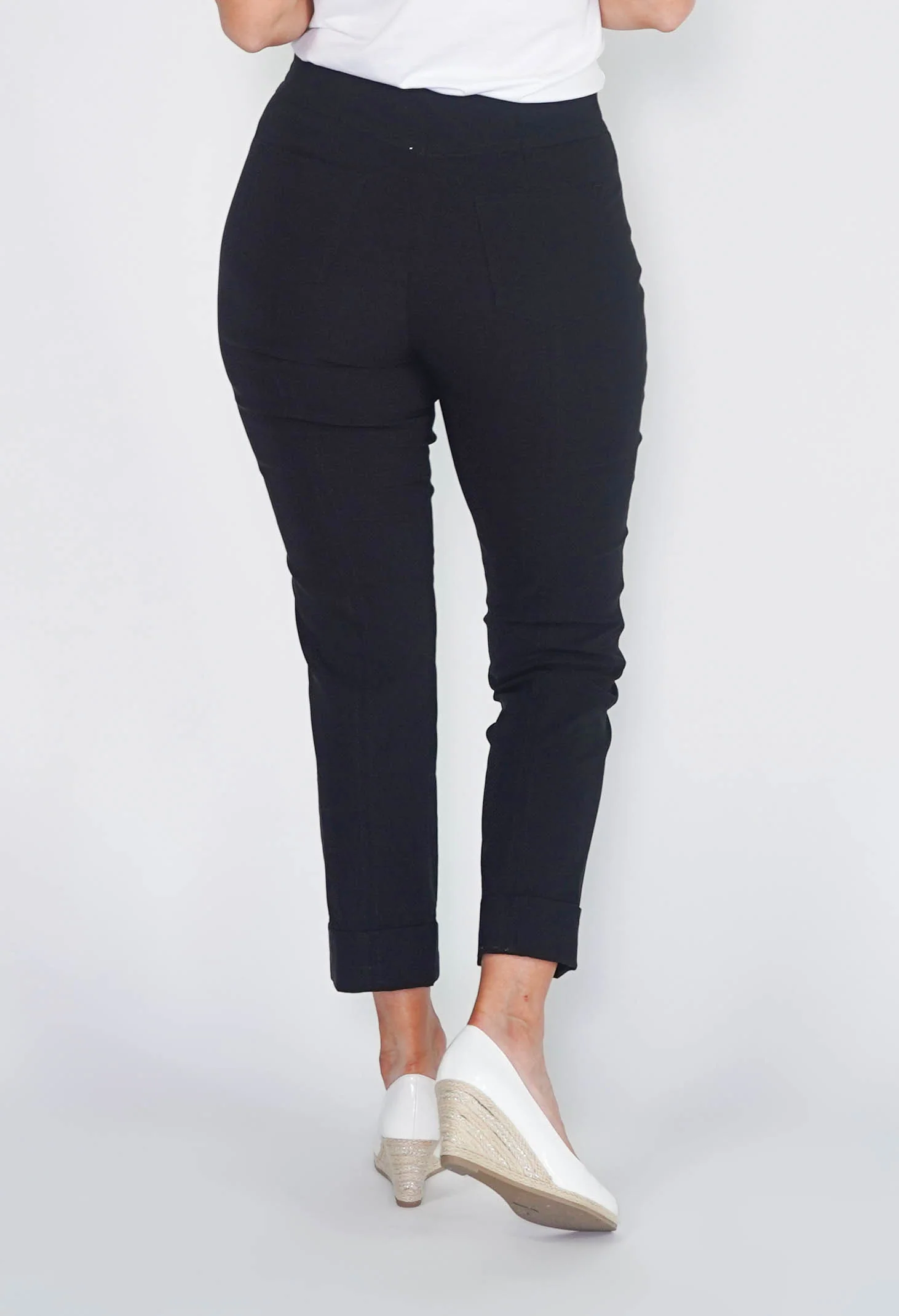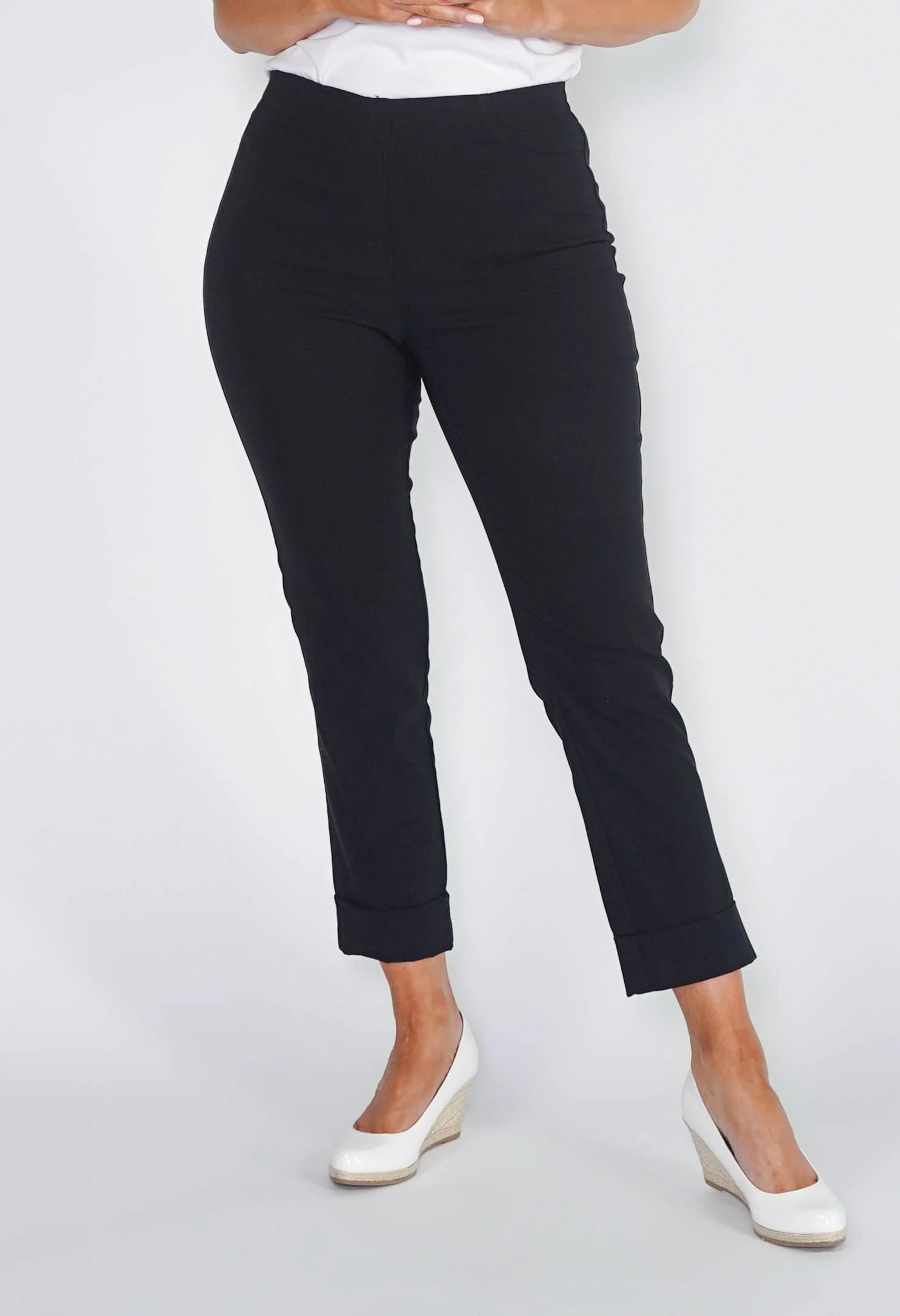 Black MAGIC SHAPE CROPPED TURN UP TROUSERS
