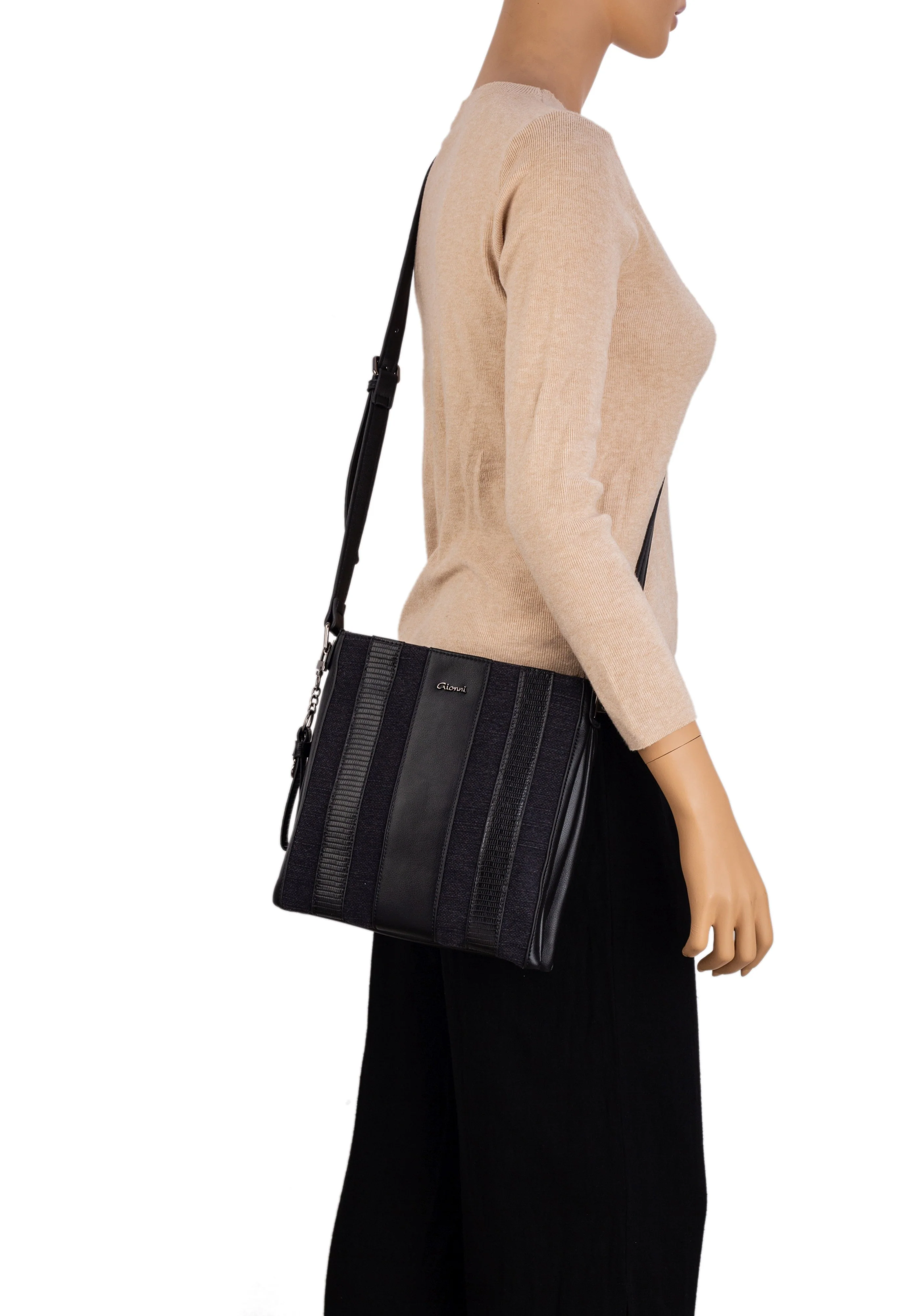 Blue Crossbody Bag with Studded and Zip Detail Front