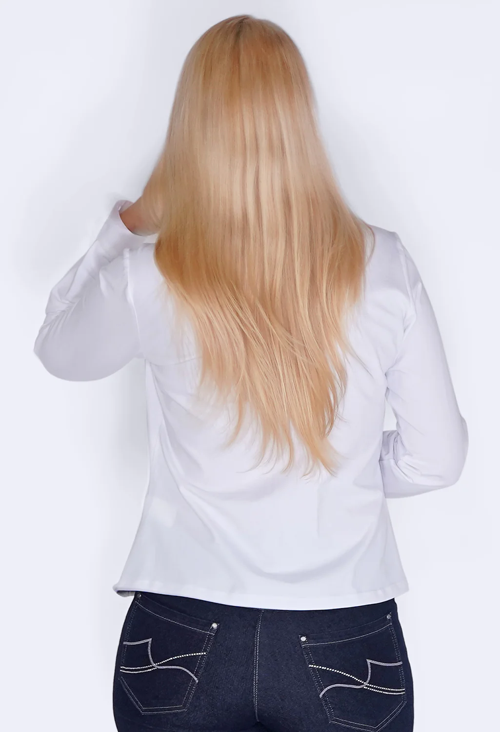 WHITE SHIRT WITH BLUE PRINT TRIM