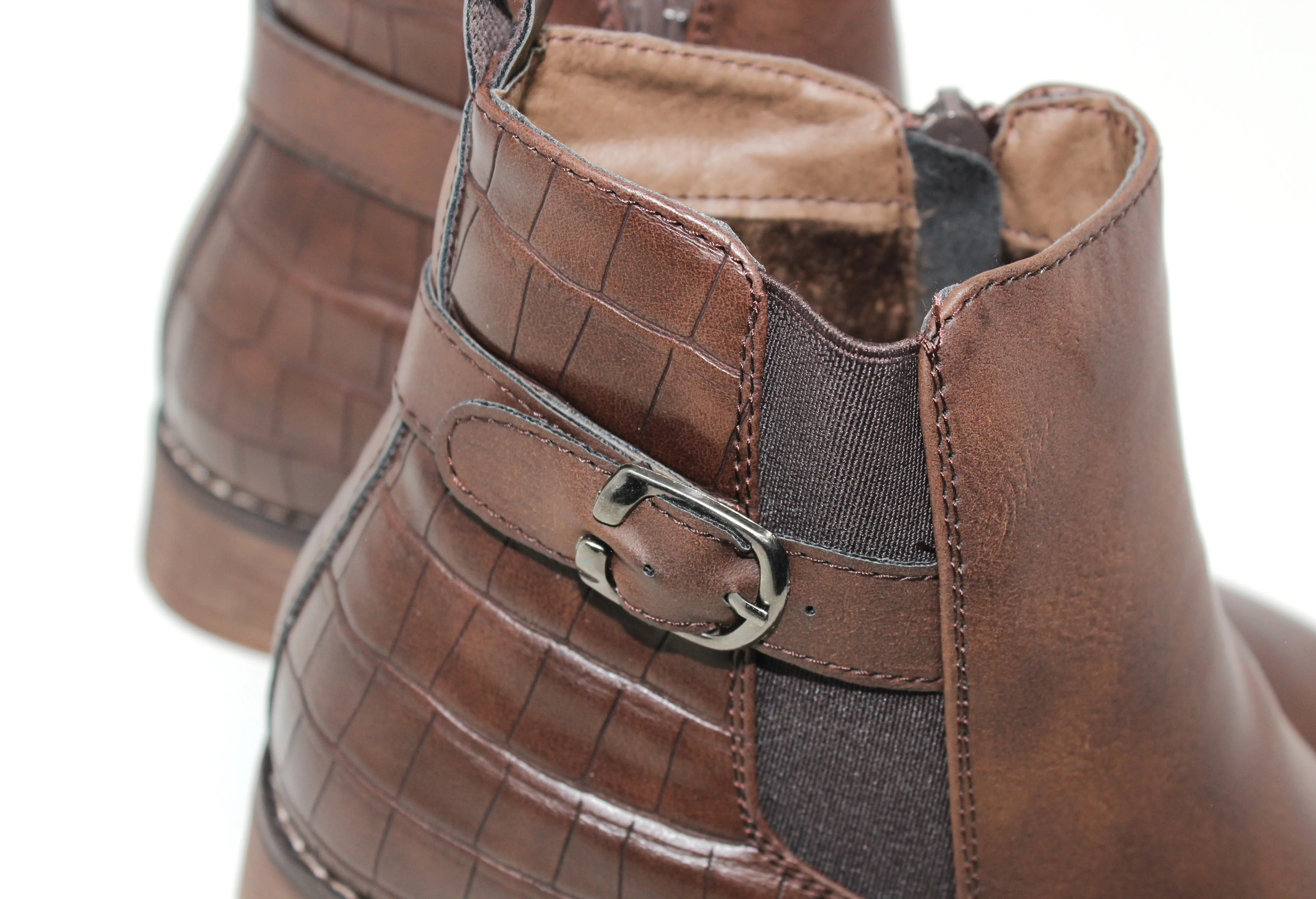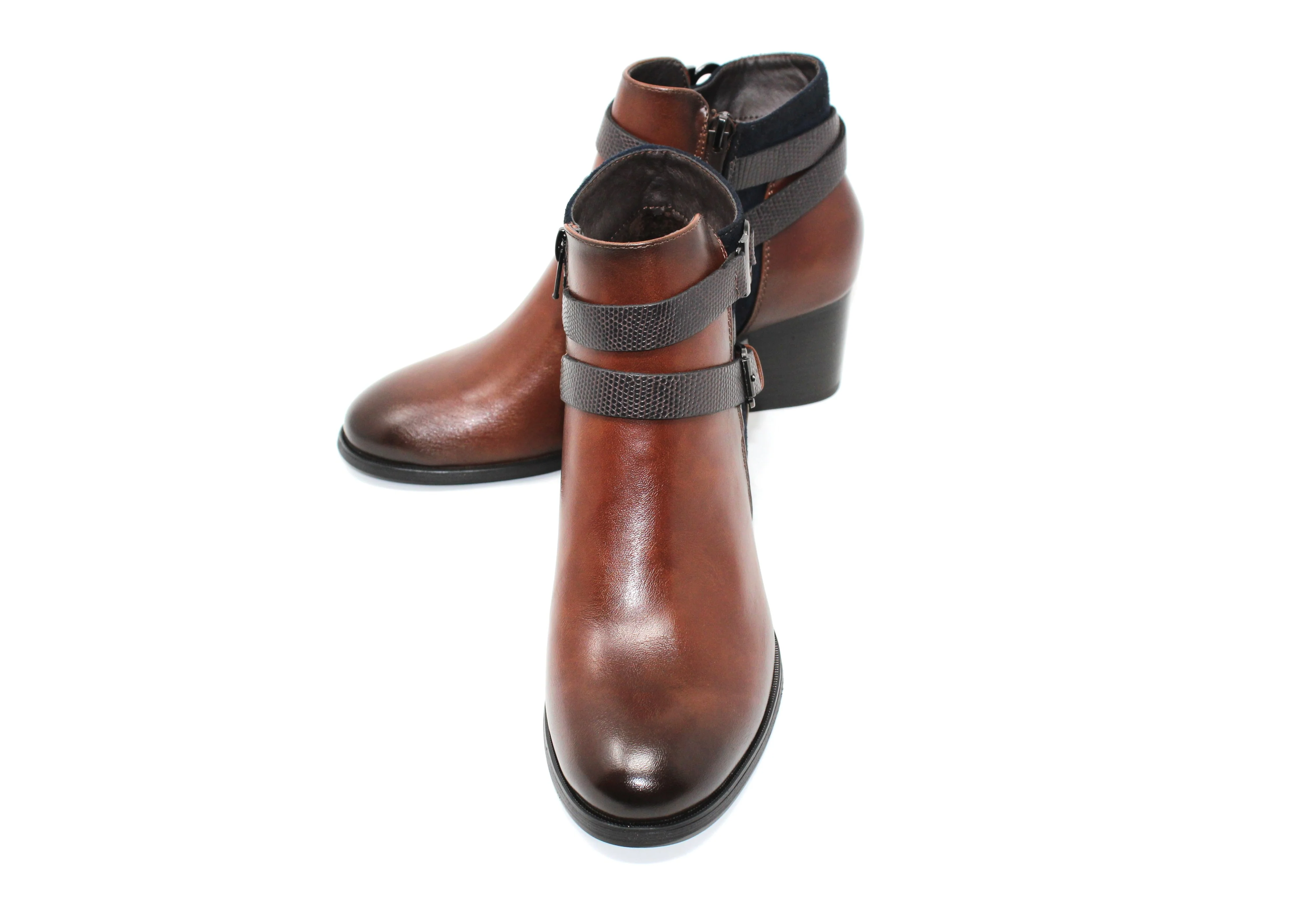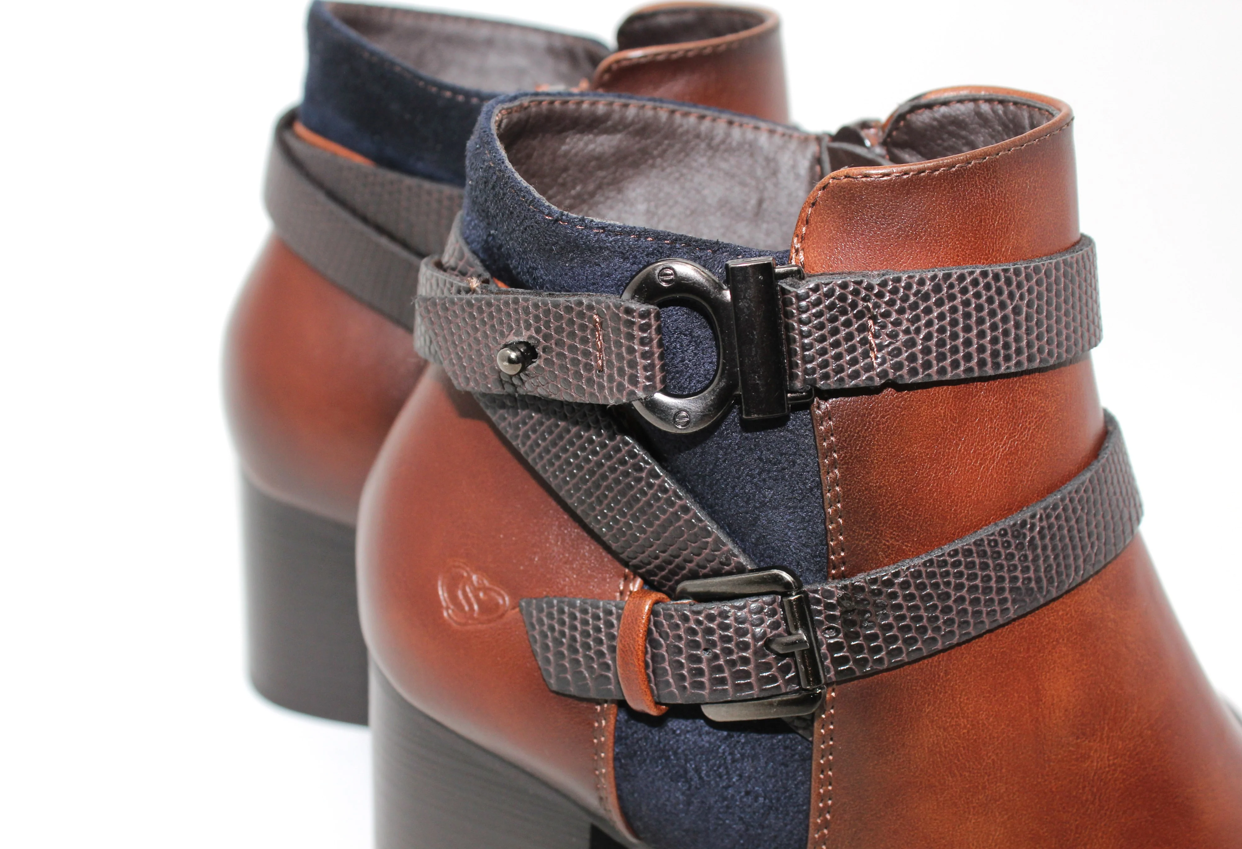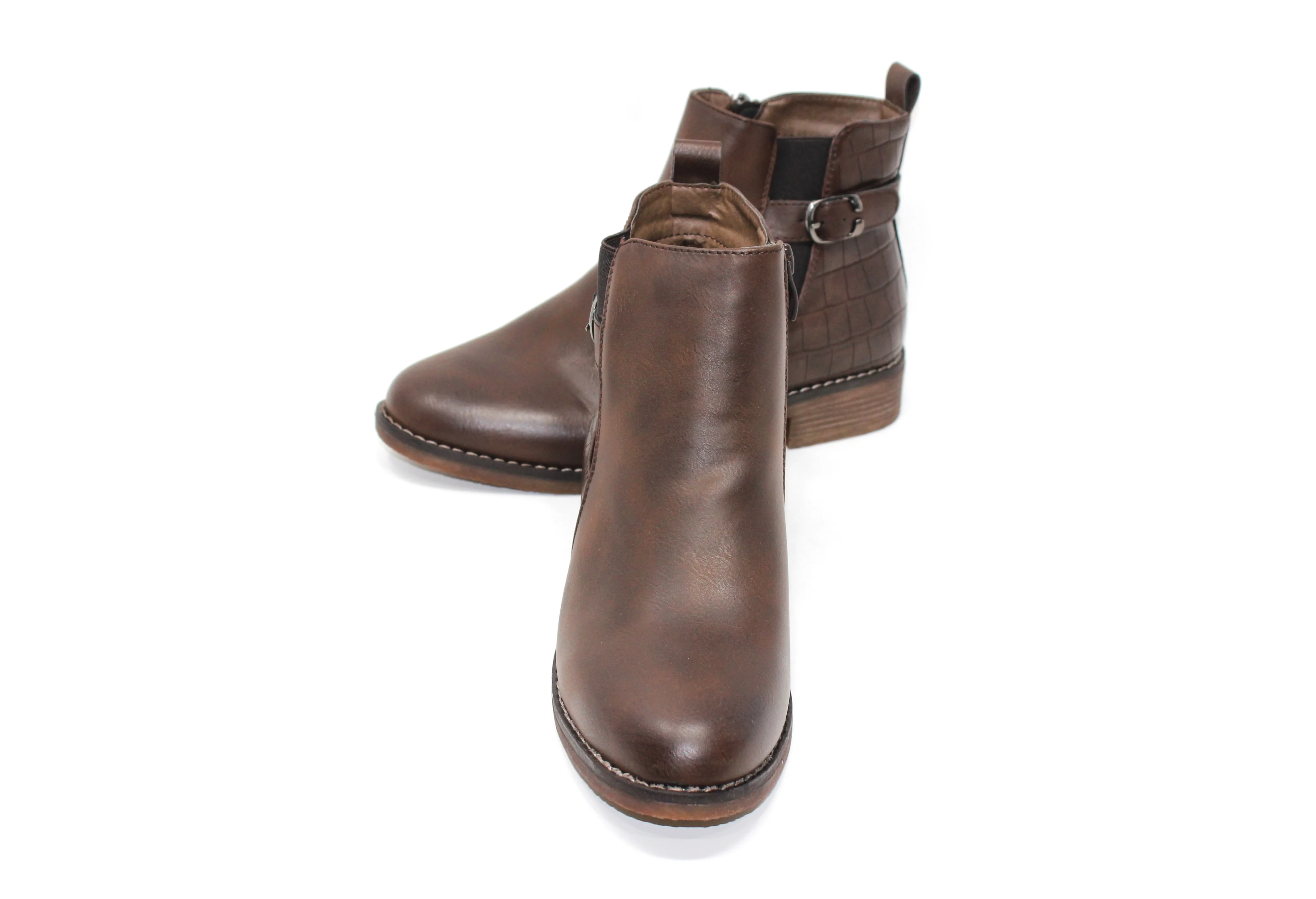 Brown Block Heel Ankle Boot with Double Strap Detail