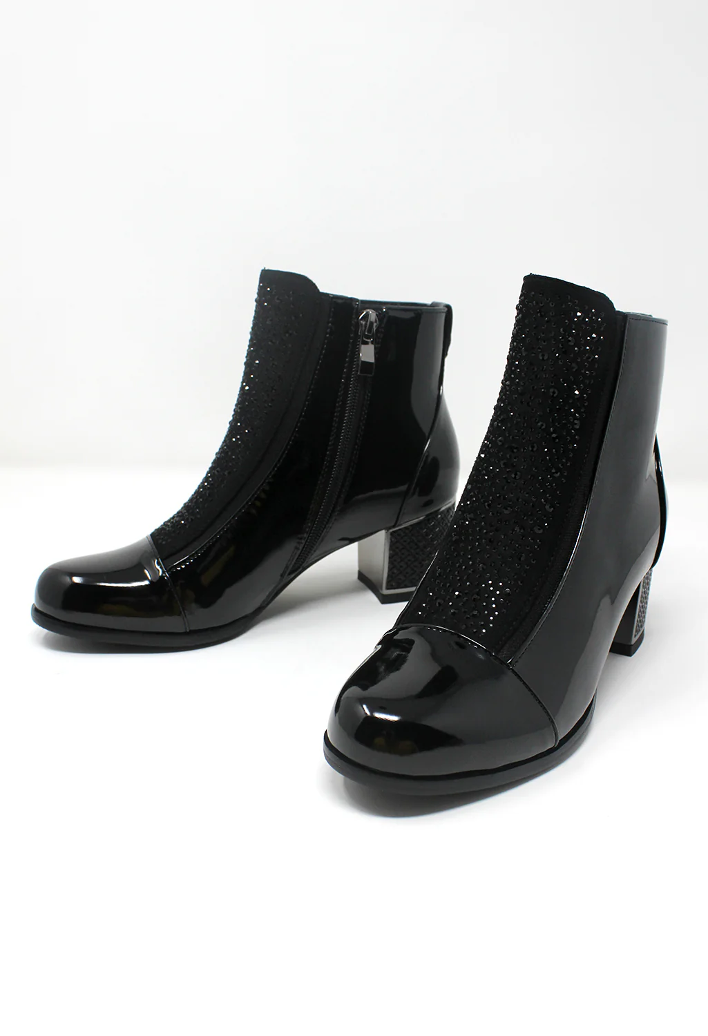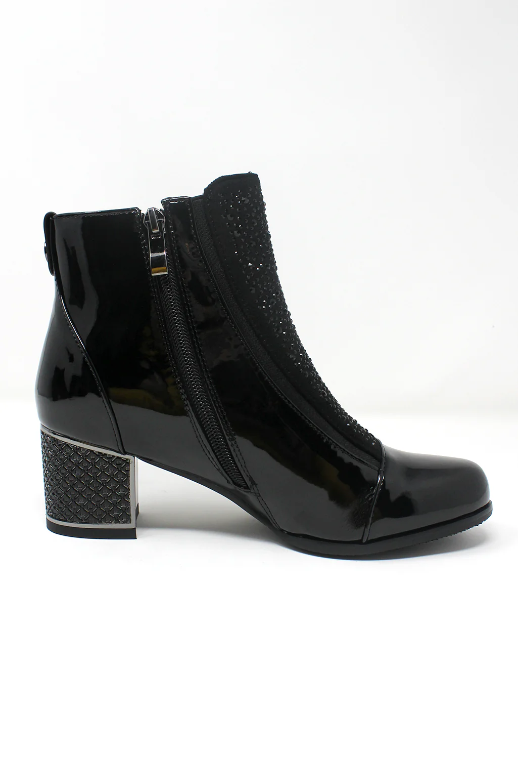 Black Patent Jewelled Side Zip Ankle Boot