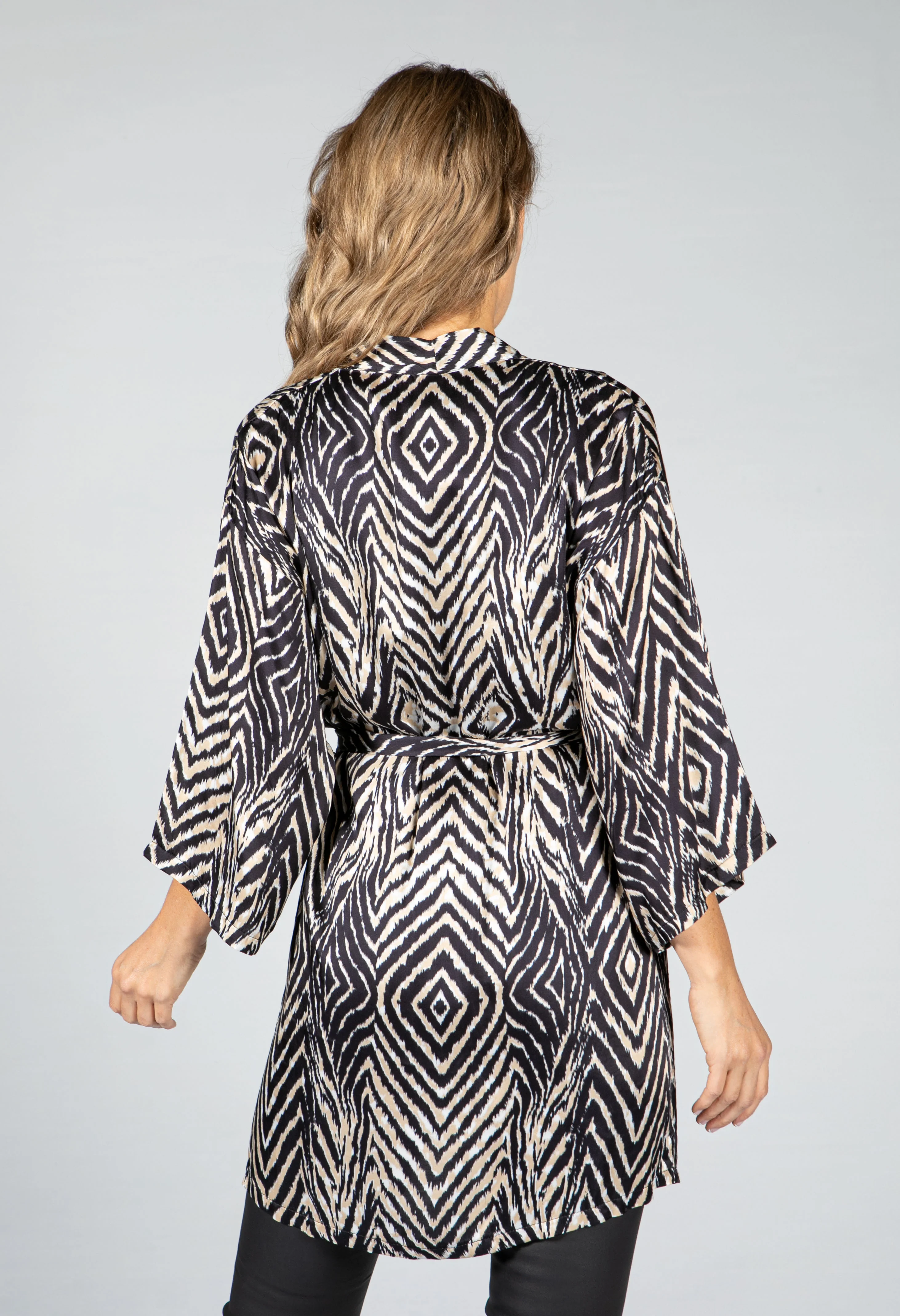 Animal Print Silk Blend Kimono Style Cardigan in Champagne
