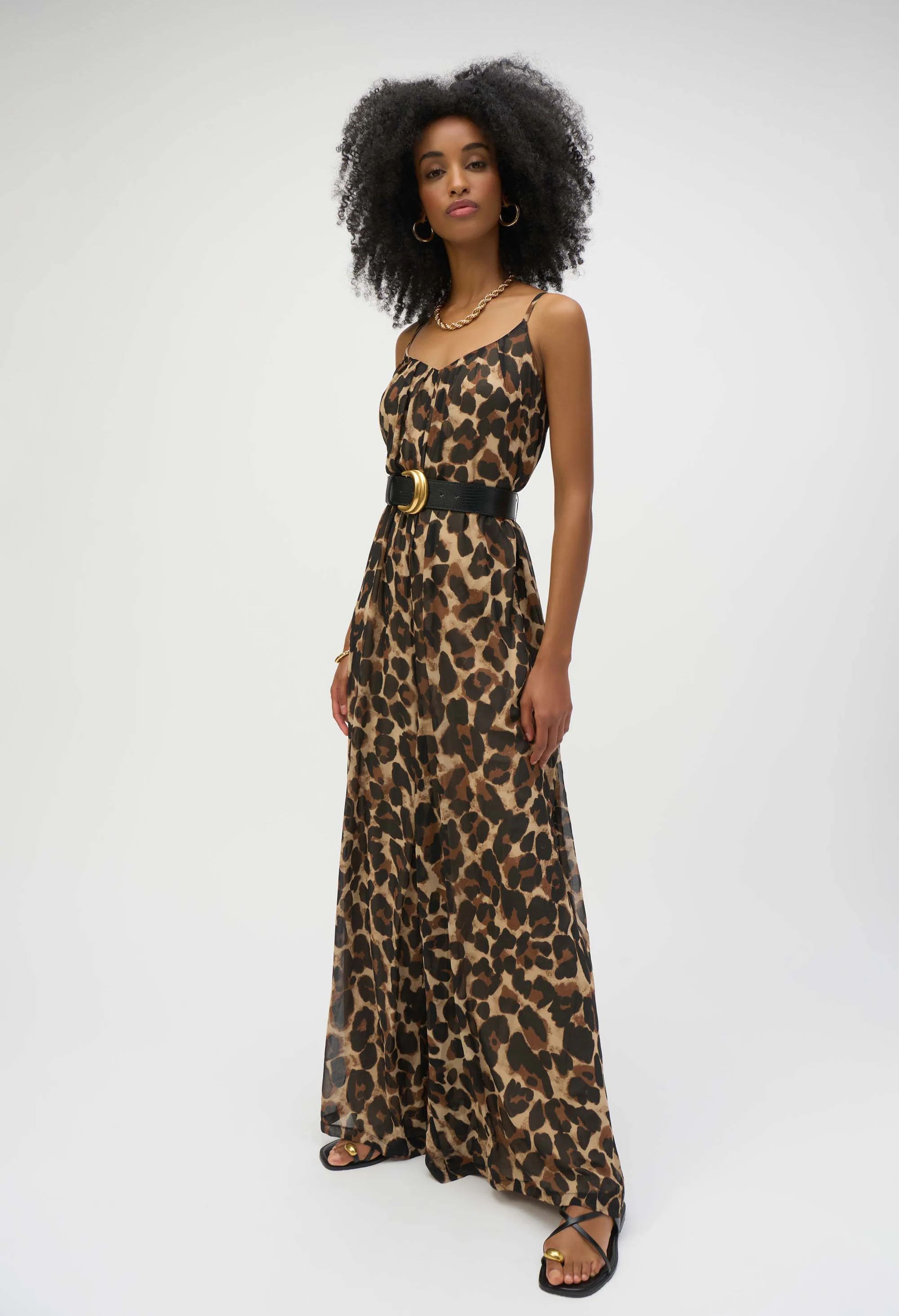 Chiffon Animal Print Wide Leg Jumpsuit