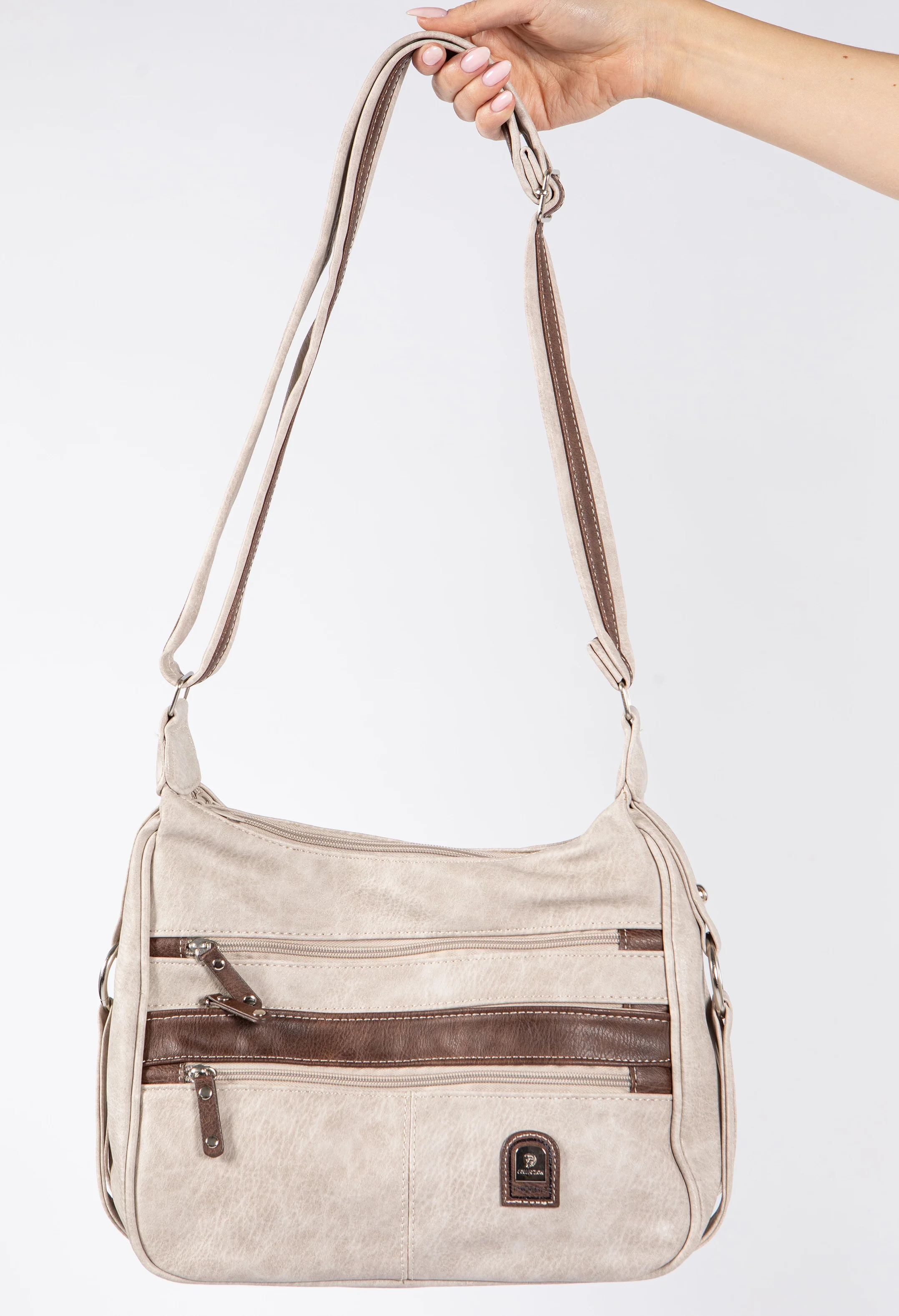 Contrast Double Zip Cross Body Bag