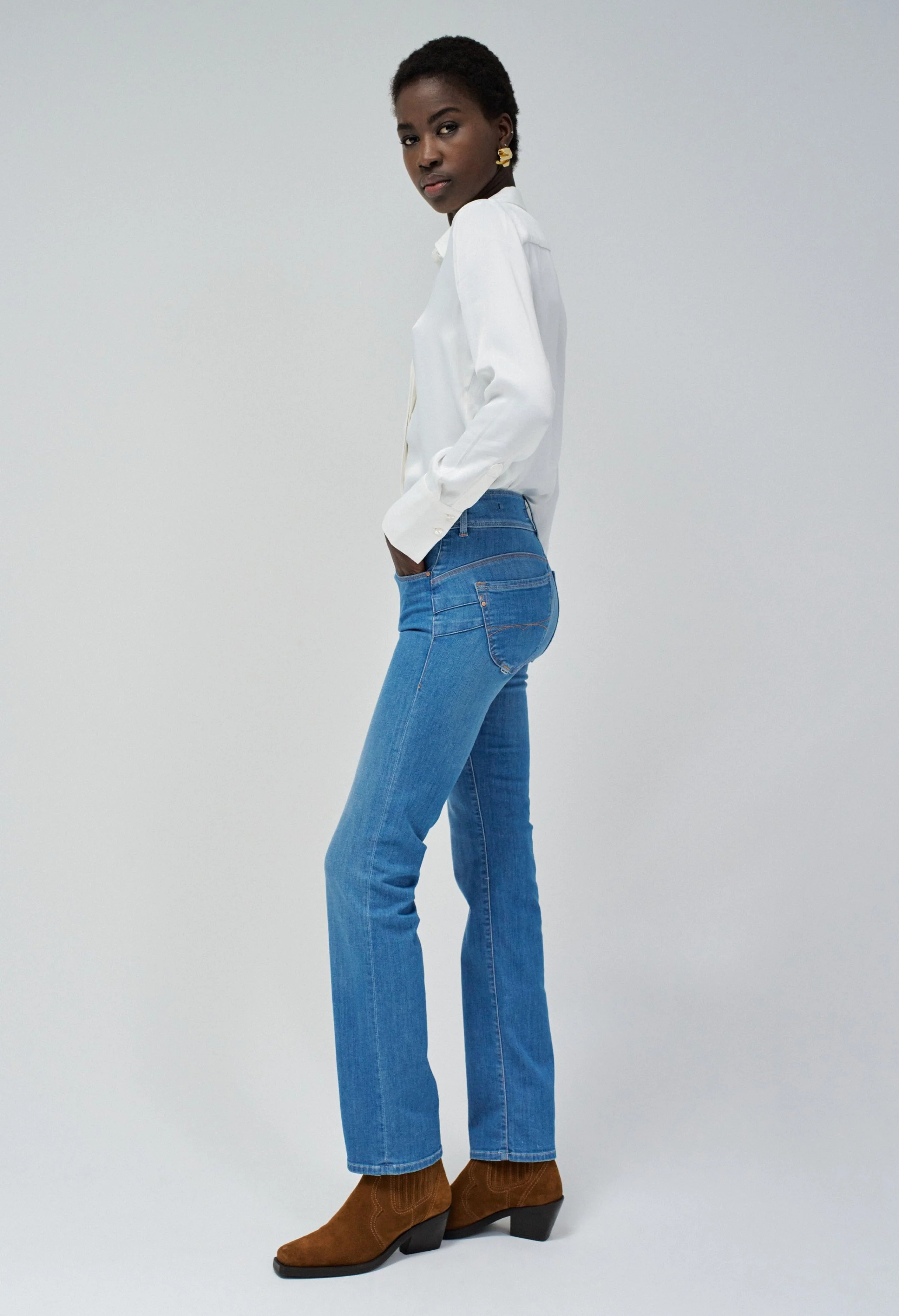 Blake High Rise Slim Flare Medium Blue Premium Denim