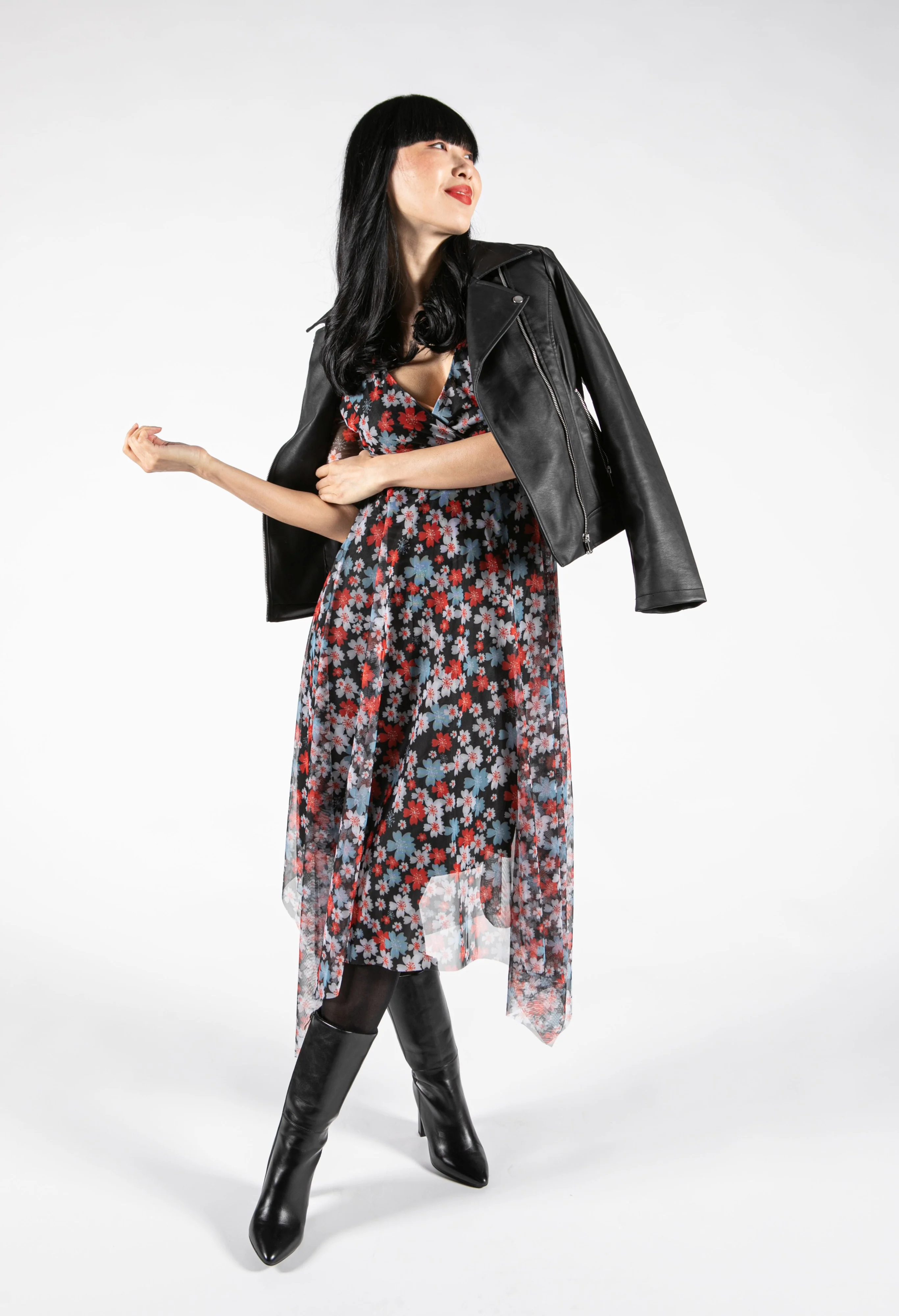 Floral Print Kimono Style Cardigan in Navy and Off-White