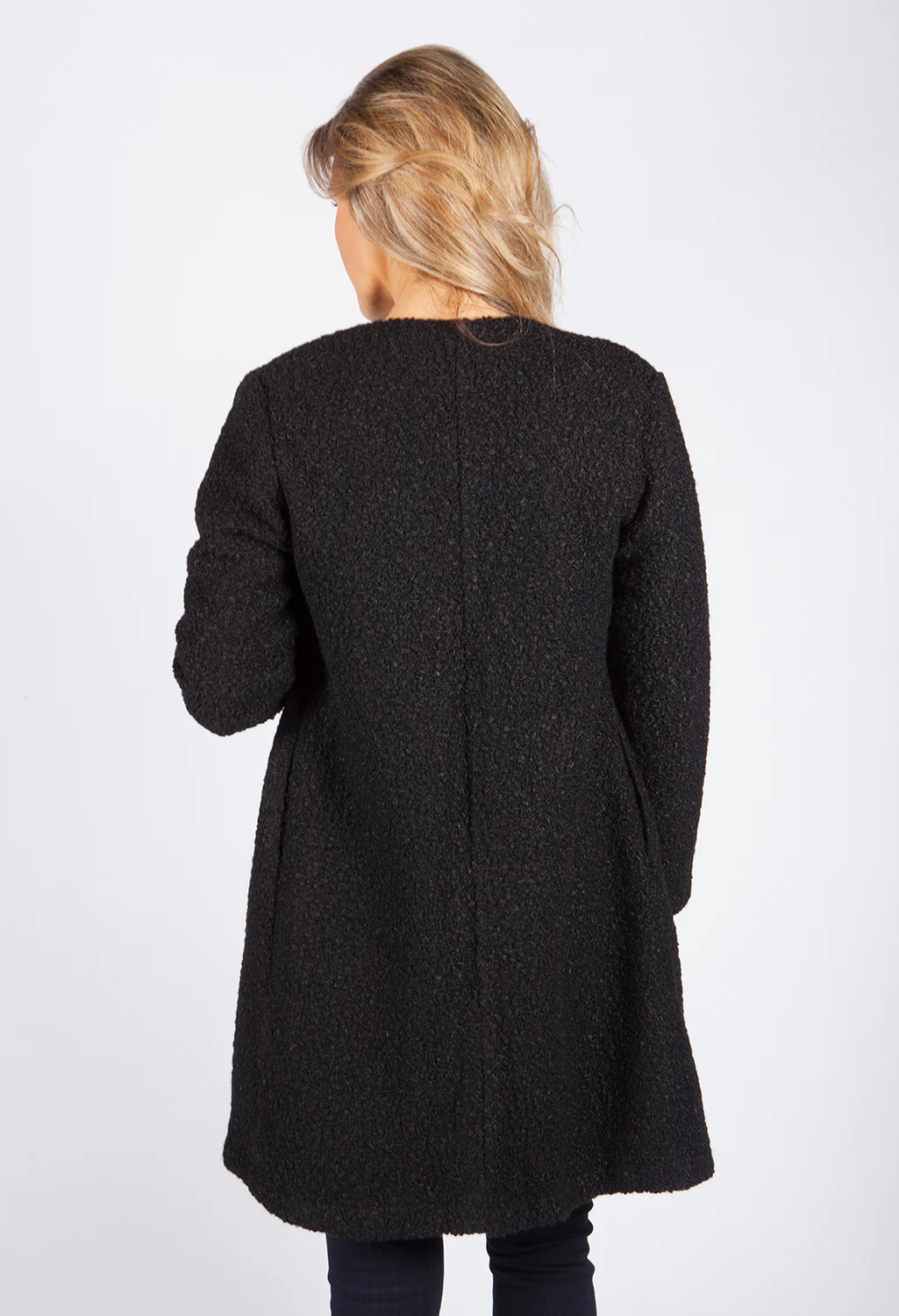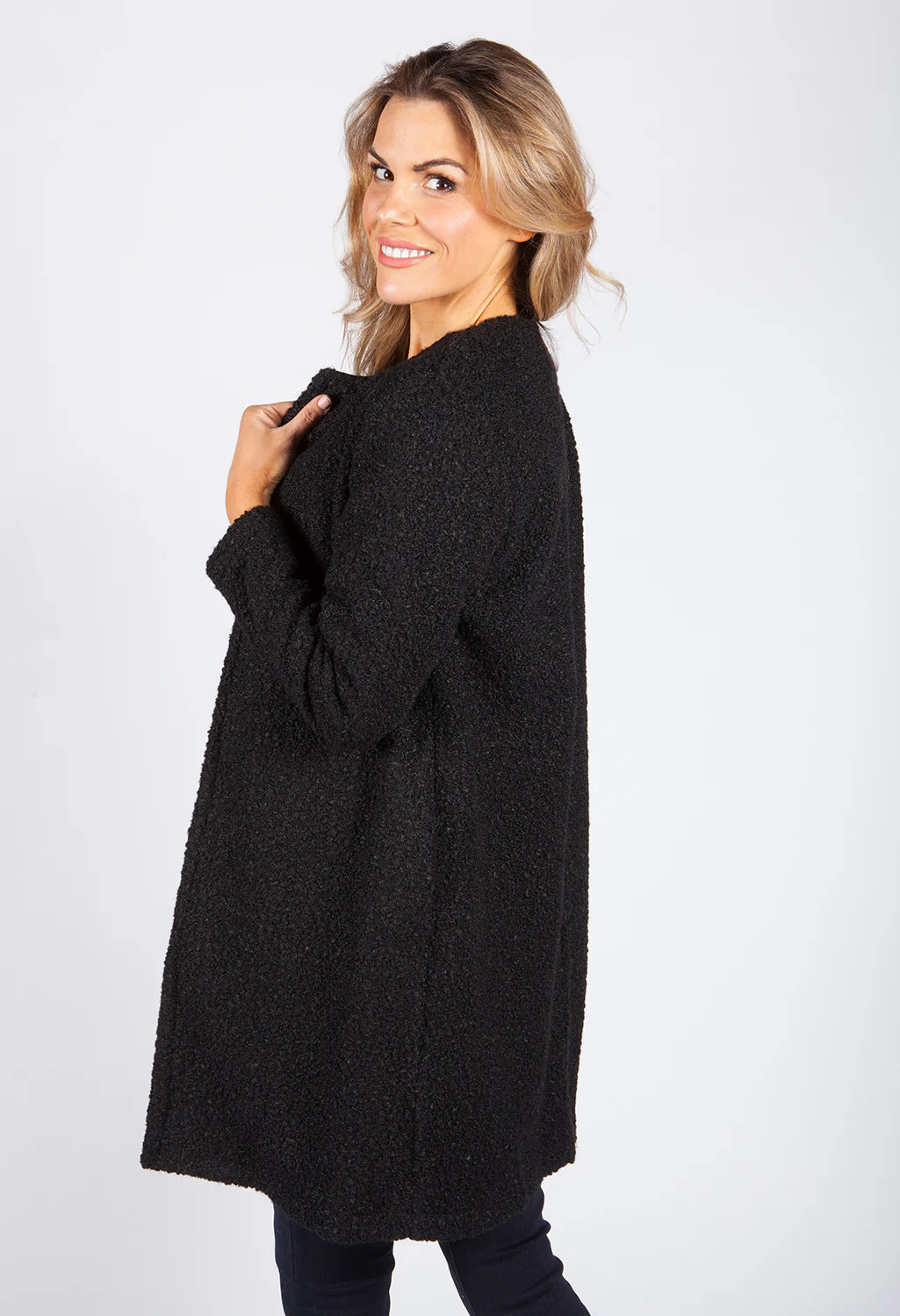 Charcoal Boucle Open Long Line Coat