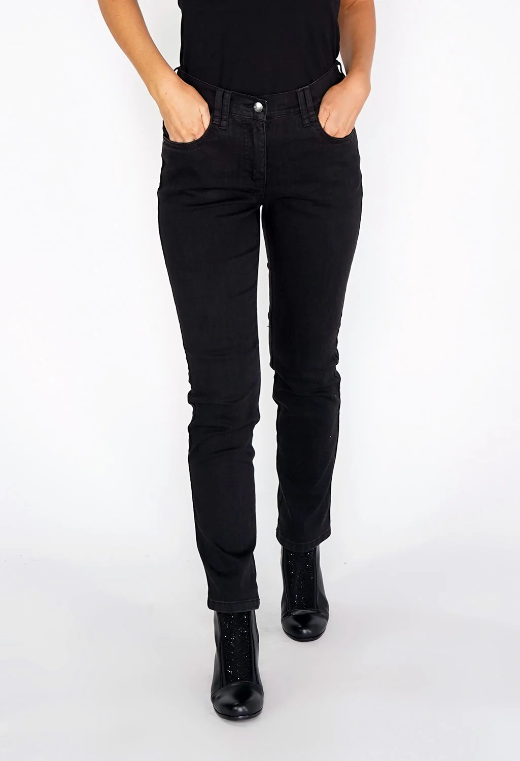 Charcoal 5 Pocket, Comfort Fit High Rise Jeans