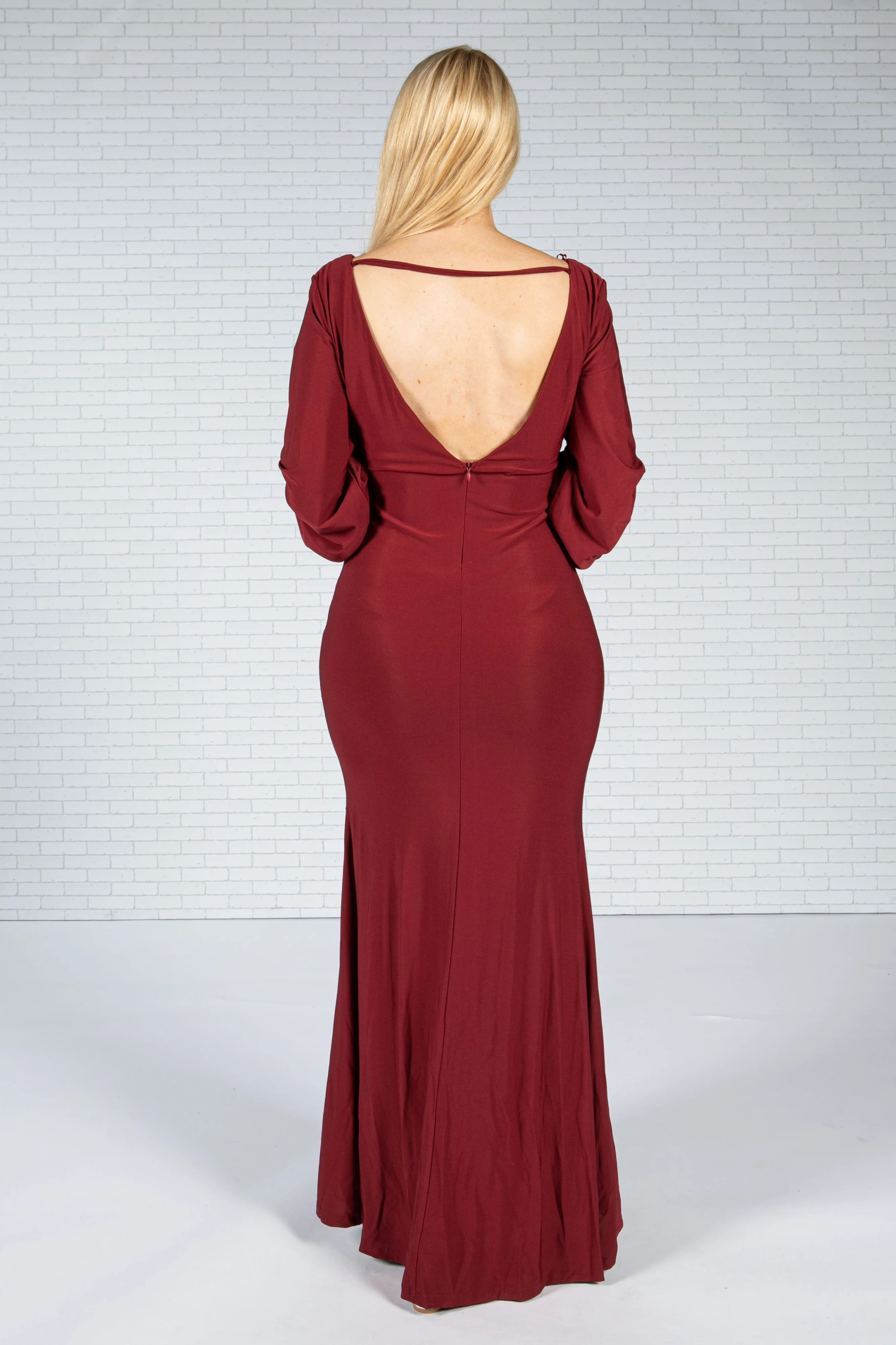 Burgundy Diamante Trim Gown