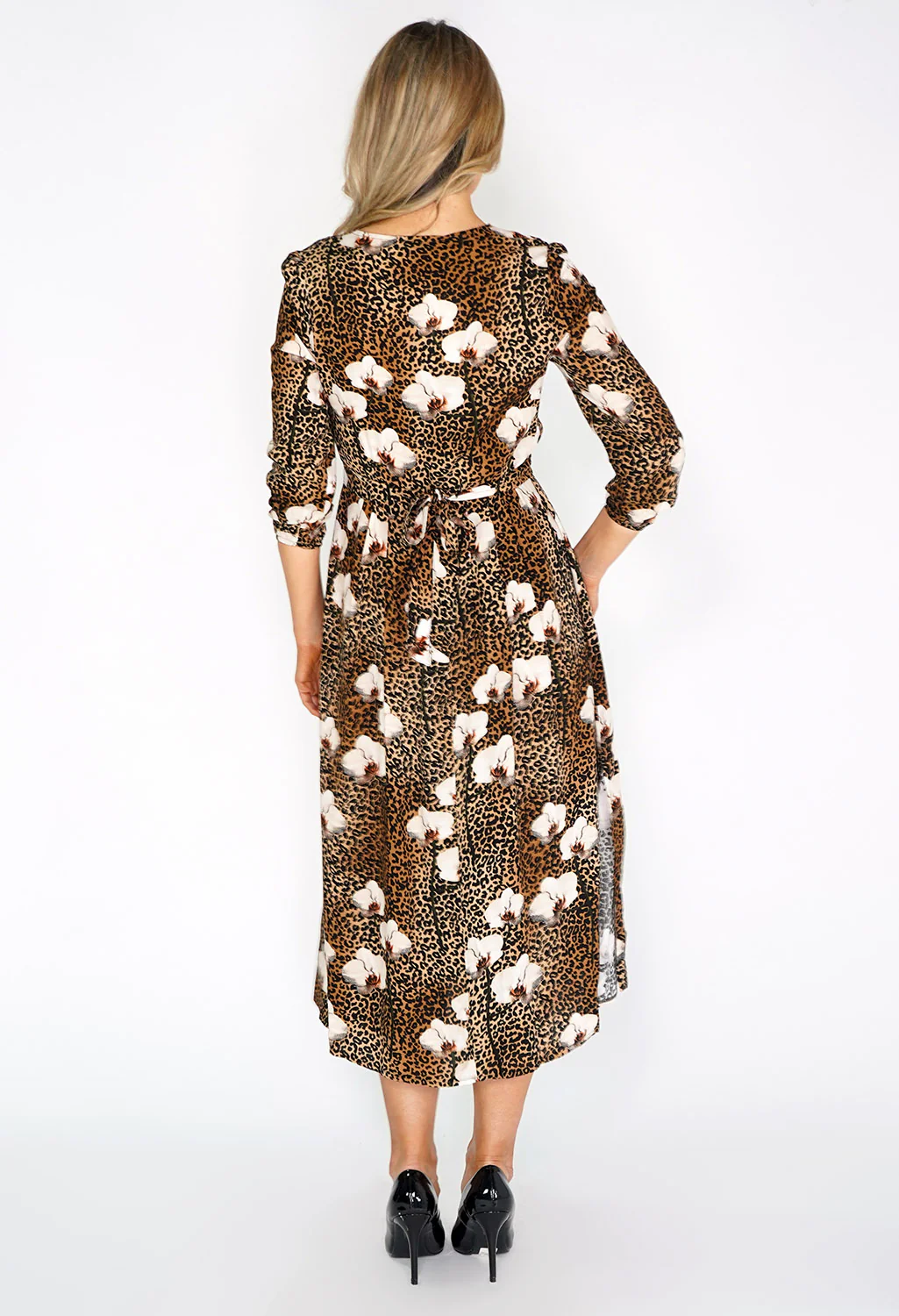 Brown Leopard and Floral Print Dress