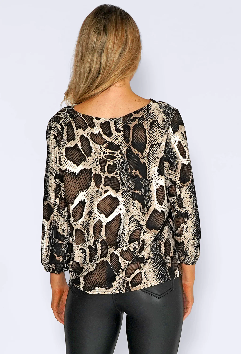 Brown Snake Print Top with Pleated Sleeves