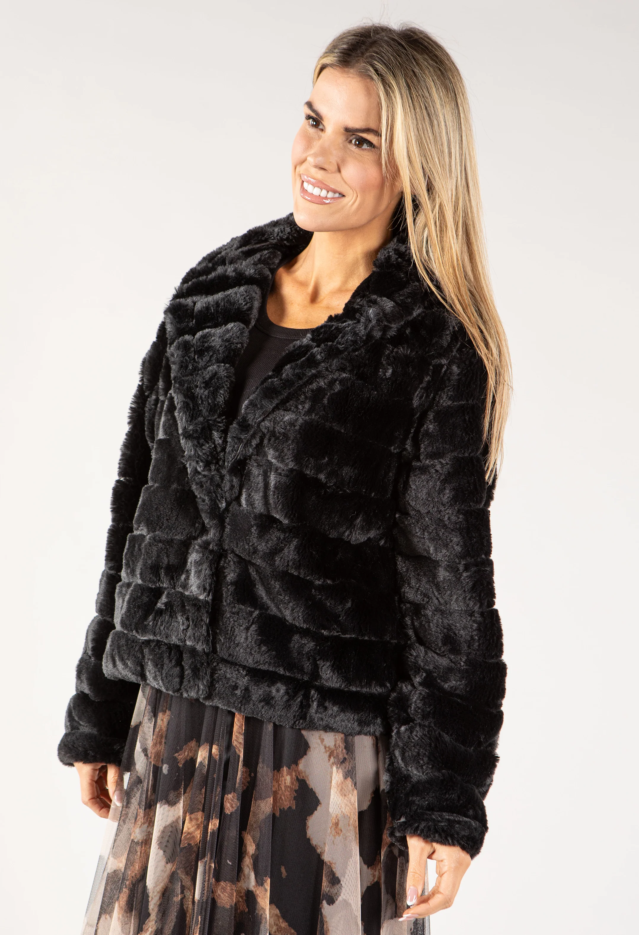 Button Close Short Faux Fur Coat