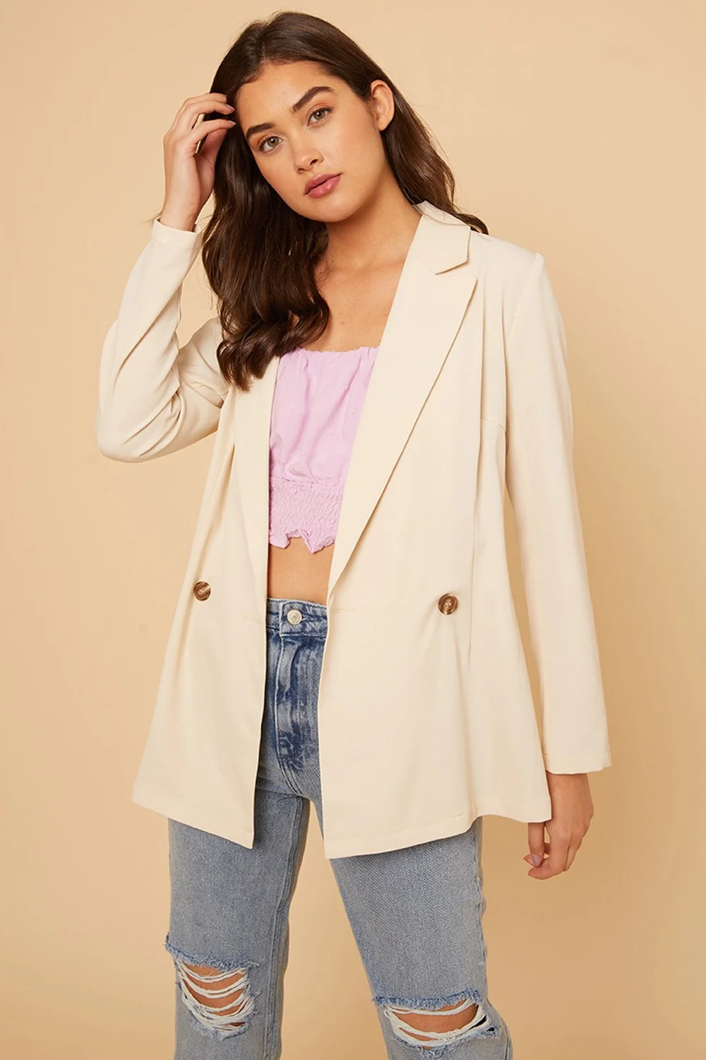 Button Blazer in Latte