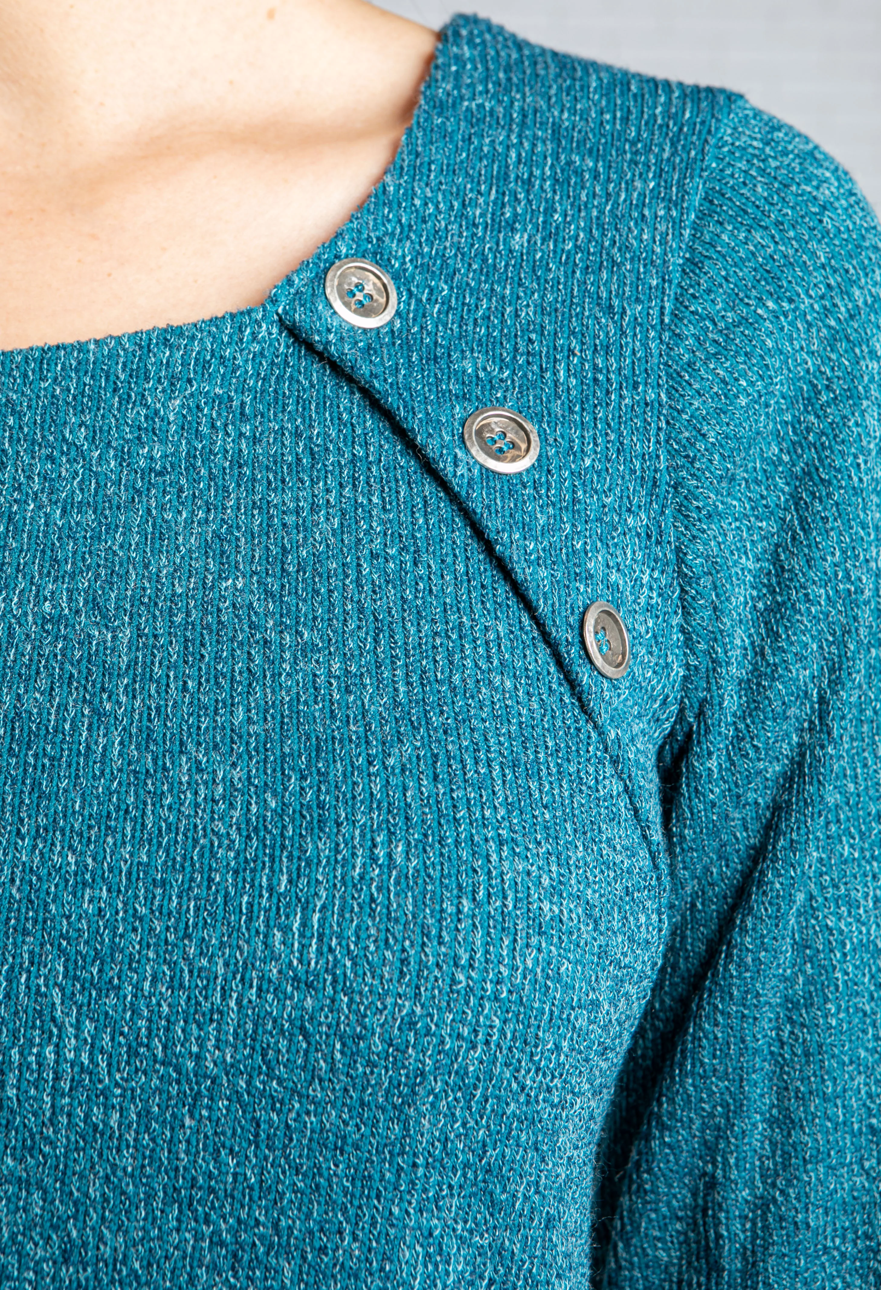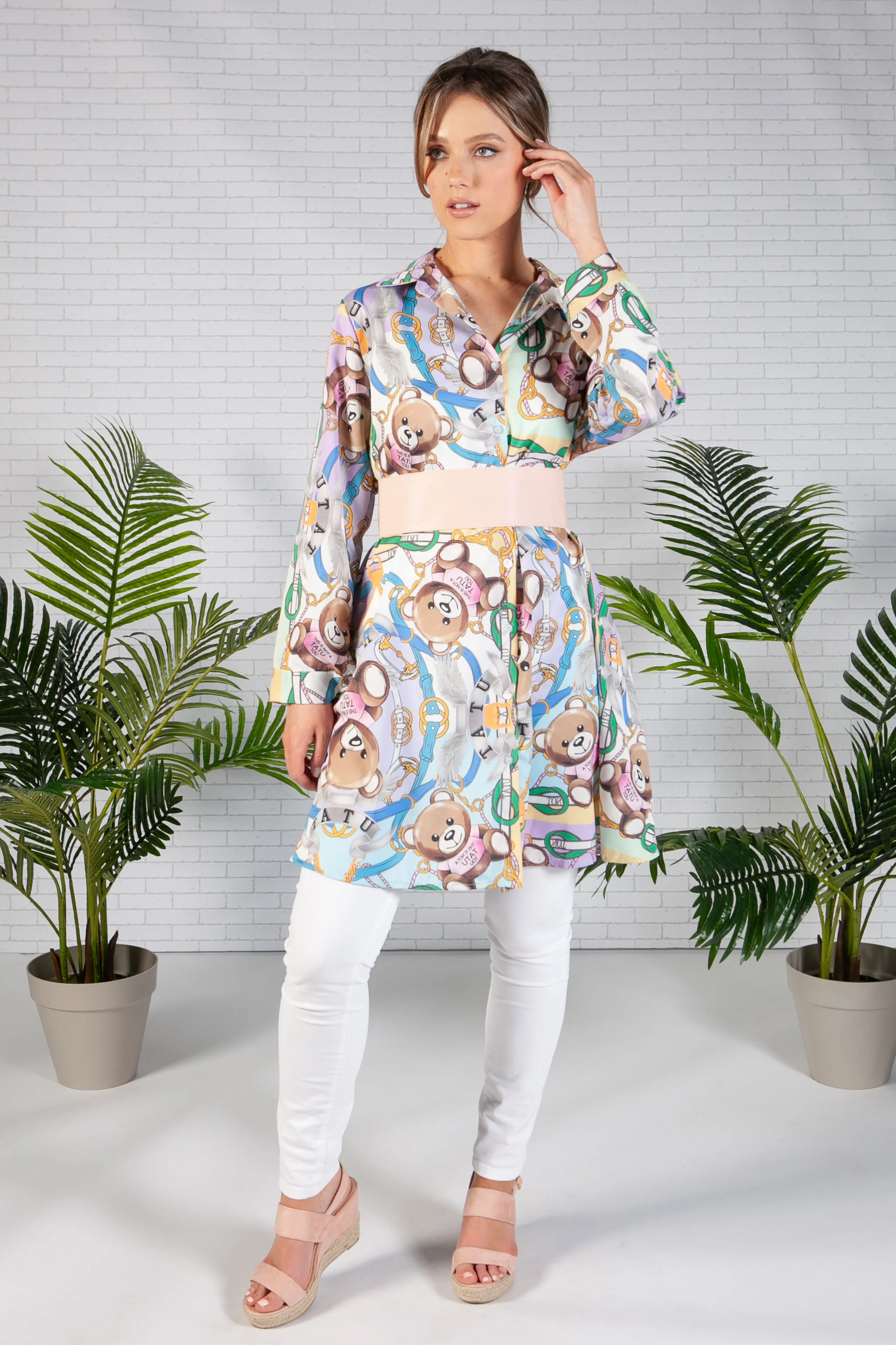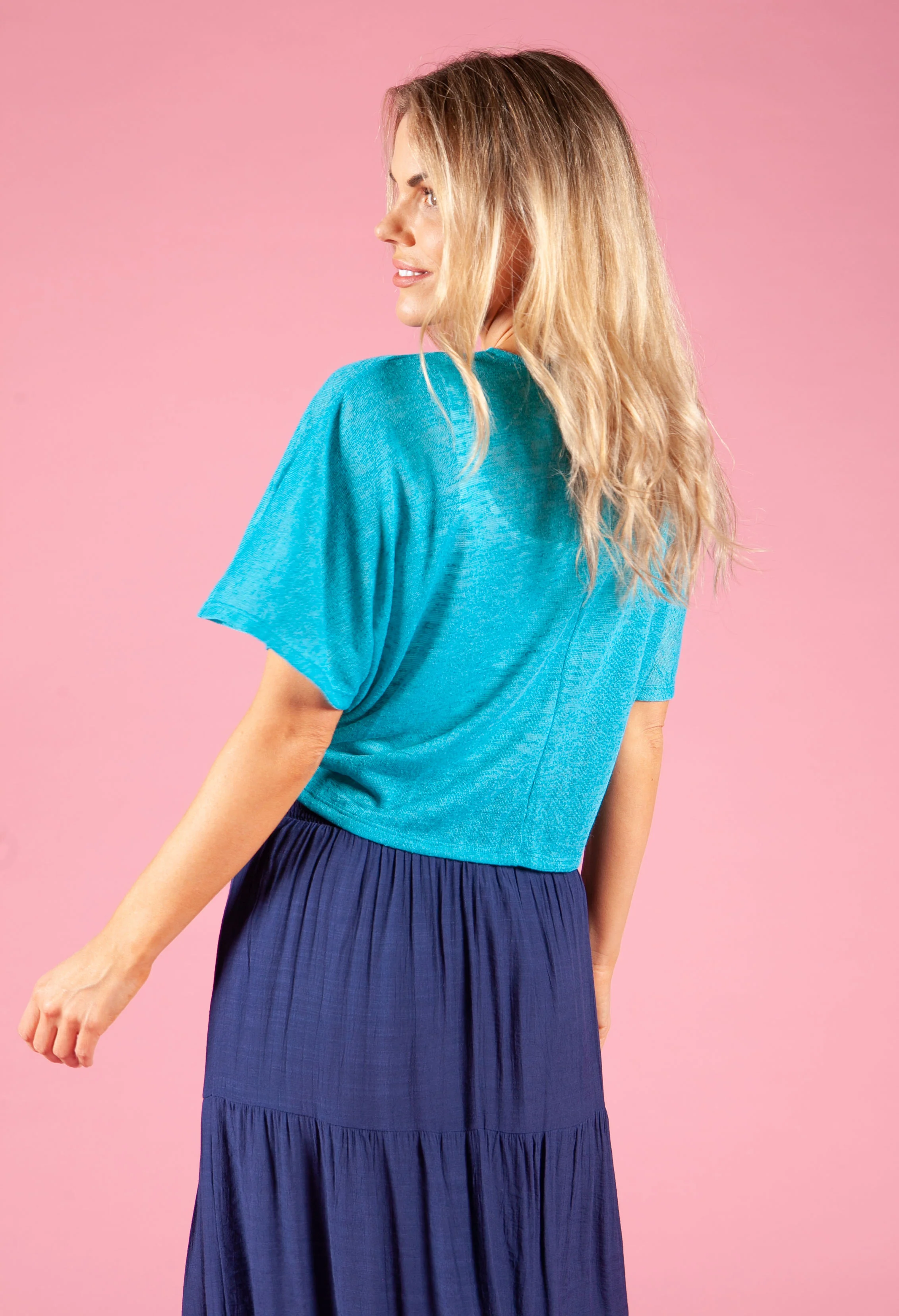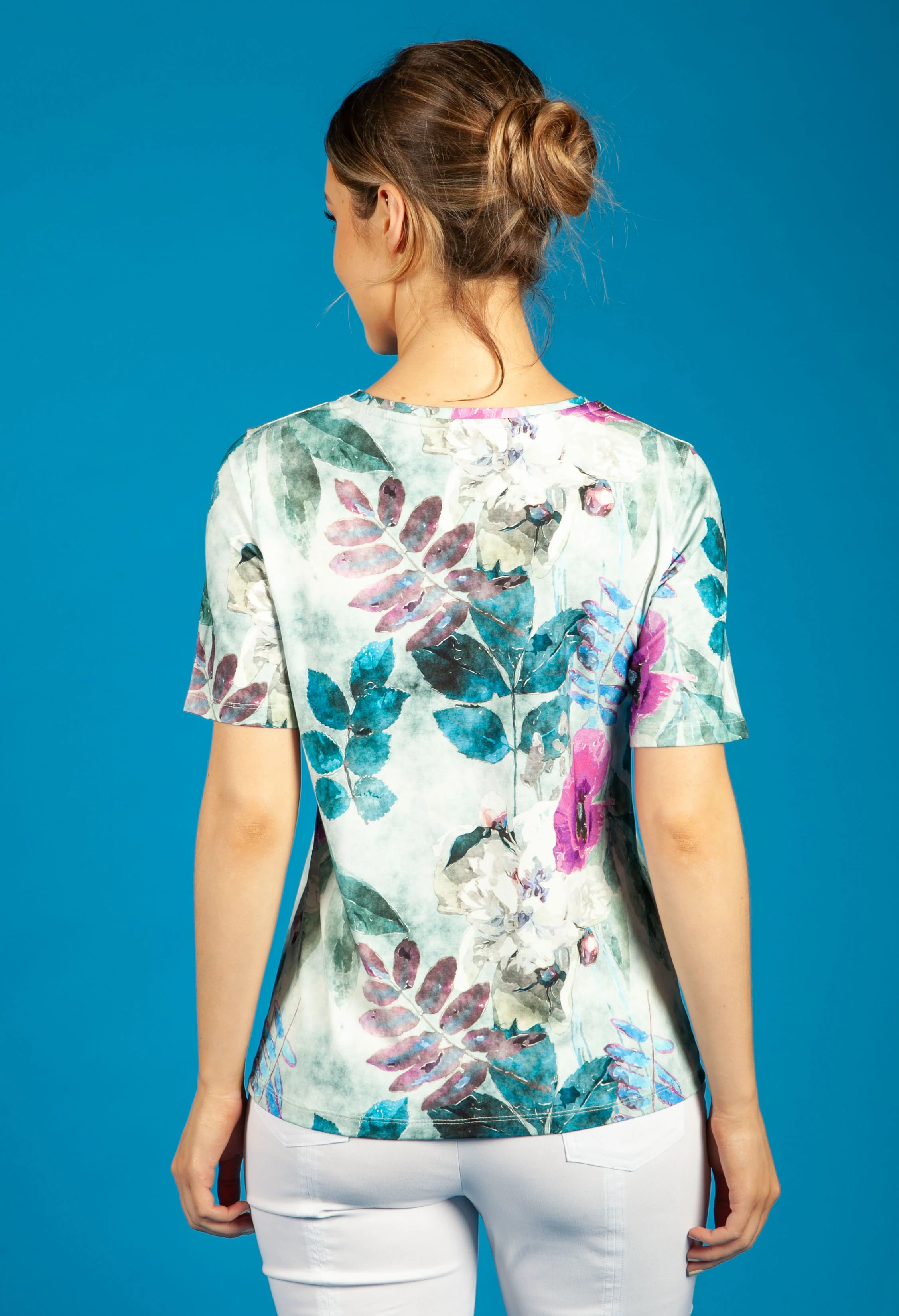 TEAL MULTI PRINT SHORT SLEEVE PLEATED DRESS