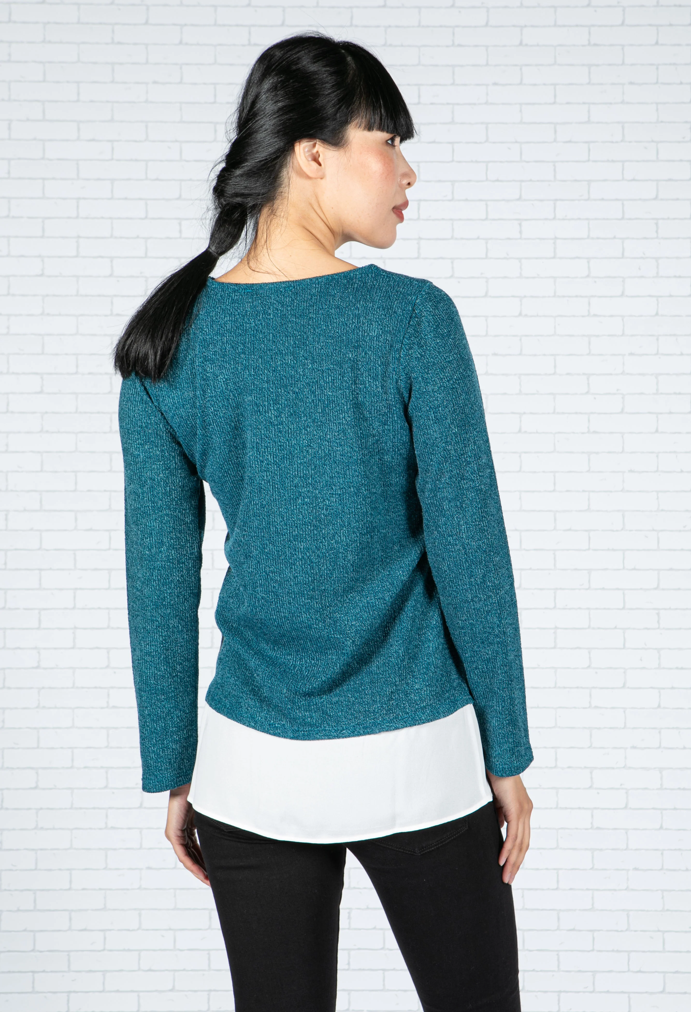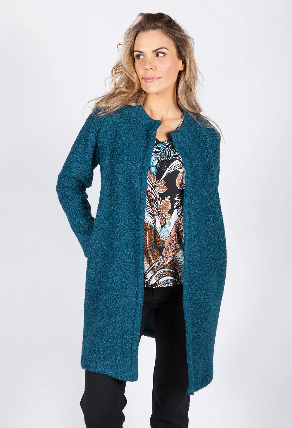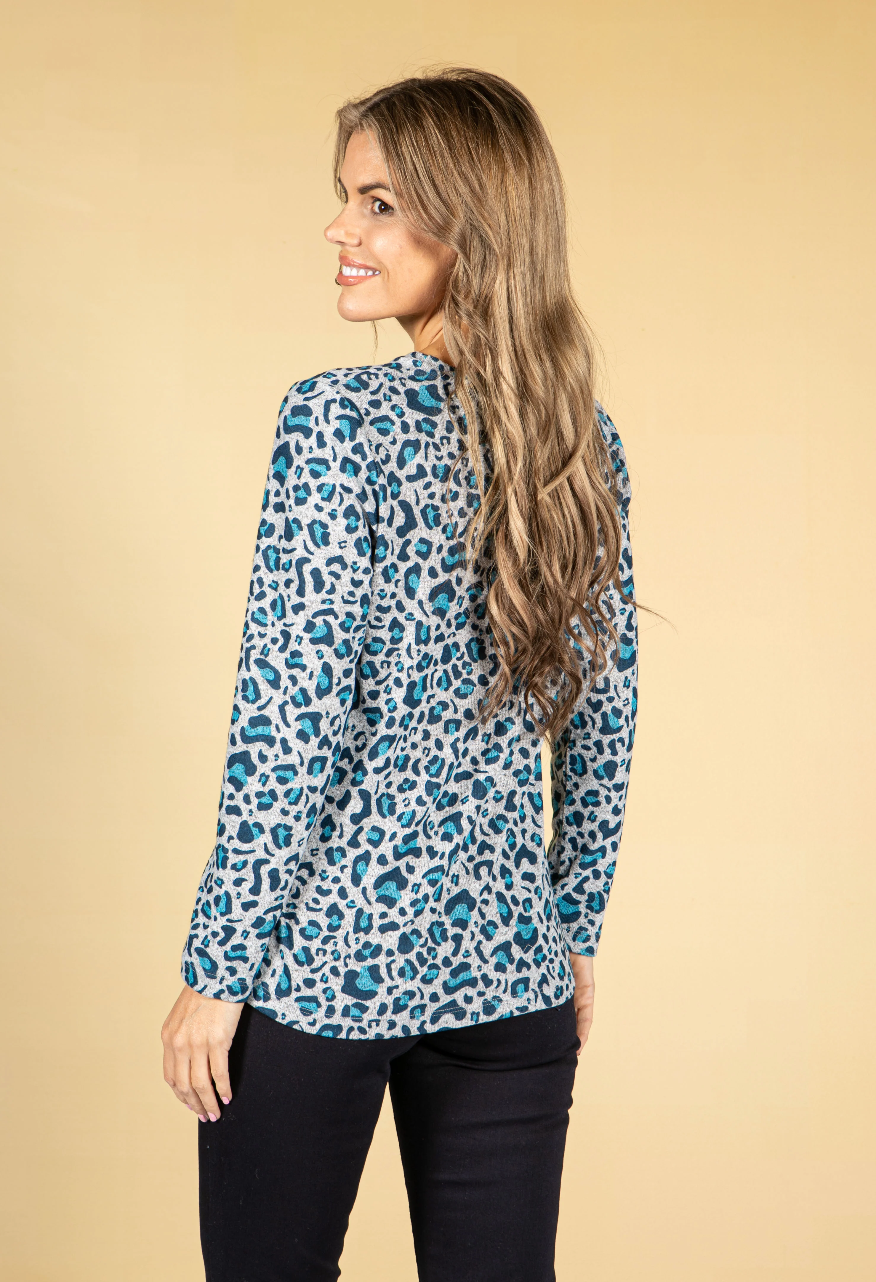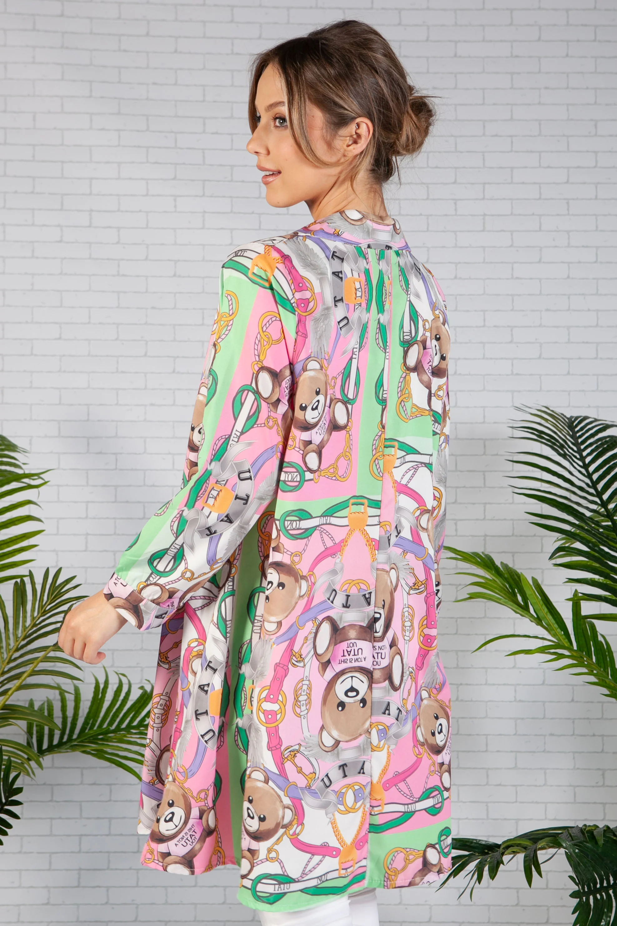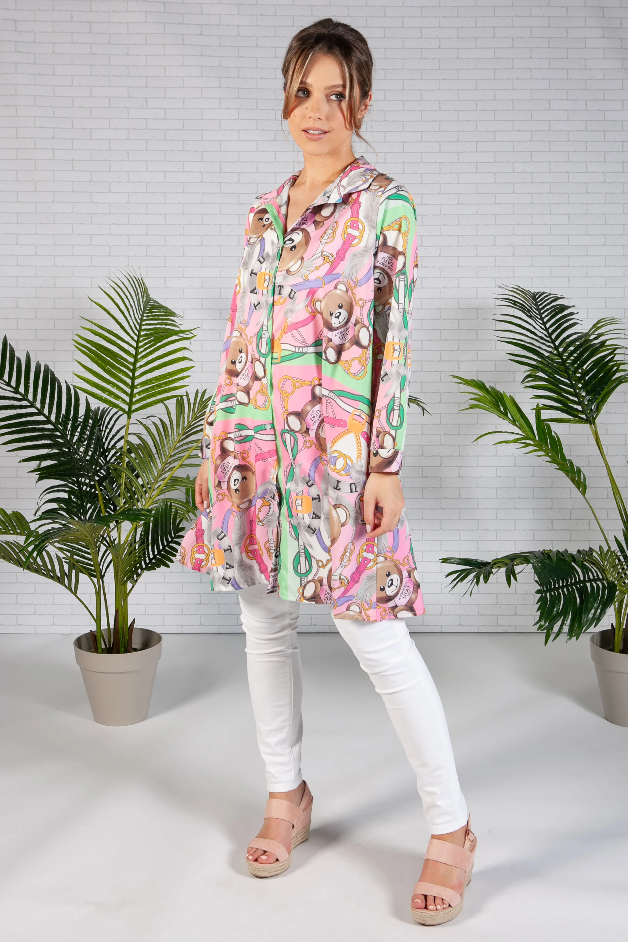 TEAL MULTI PRINT SHORT SLEEVE PLEATED DRESS