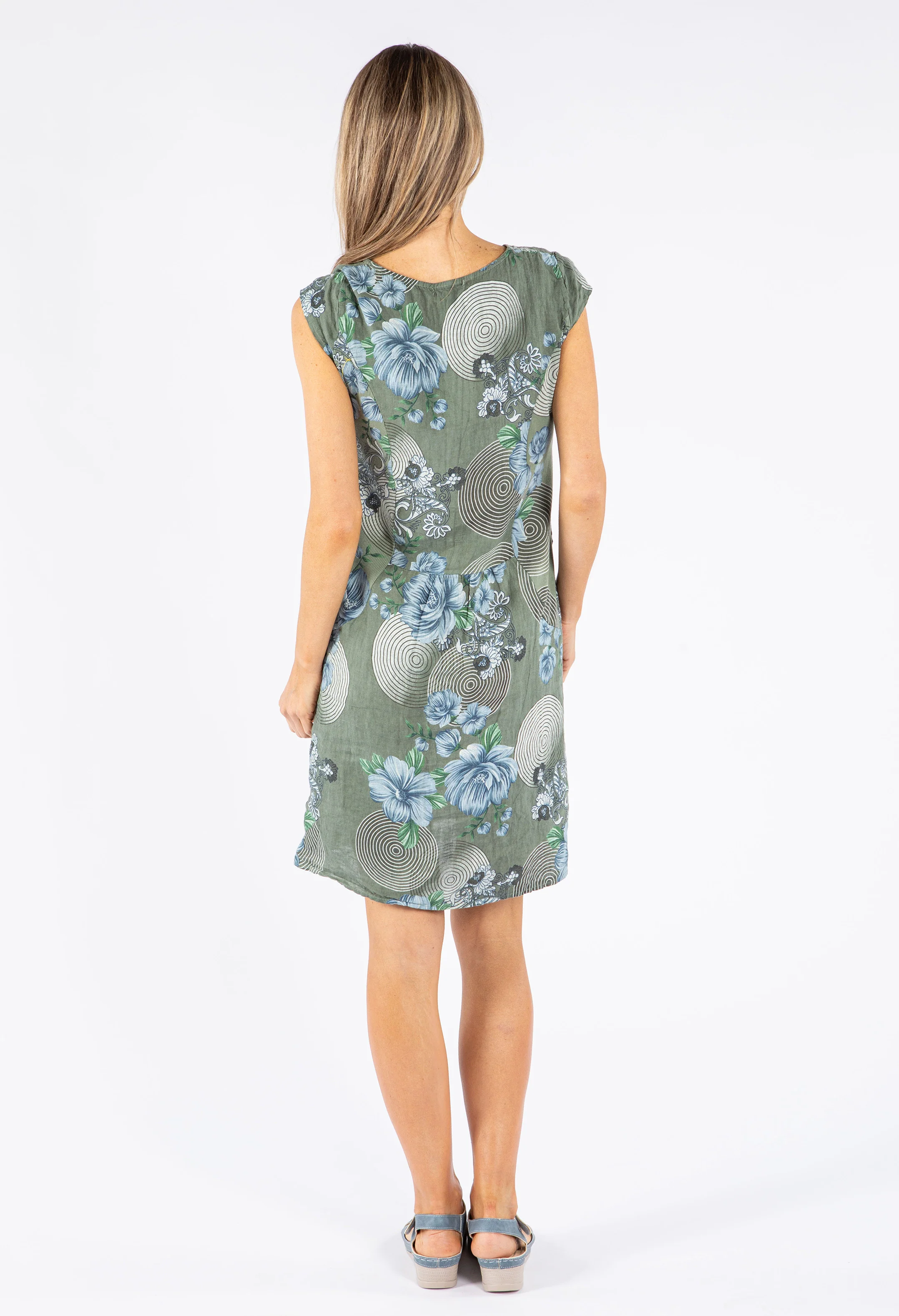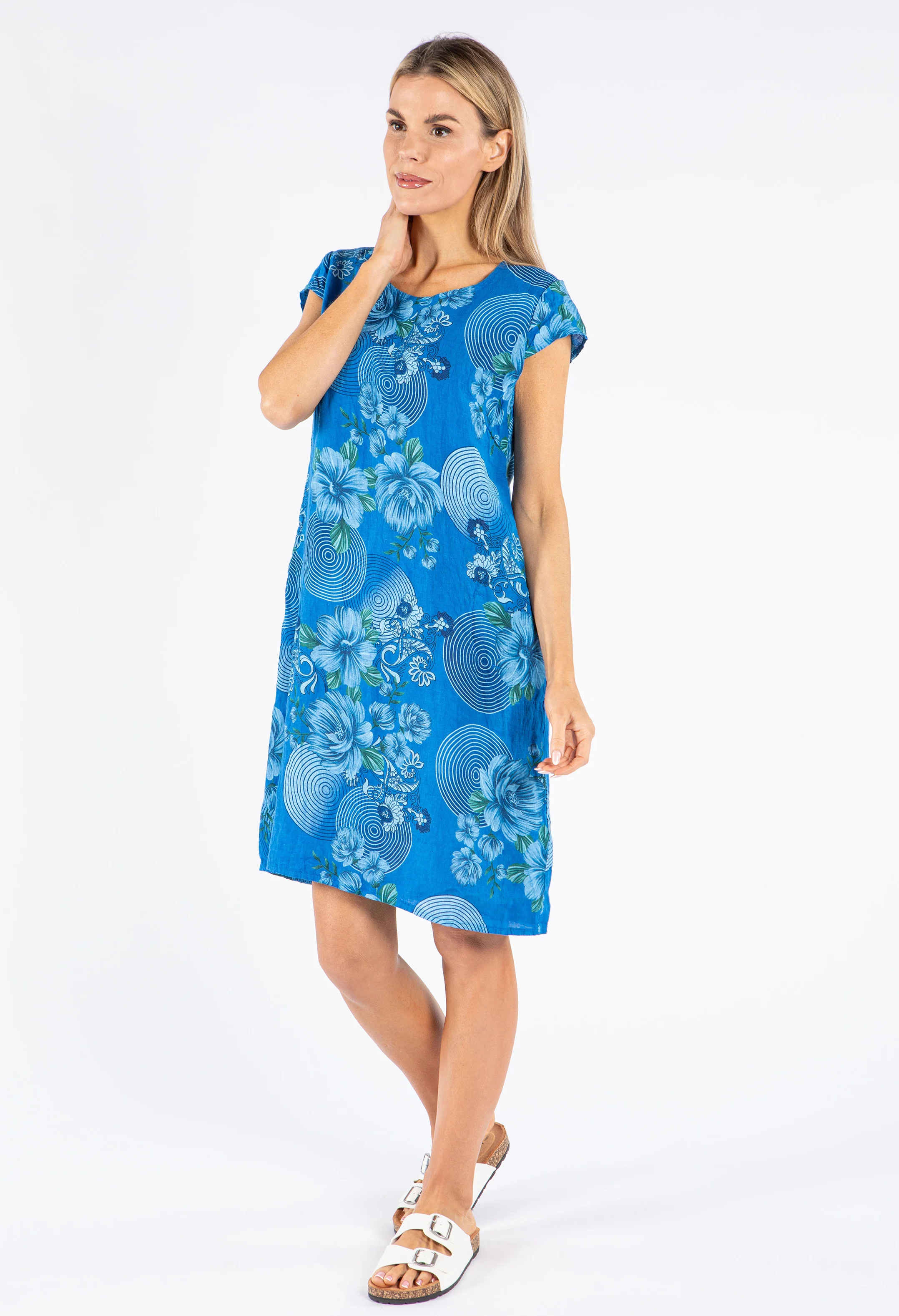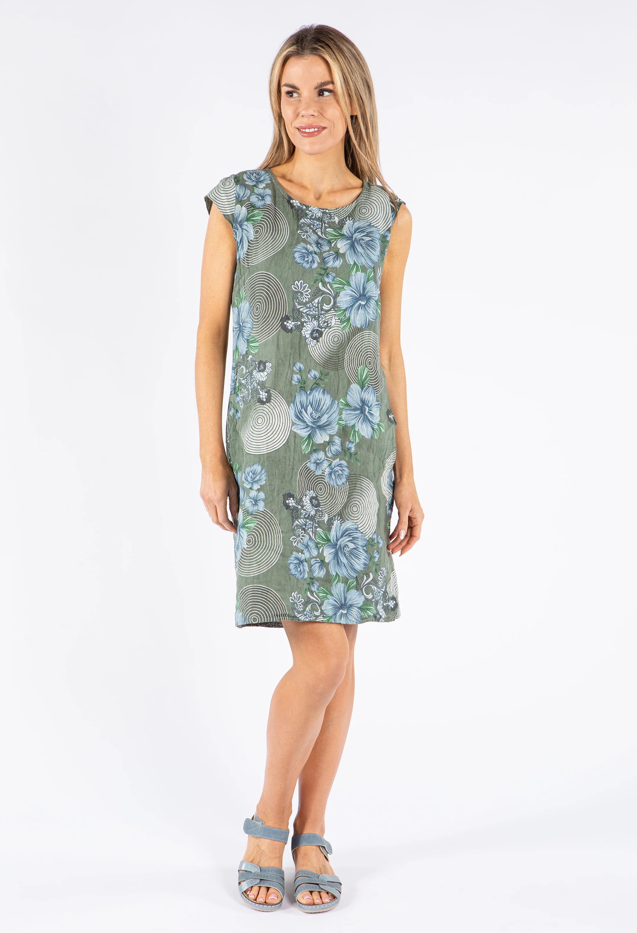SWING DRESS IN PALM LEAF DESIGN WITH SCALLOP NECKLINE