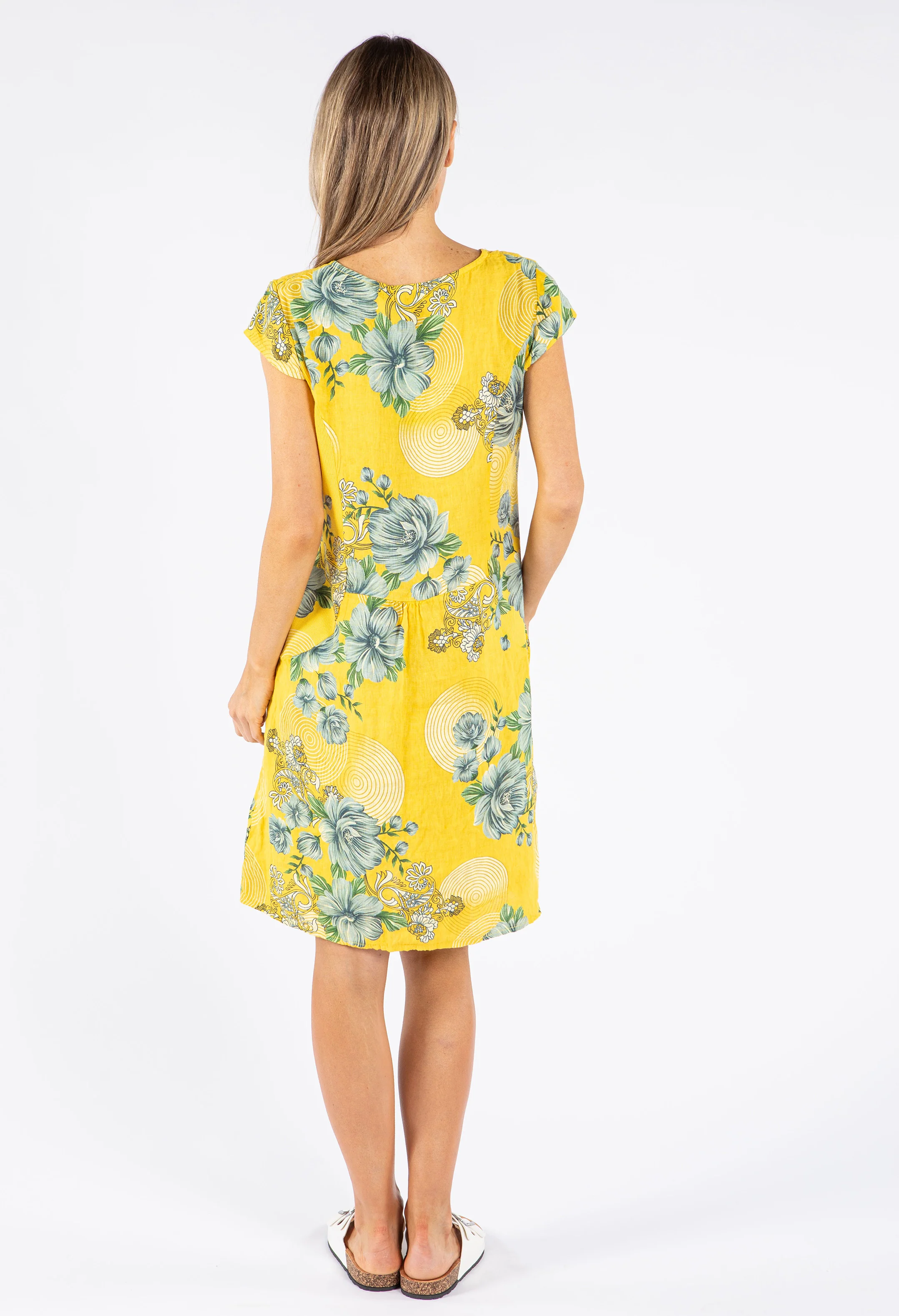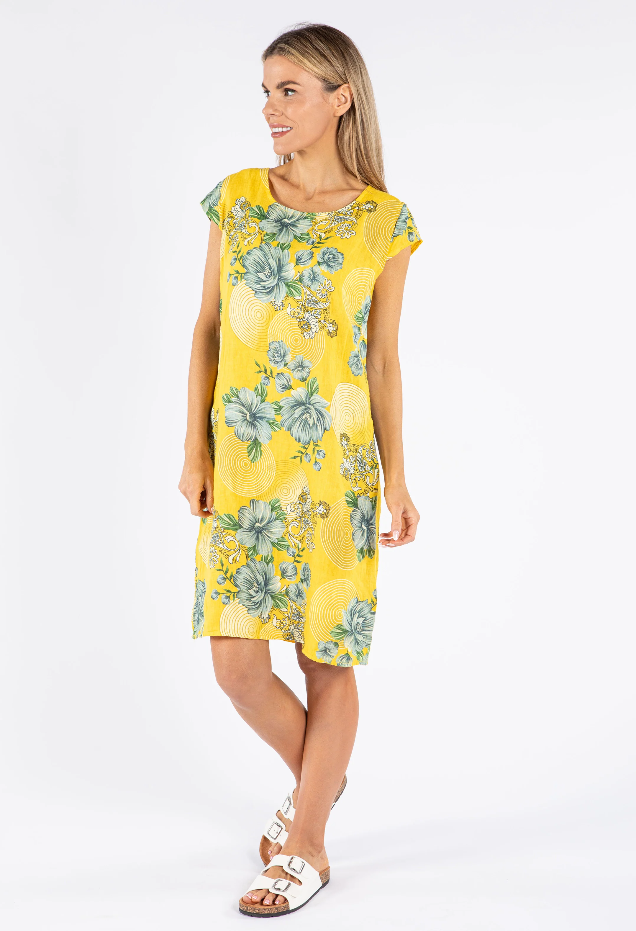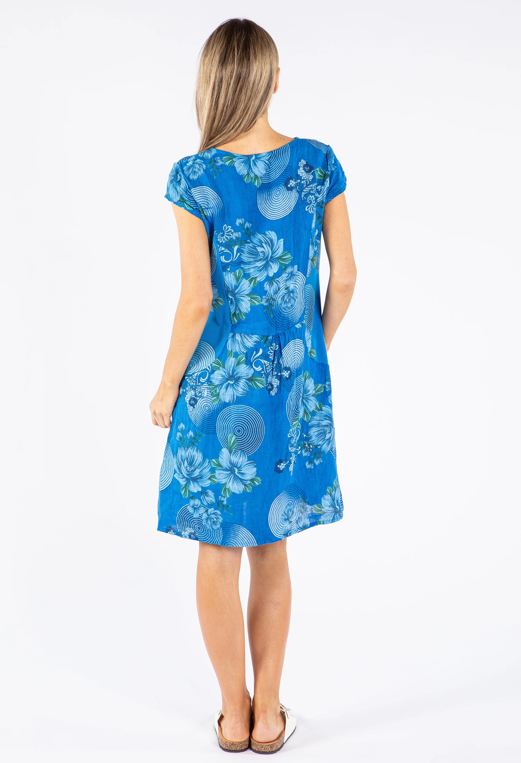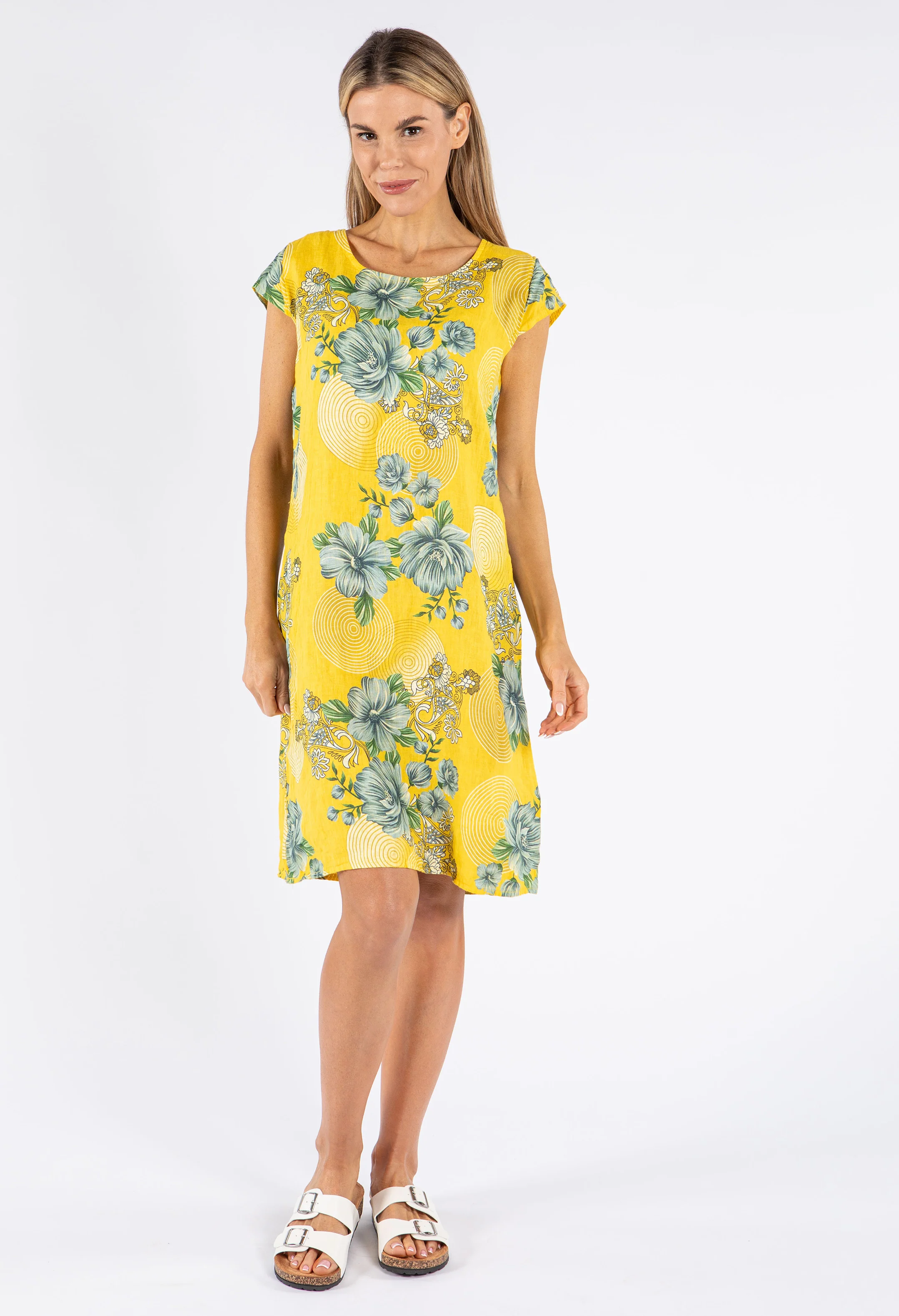 SWING DRESS IN PALM LEAF DESIGN WITH SCALLOP NECKLINE