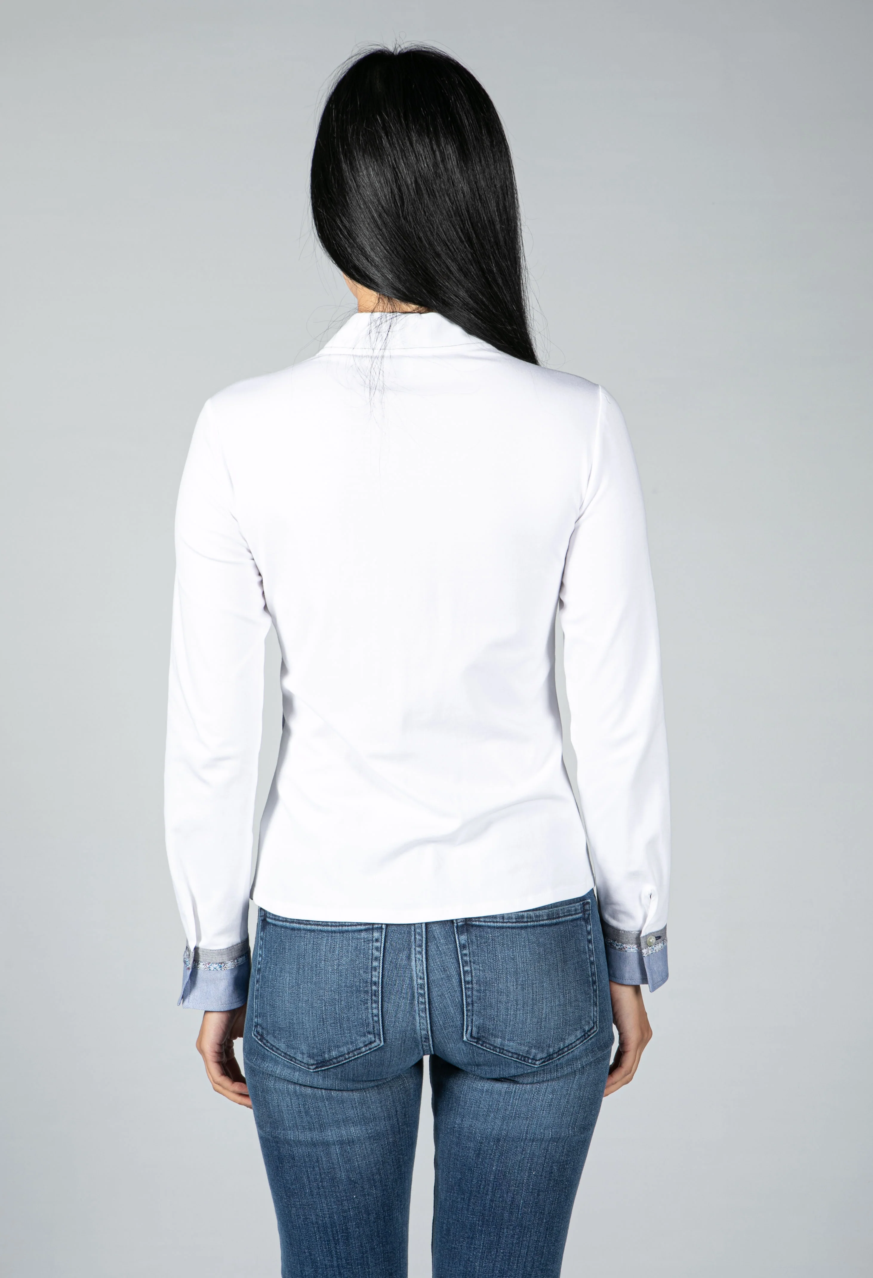 SWEATSHIRT WITH STAND-UP COLLAR AND RHINESTONES