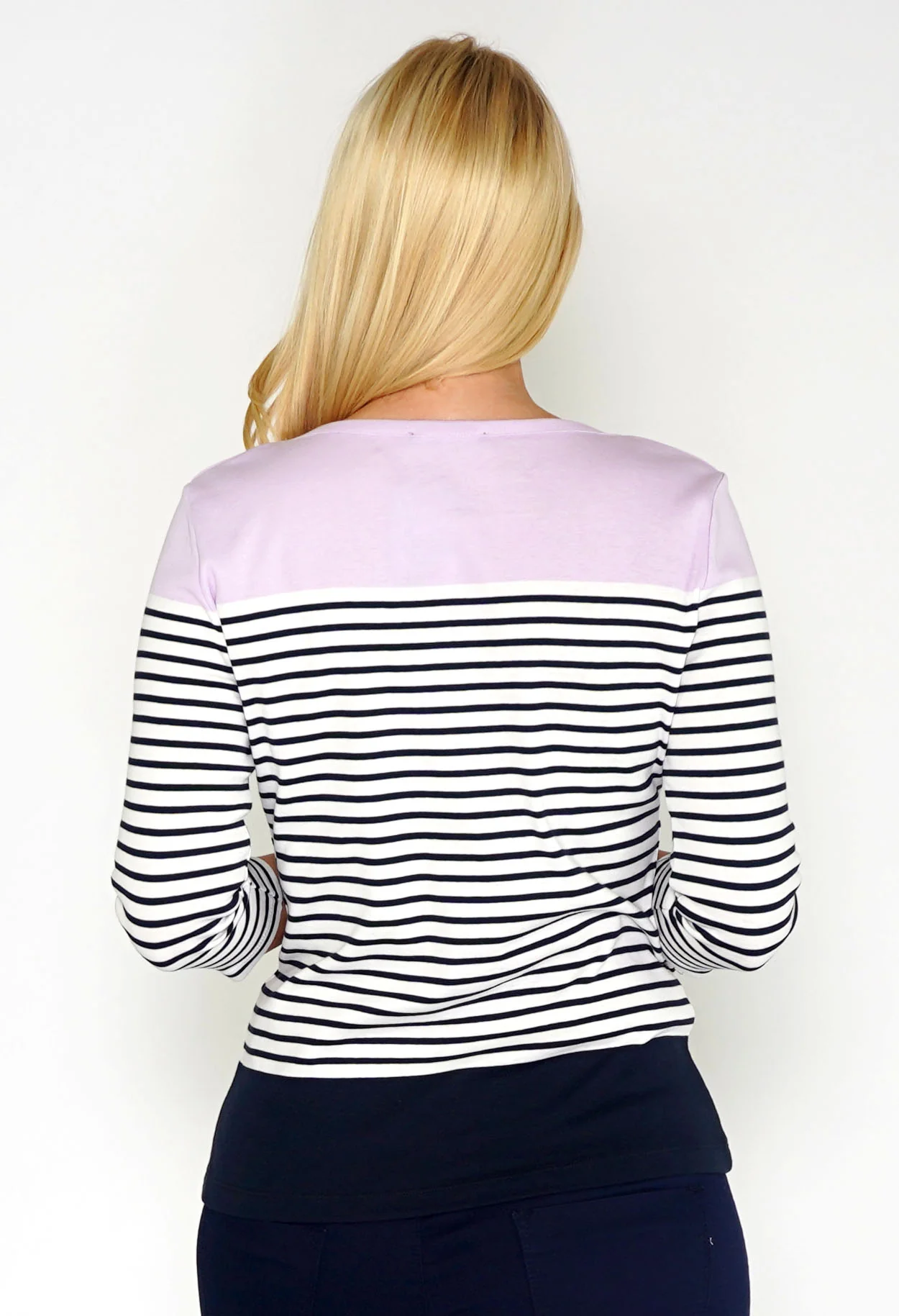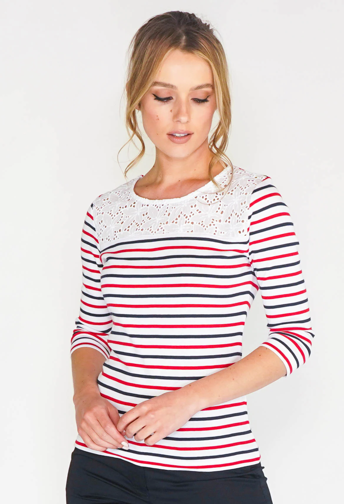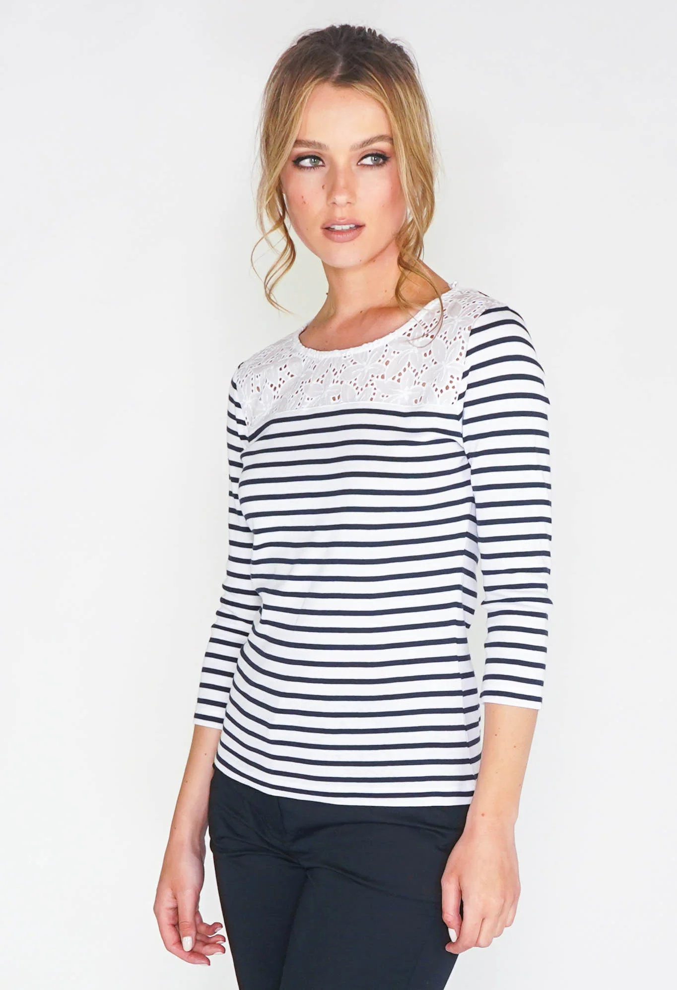 STRIPE TOP WITH BRODERIE ANGLAISE PANEL