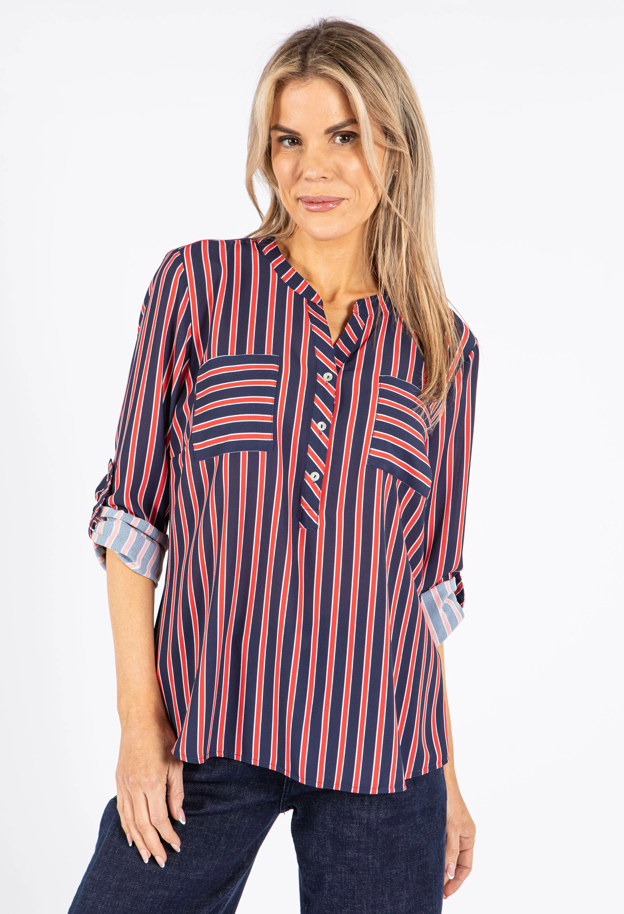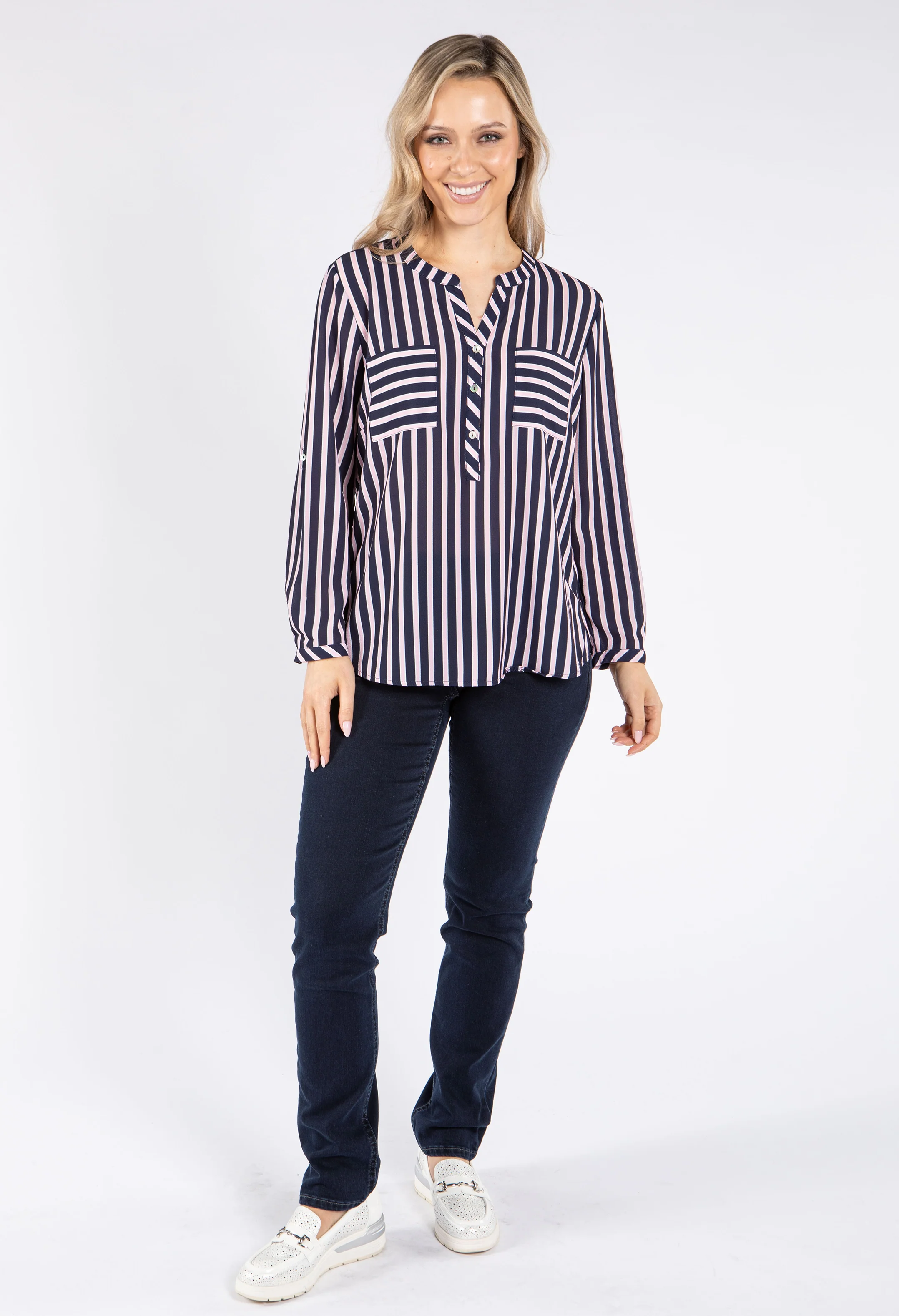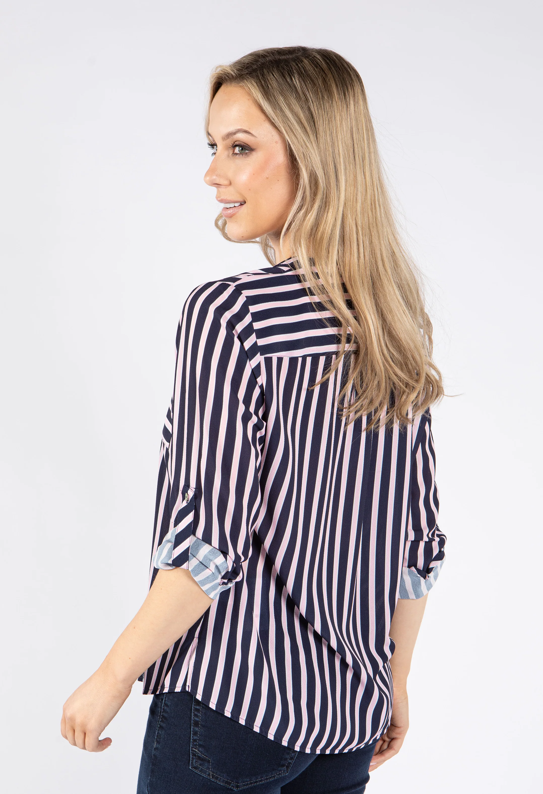 STRIPE TOP WITH BRODERIE ANGLAISE PANEL