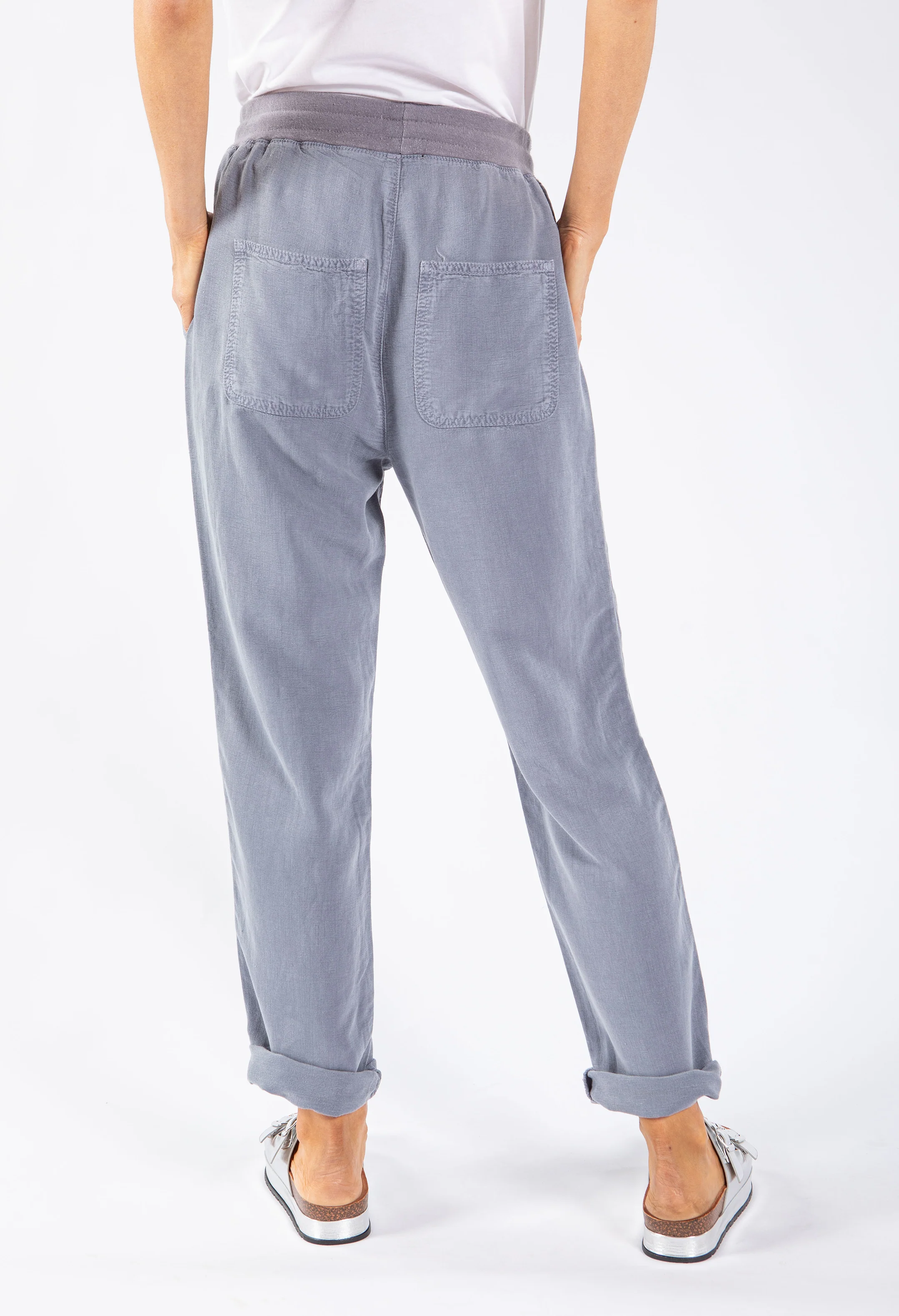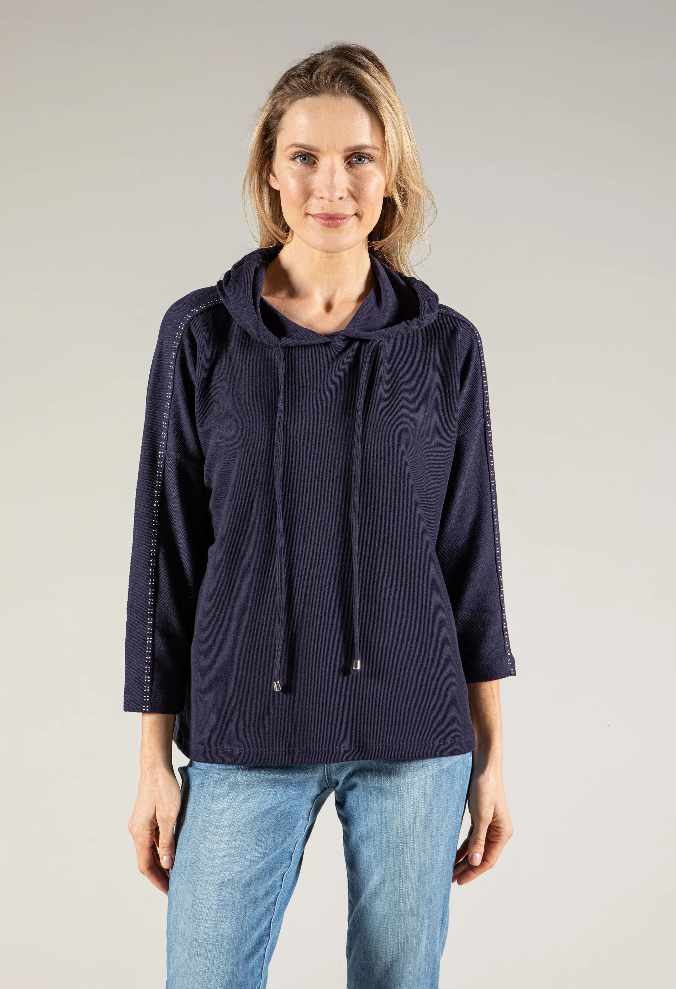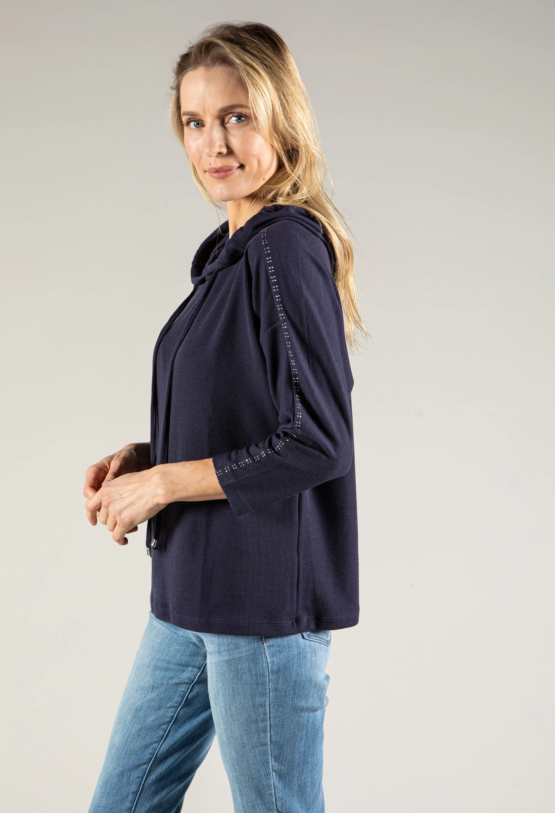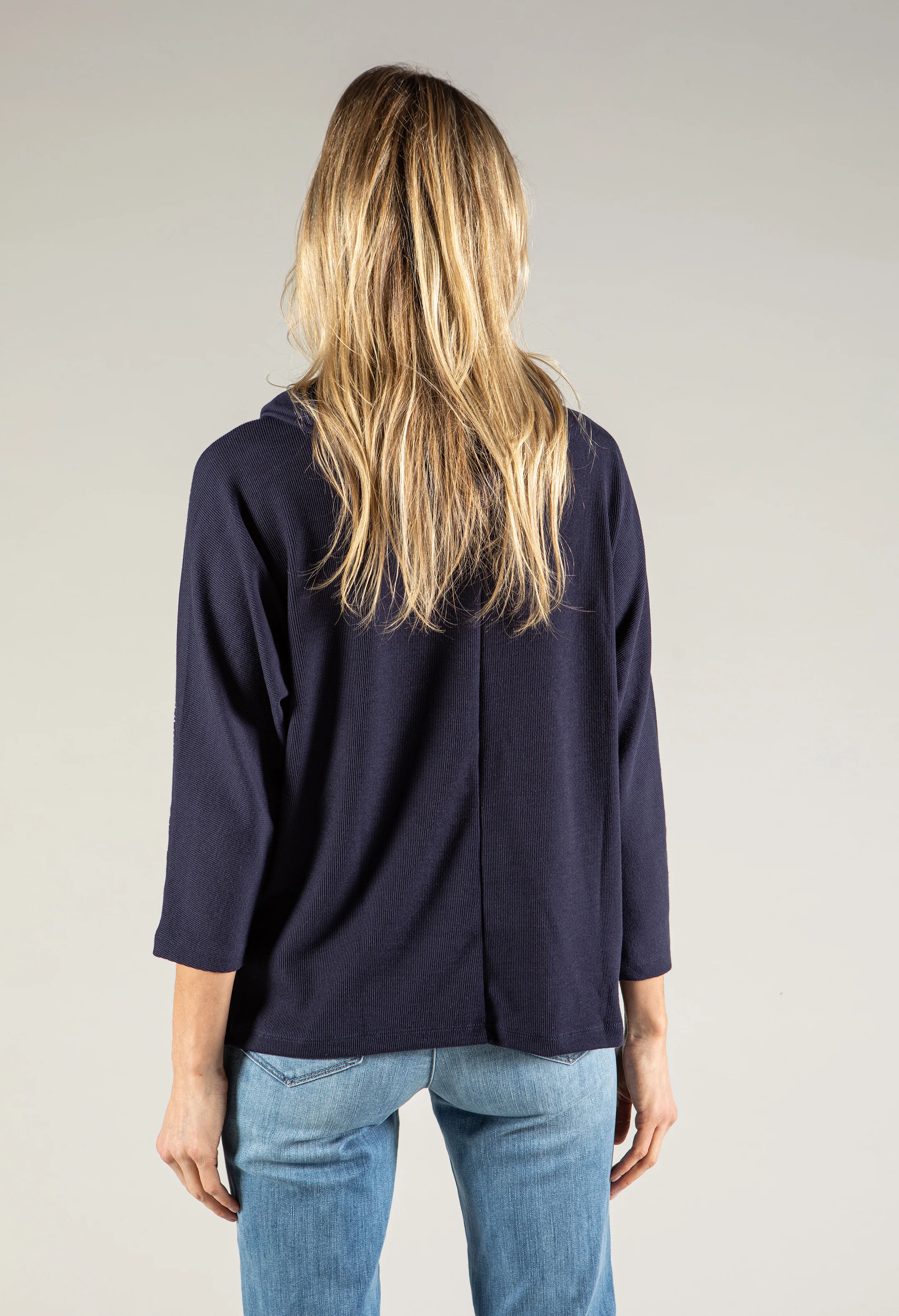 SOFT LINEN TOUCH TOP WITH INDIGO FLOWERS