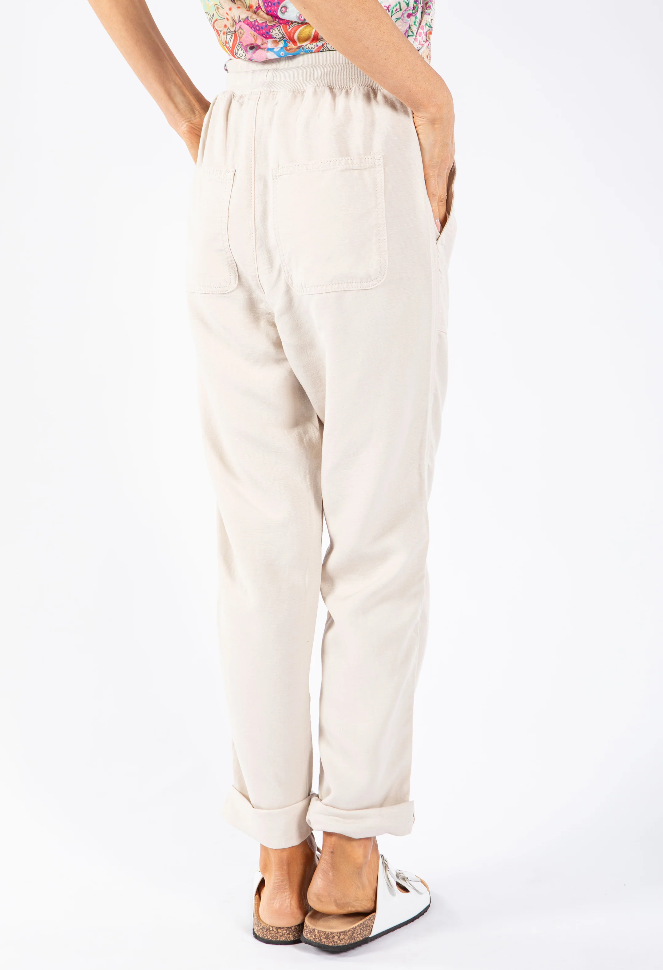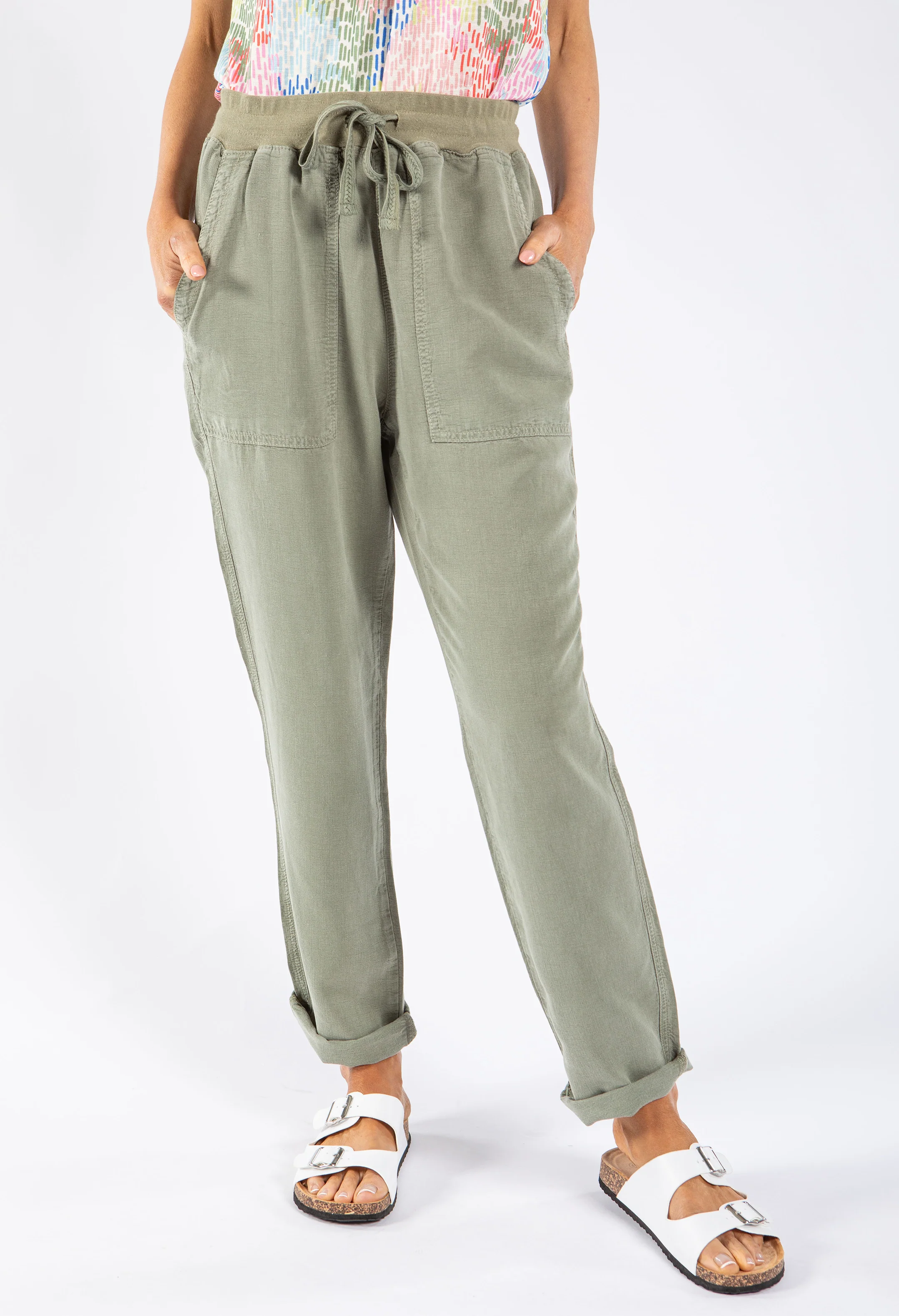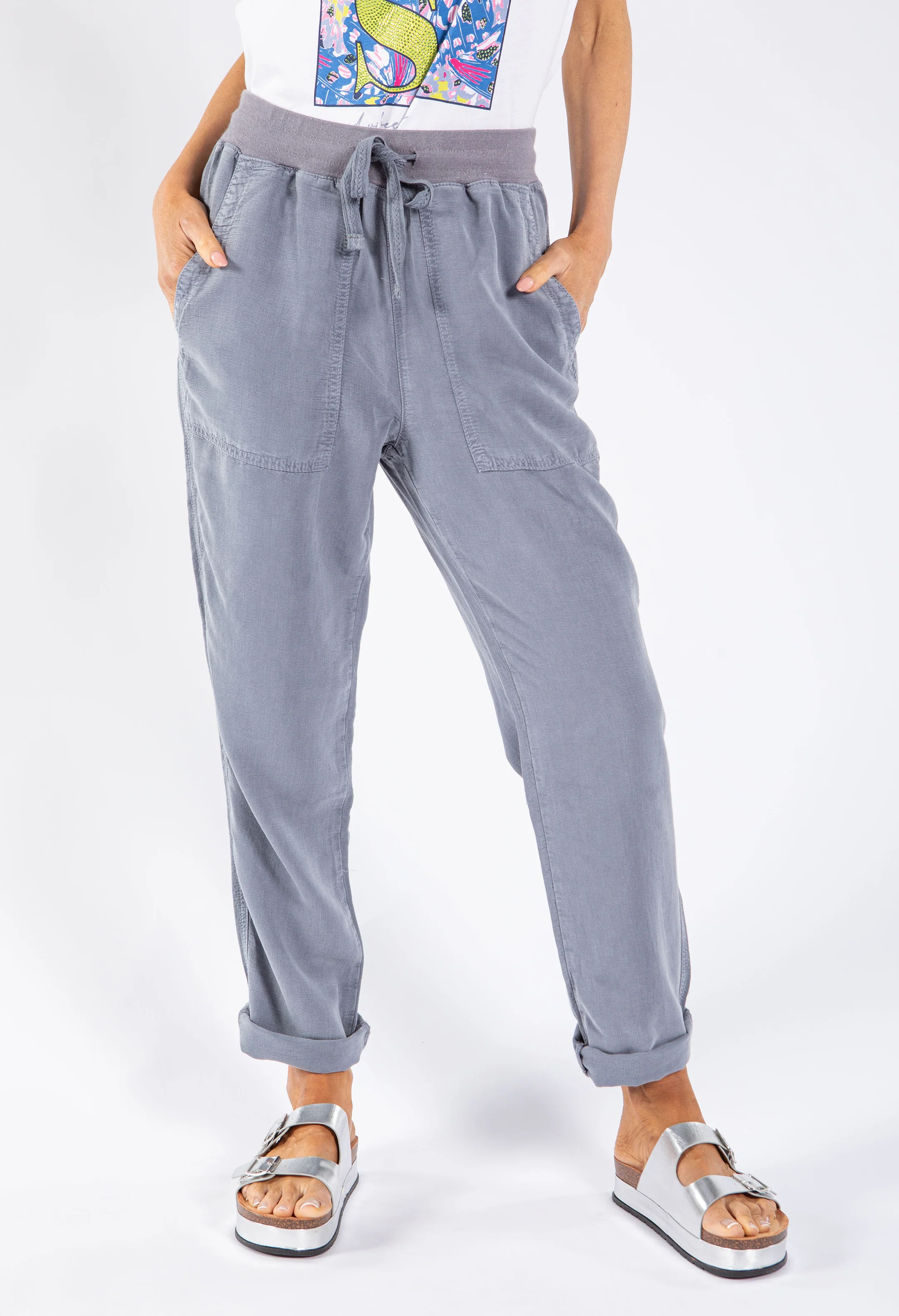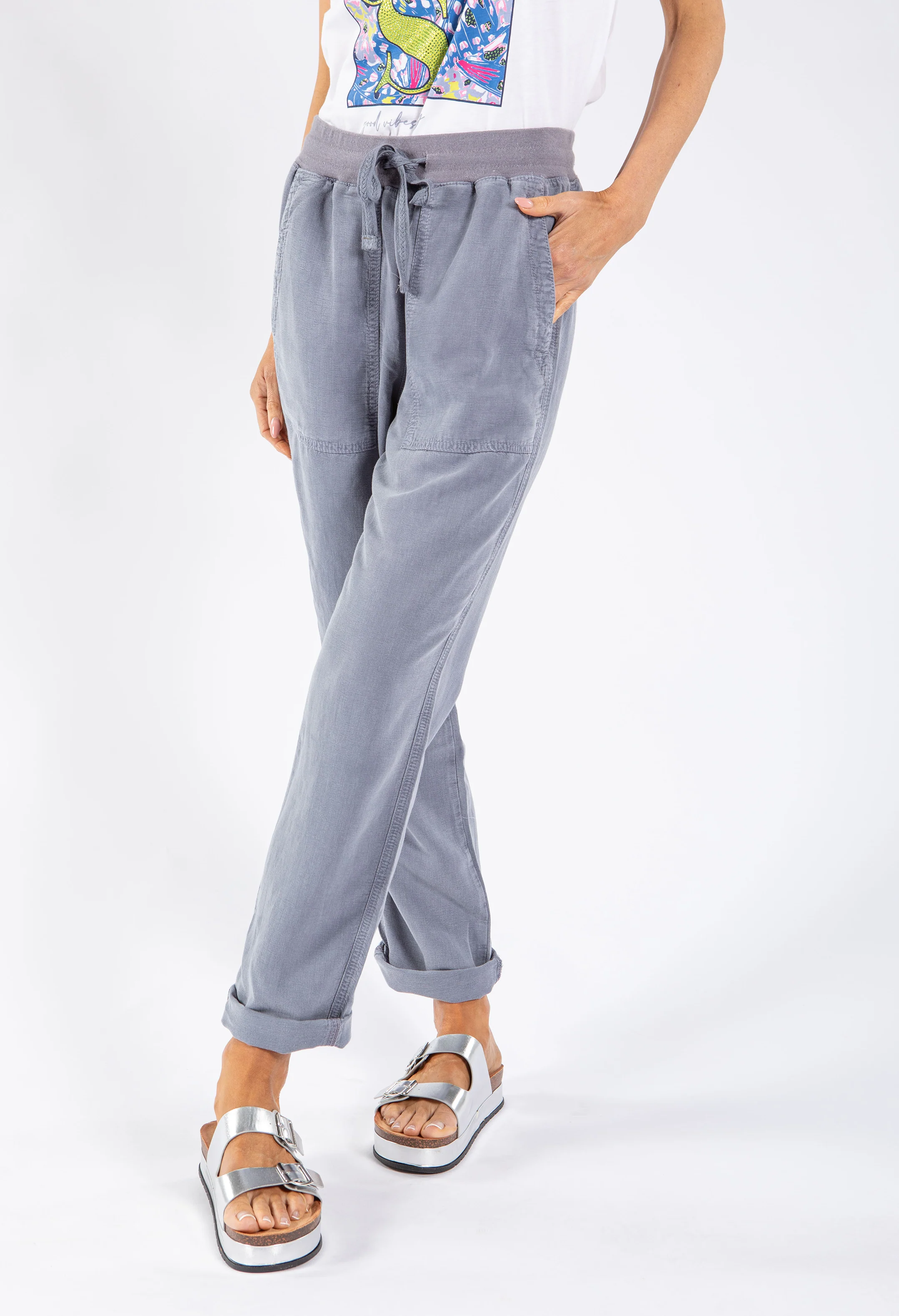 SOFT LINEN TOUCH TOP WITH INDIGO FLOWERS