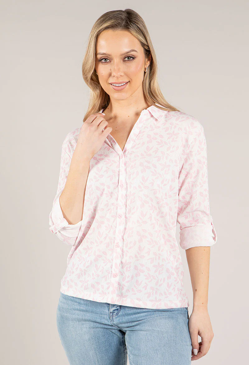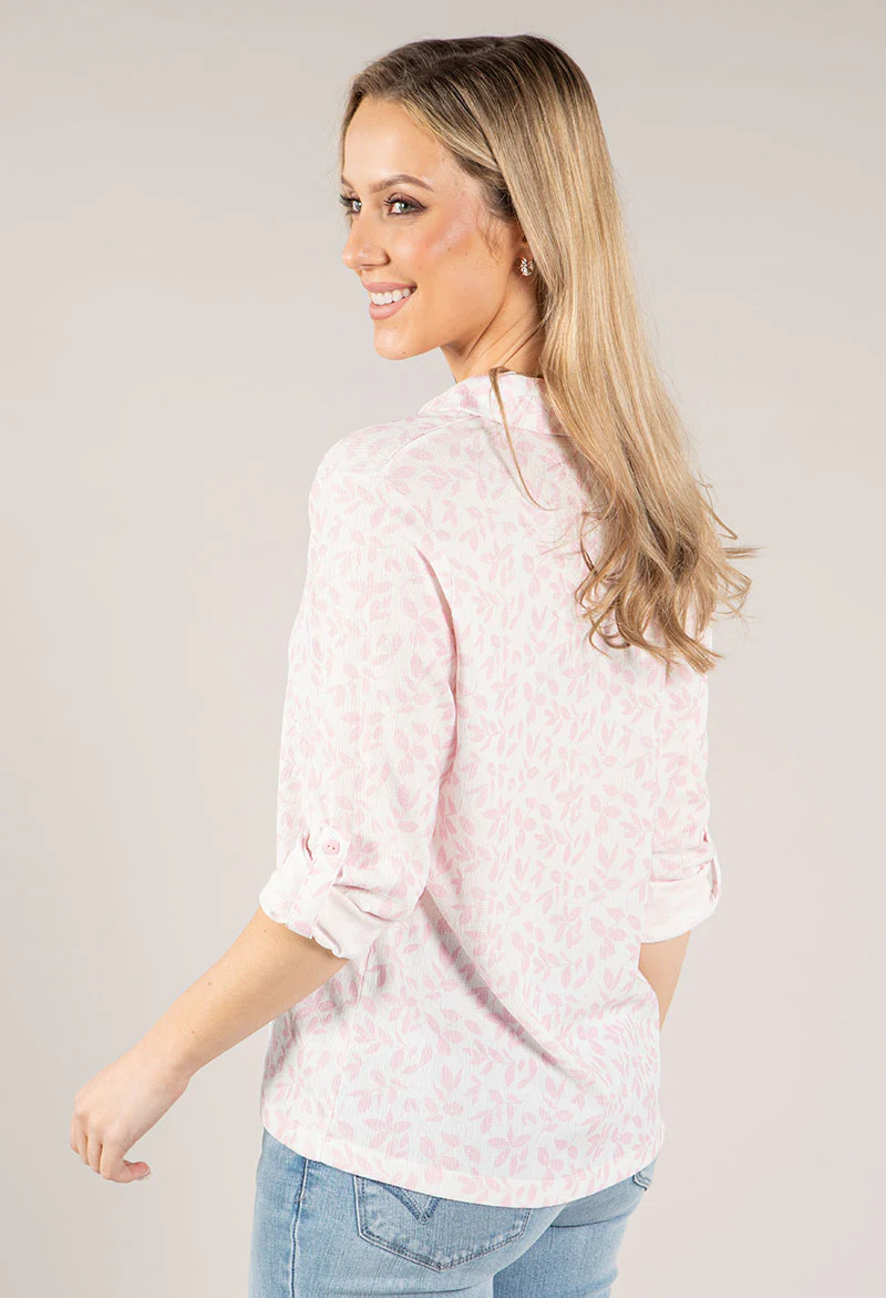 Soft Leaf Print Buttoned Blouse with Sleeves