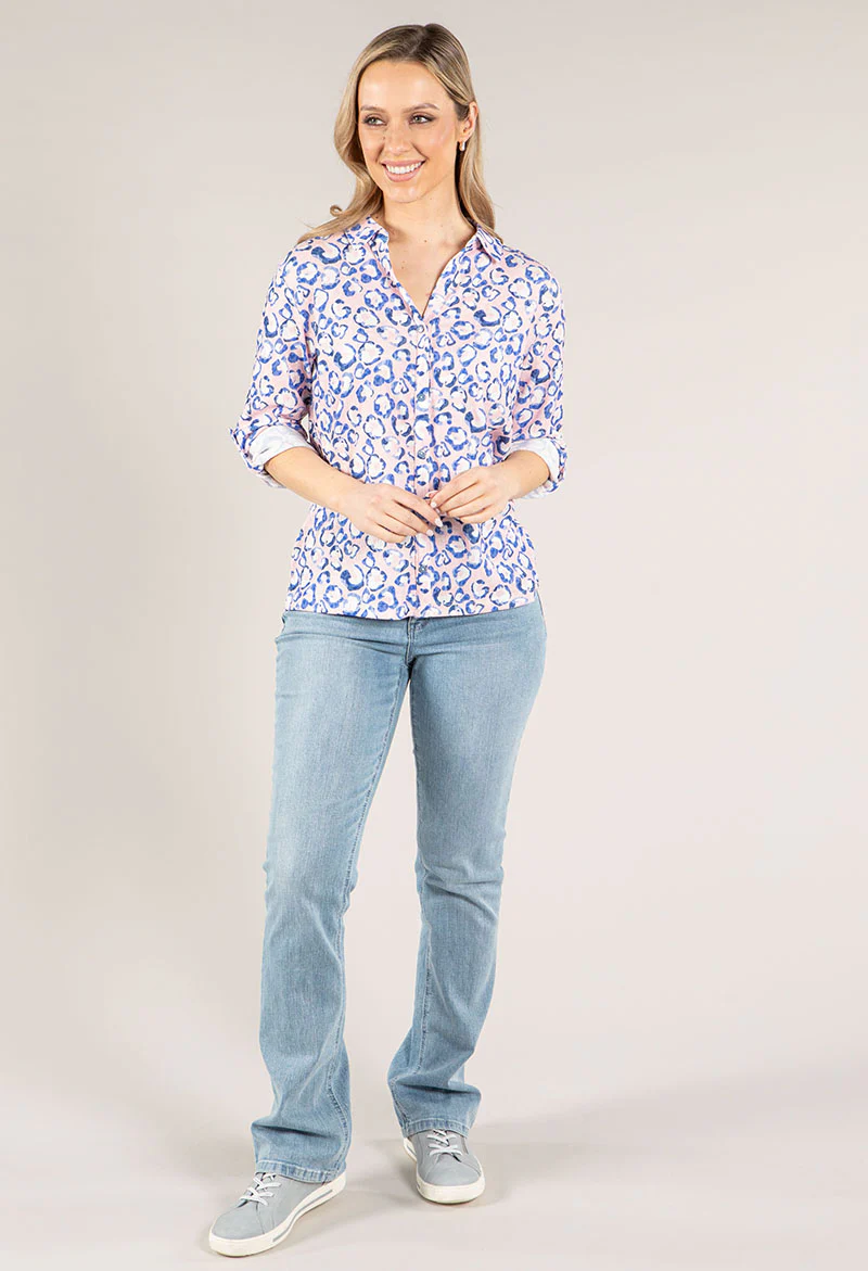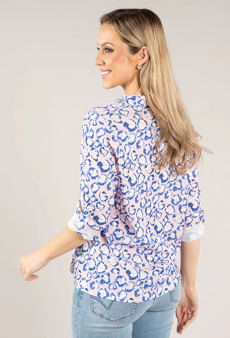 Soft Leopard Print Buttoned Blouse with Sleeves