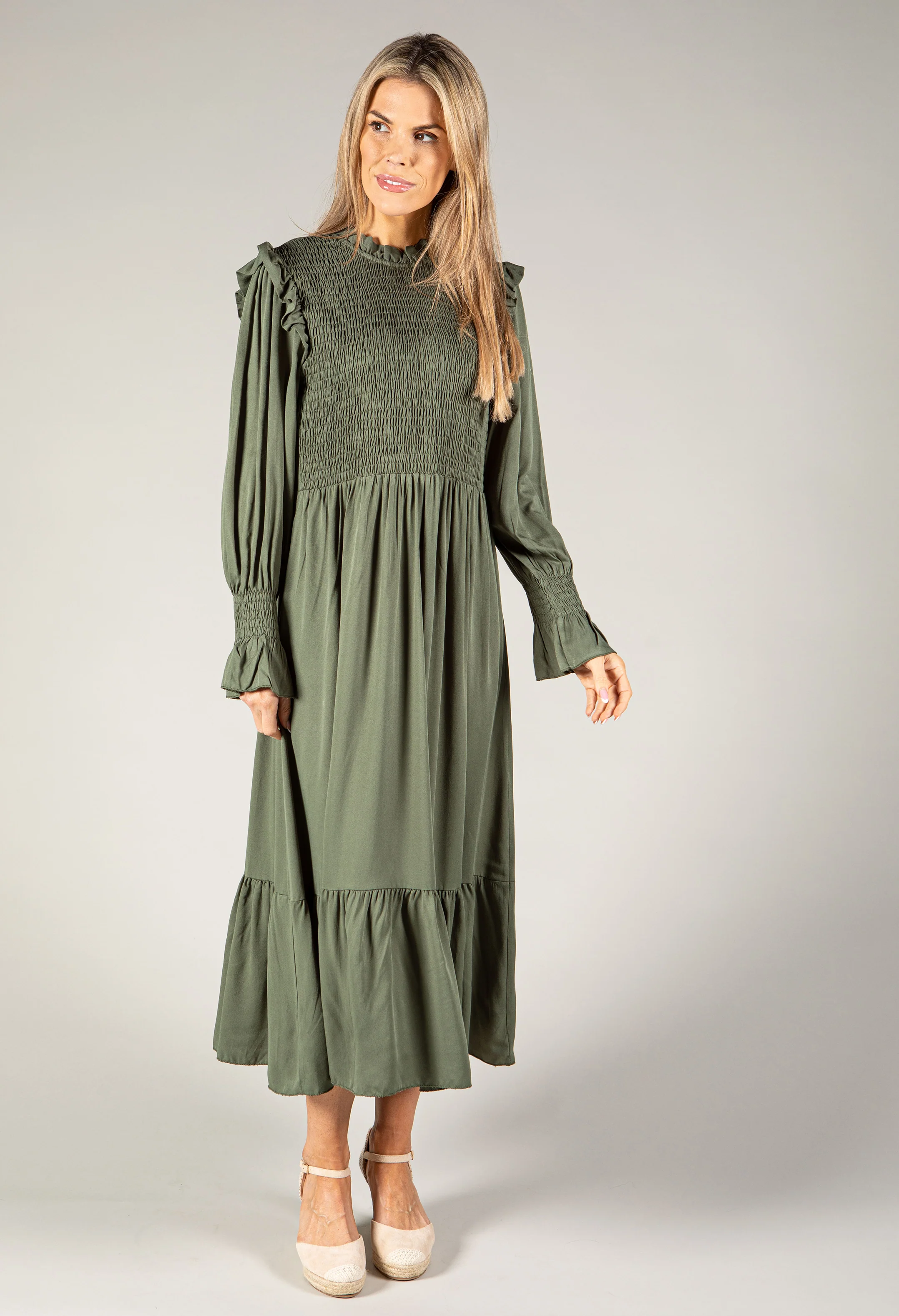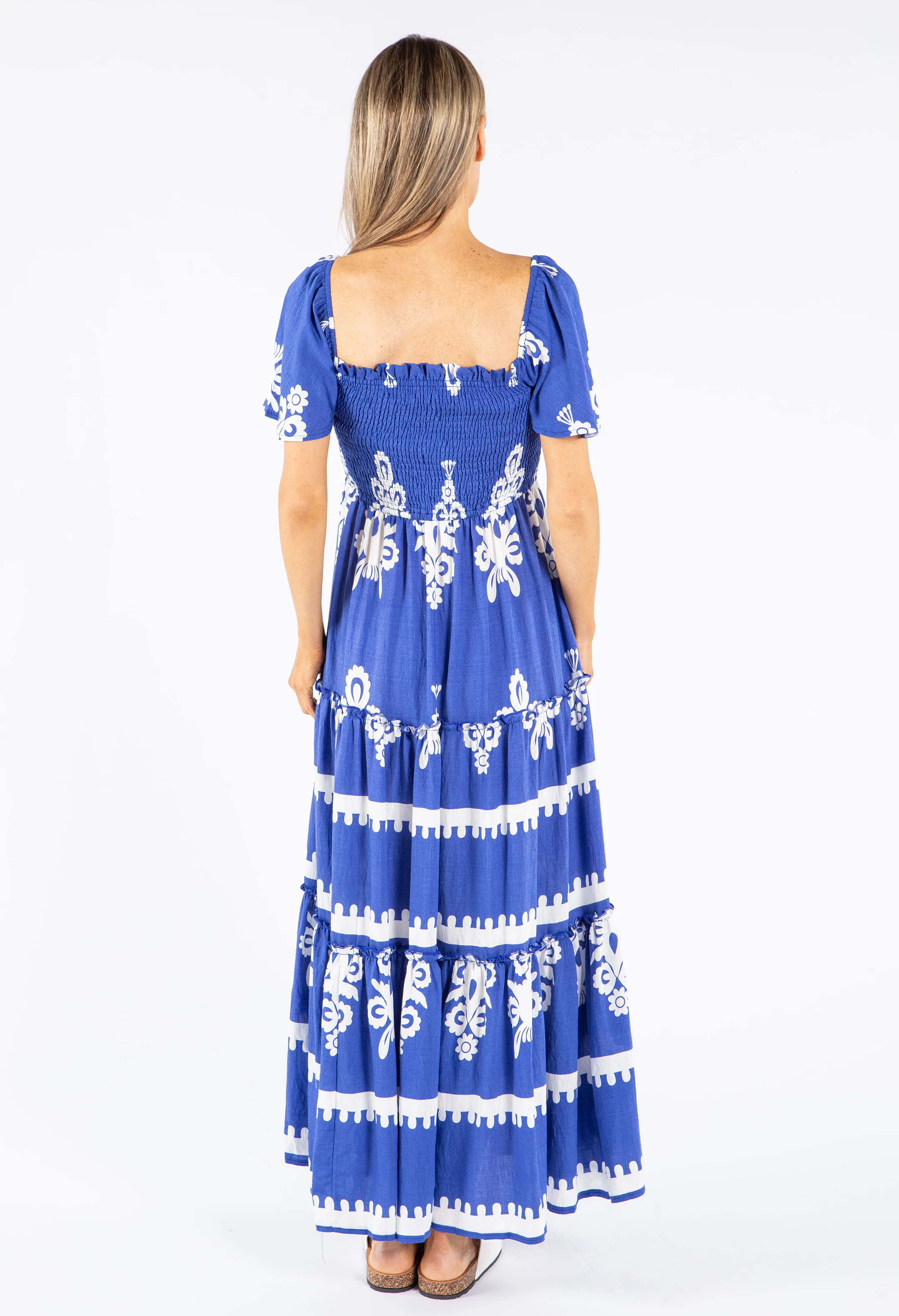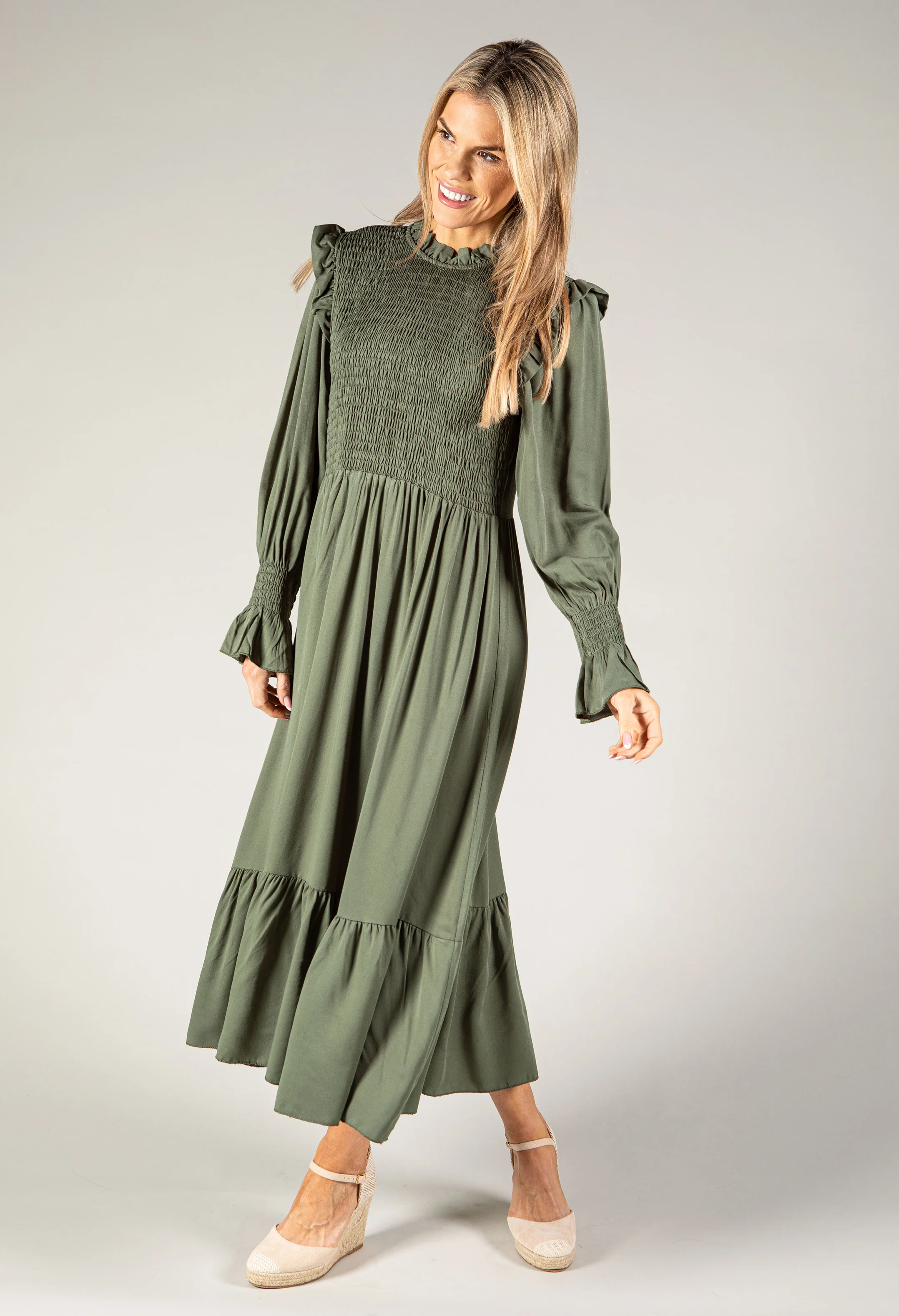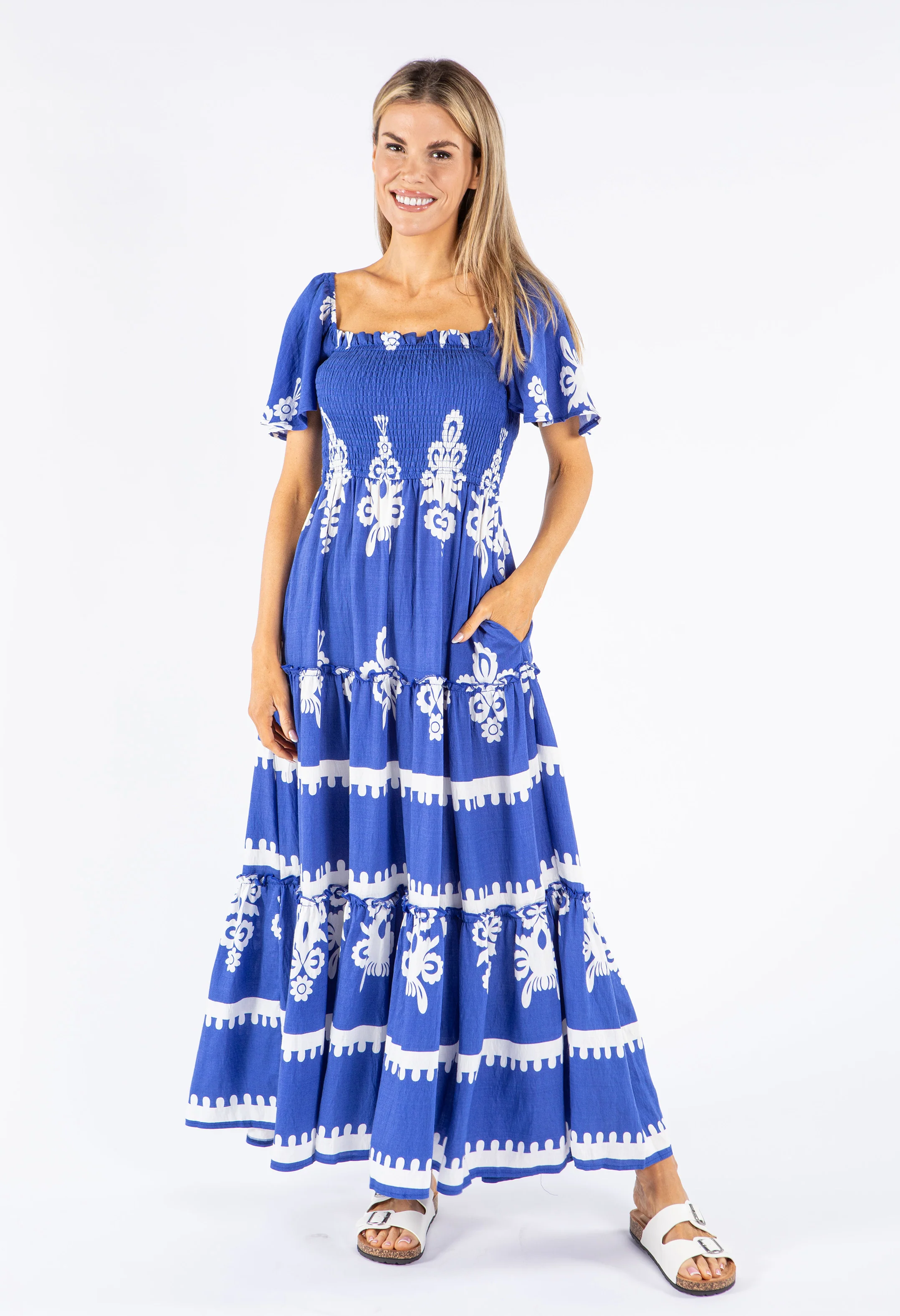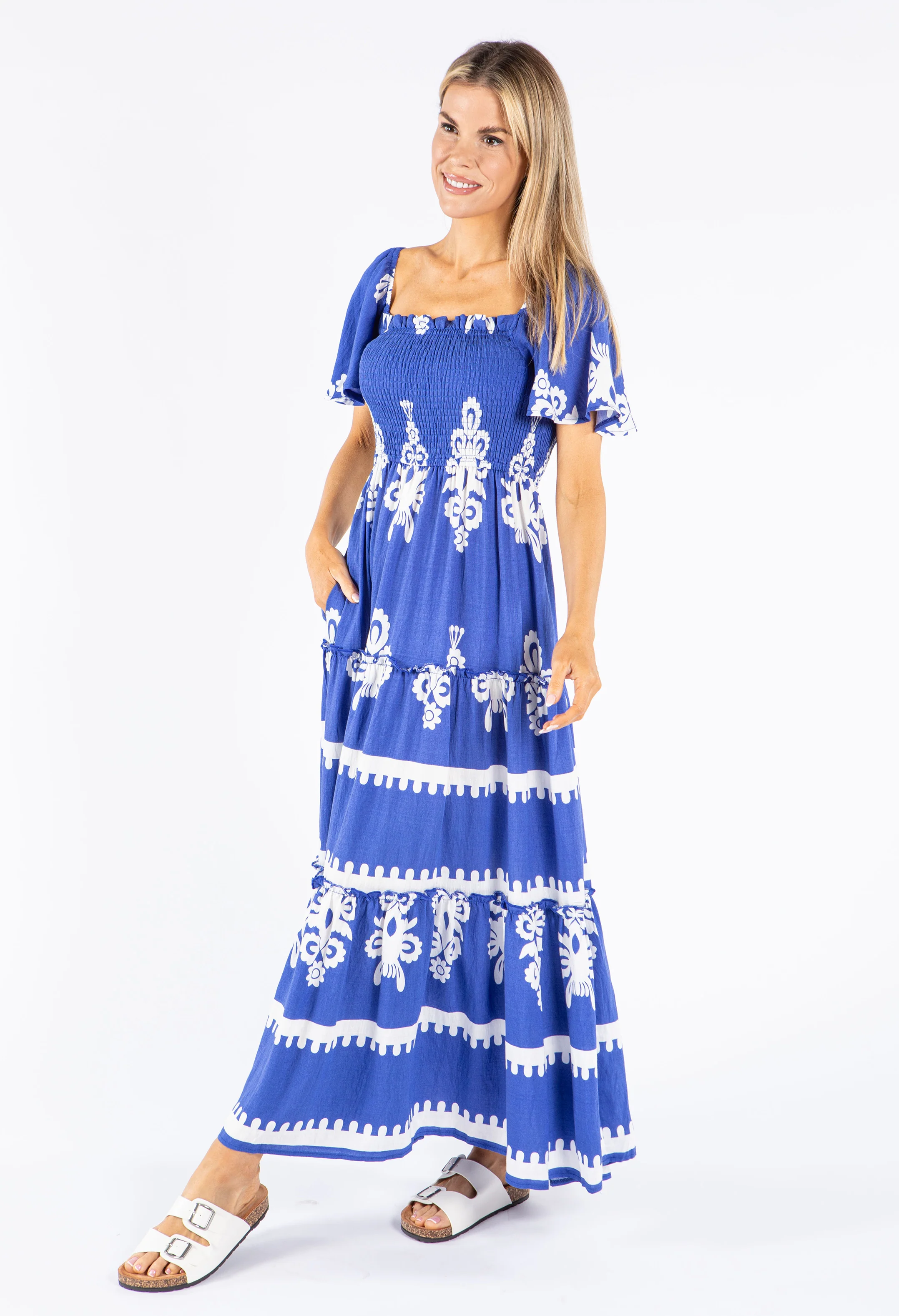 Smocking Mock Neck Printed Long Sleeve Top in Black