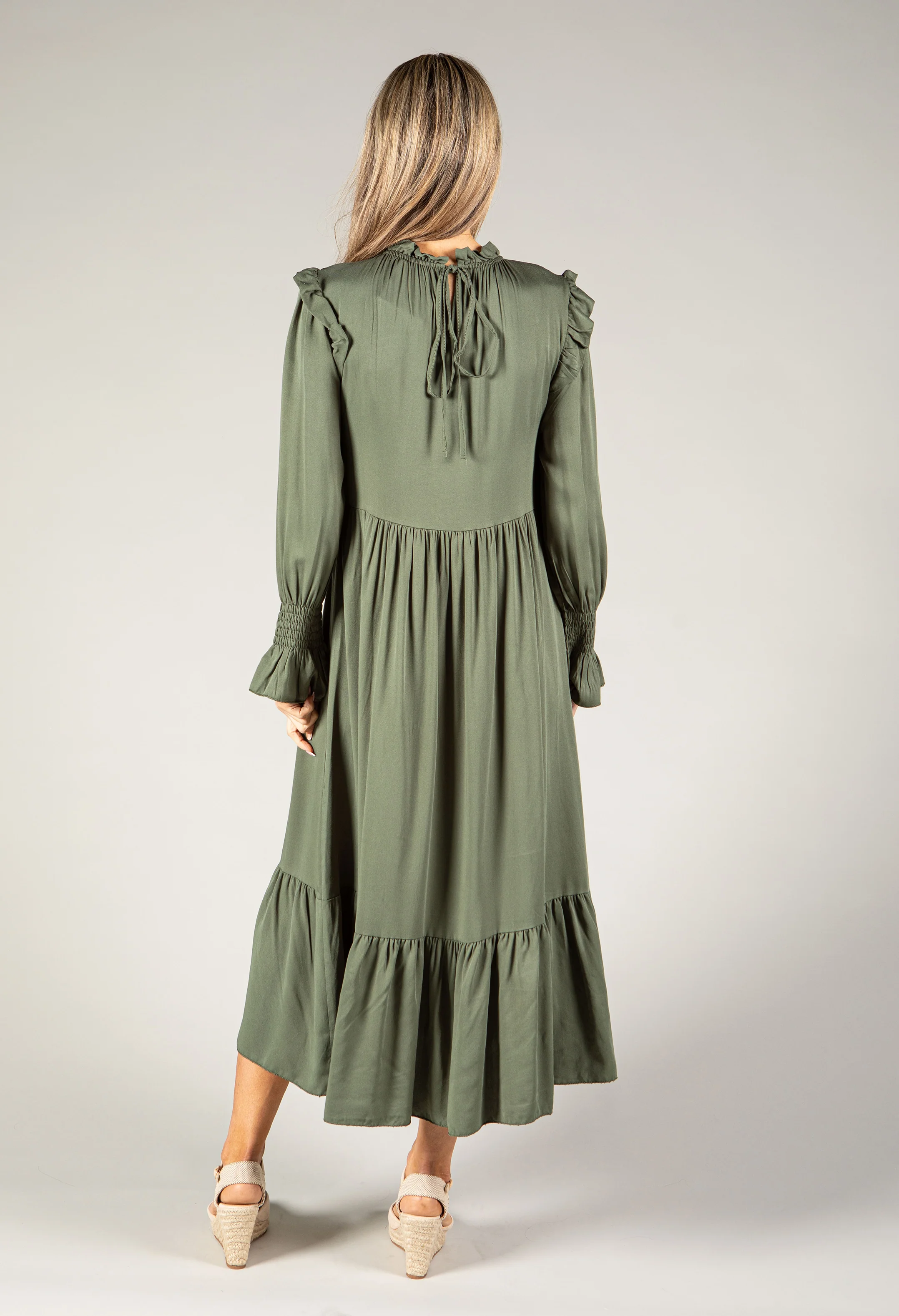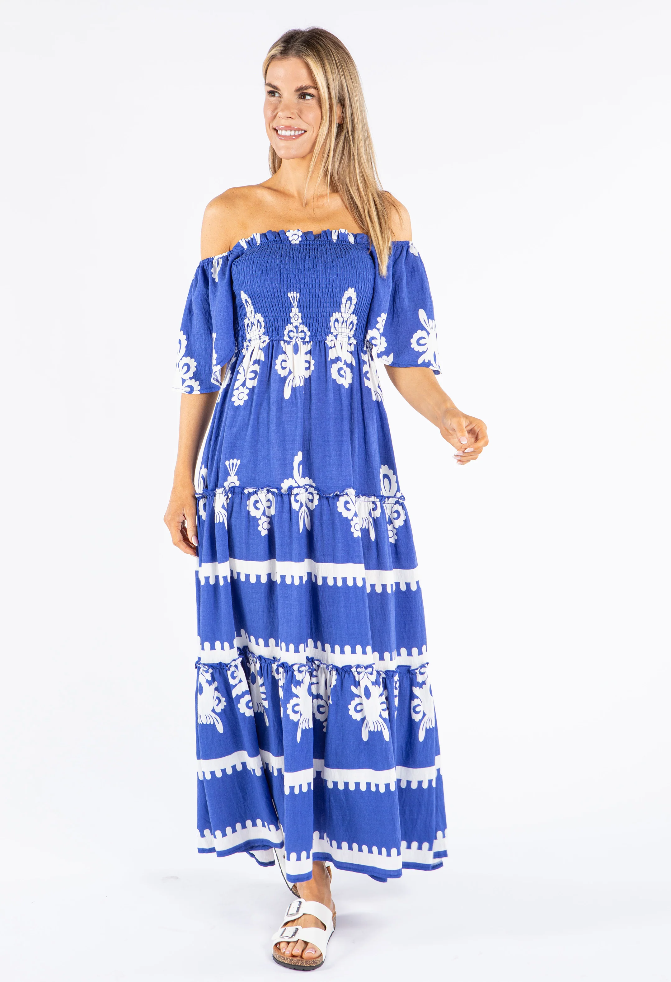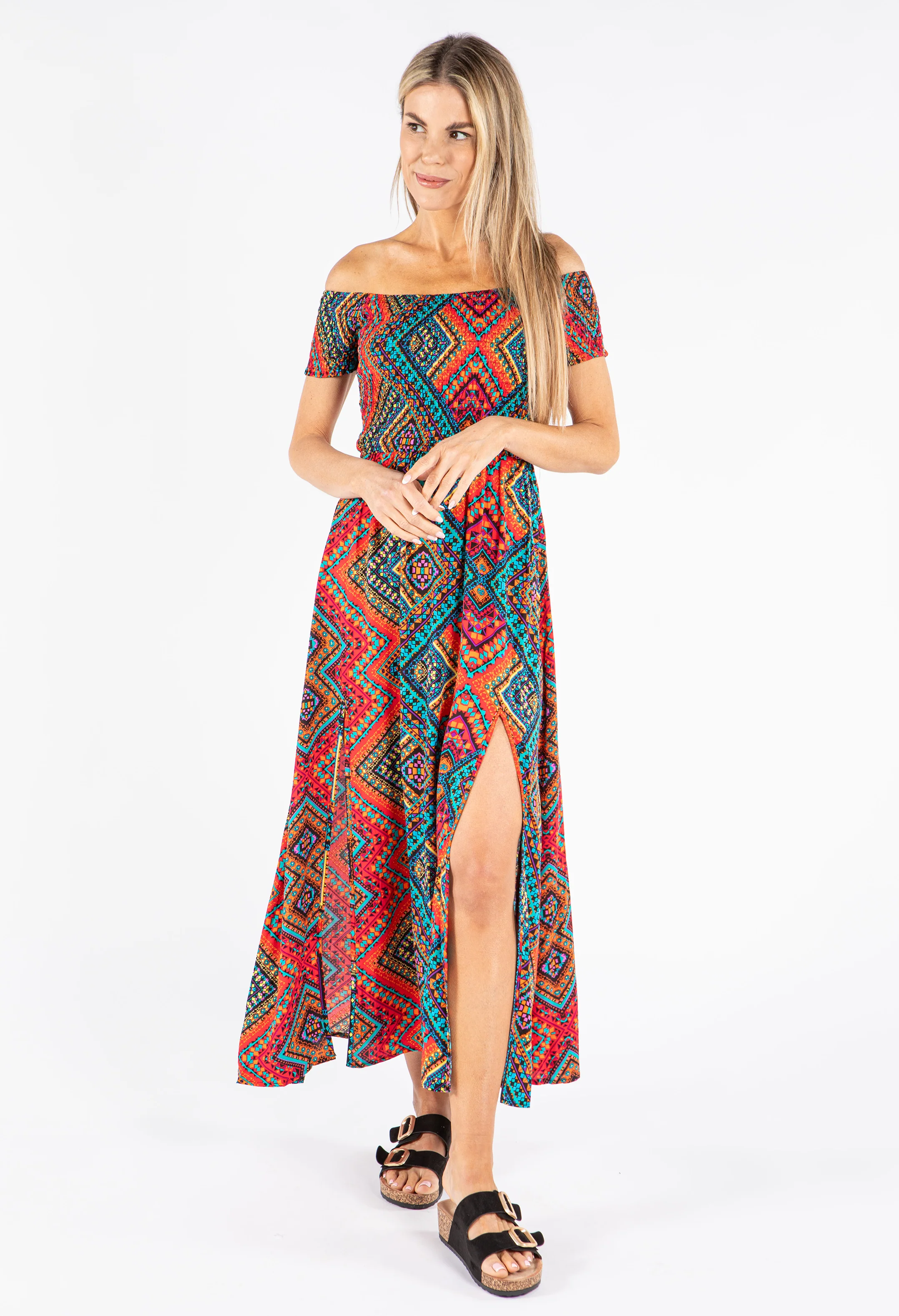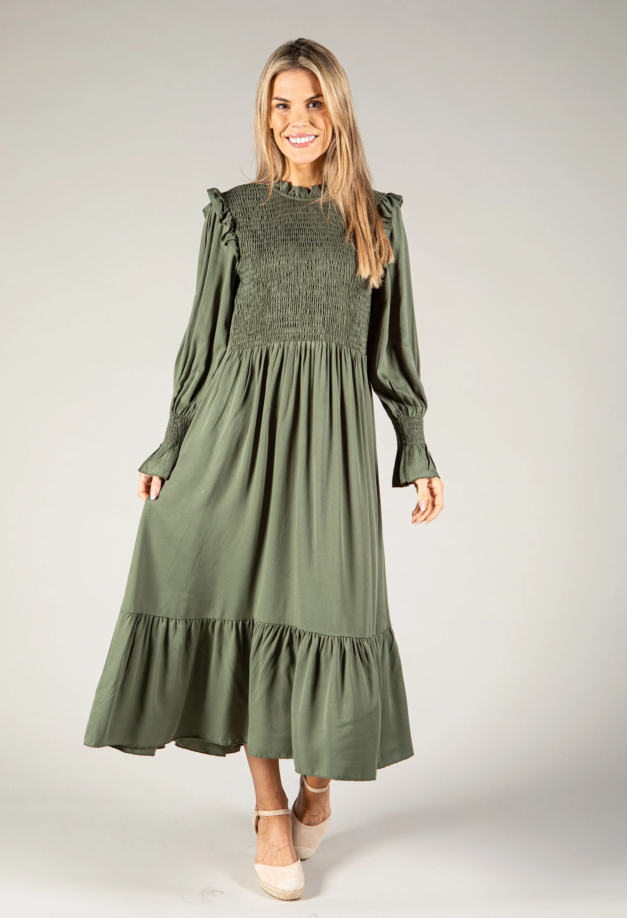 Smocking Mock Neck Printed Long Sleeve Top in Black
