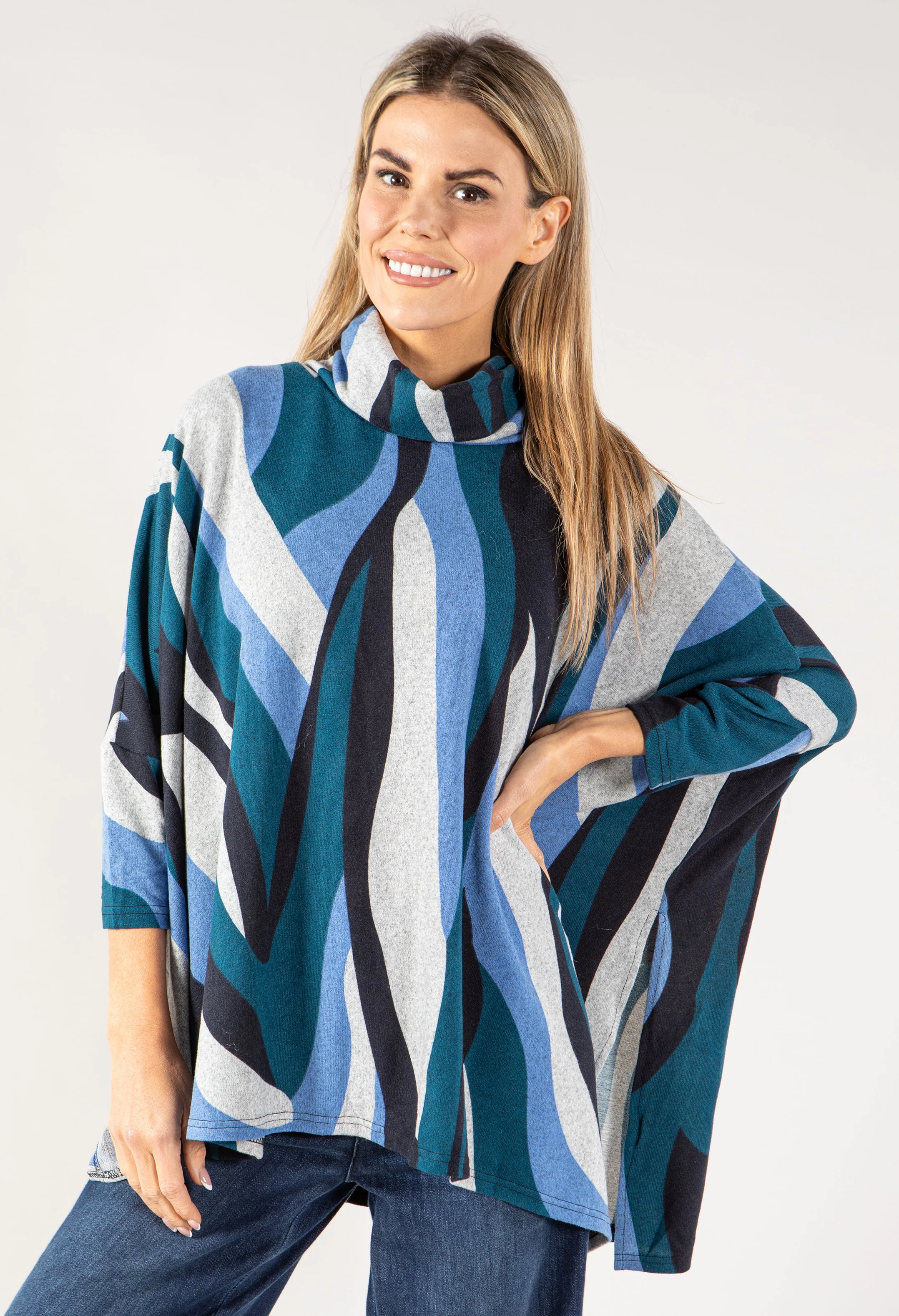 ROLL NECK LONG SLEEVE TOP IN GRAFFITI PRINT