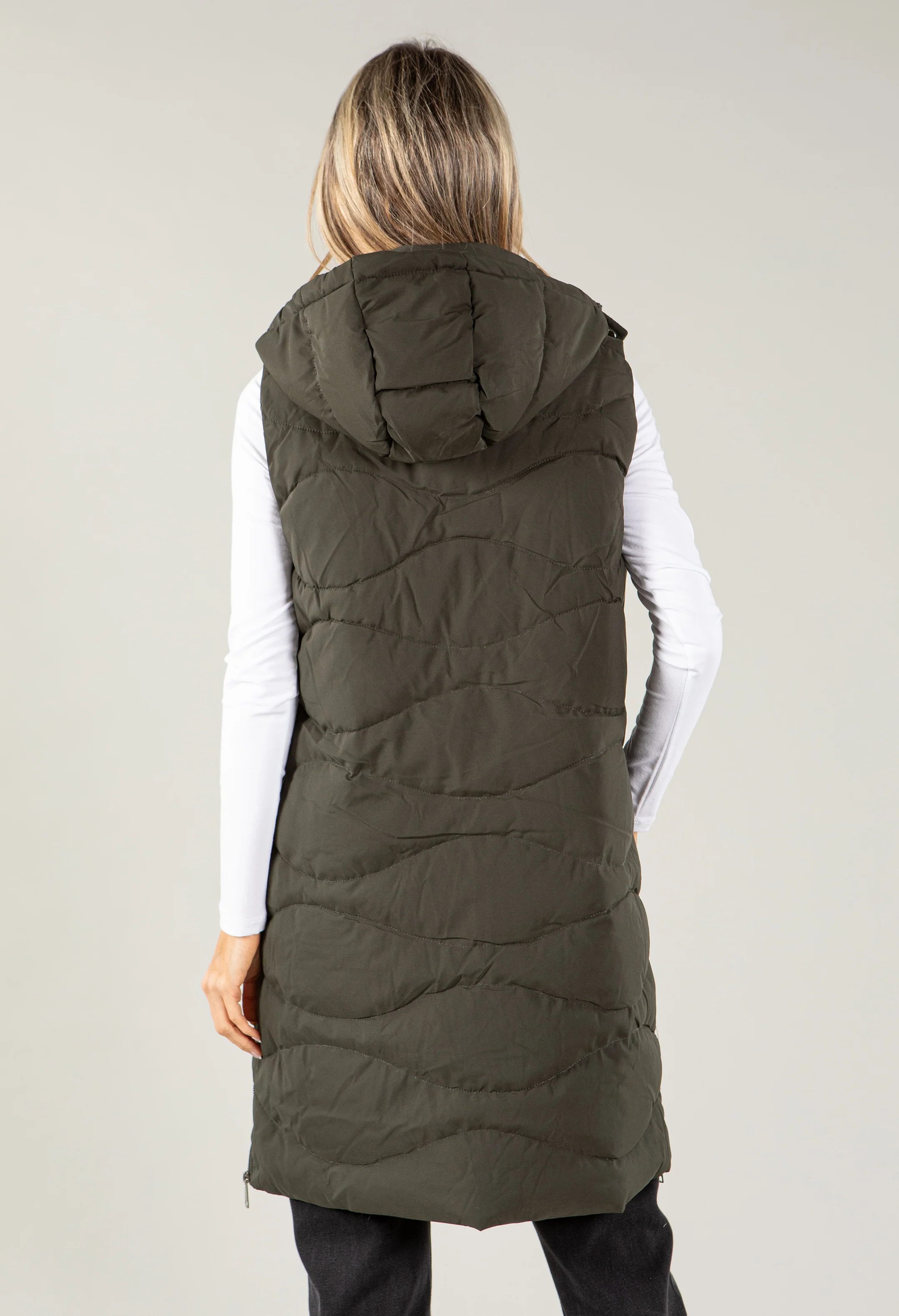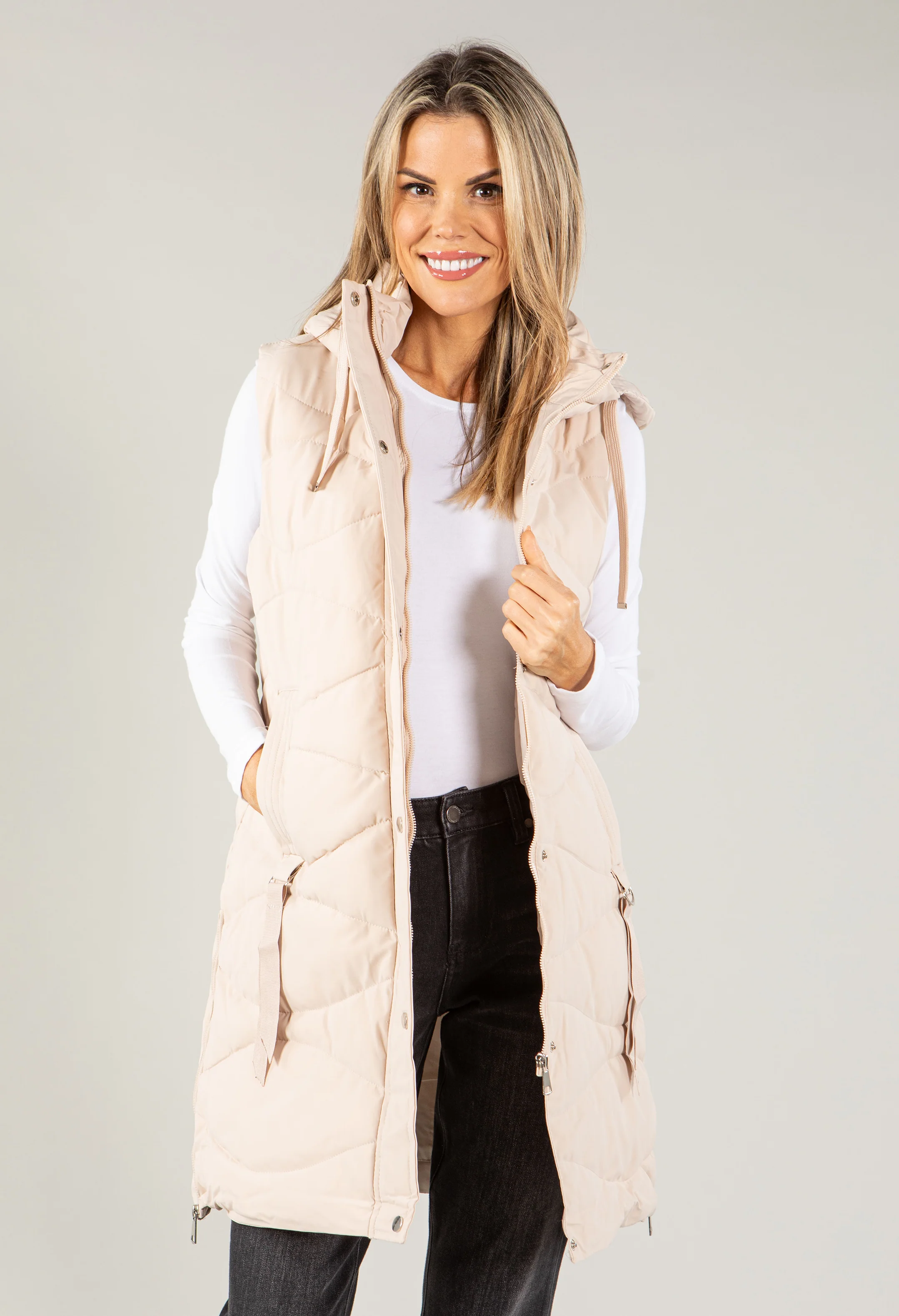 Quilted Down-Filled Gilet with Detachable Hood in Beige