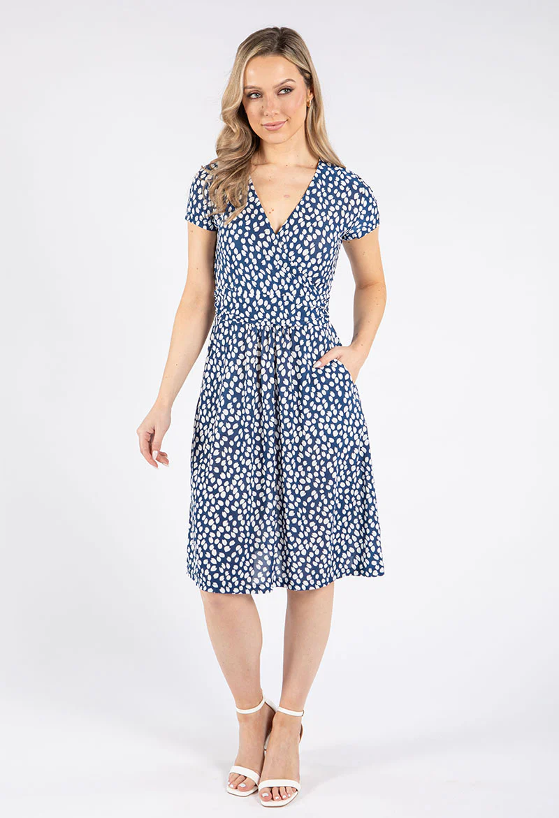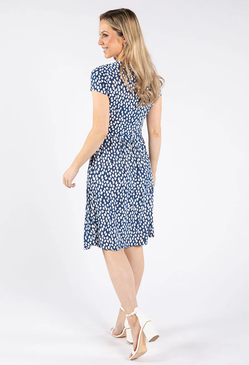 Printed Plisse Dress in Navy