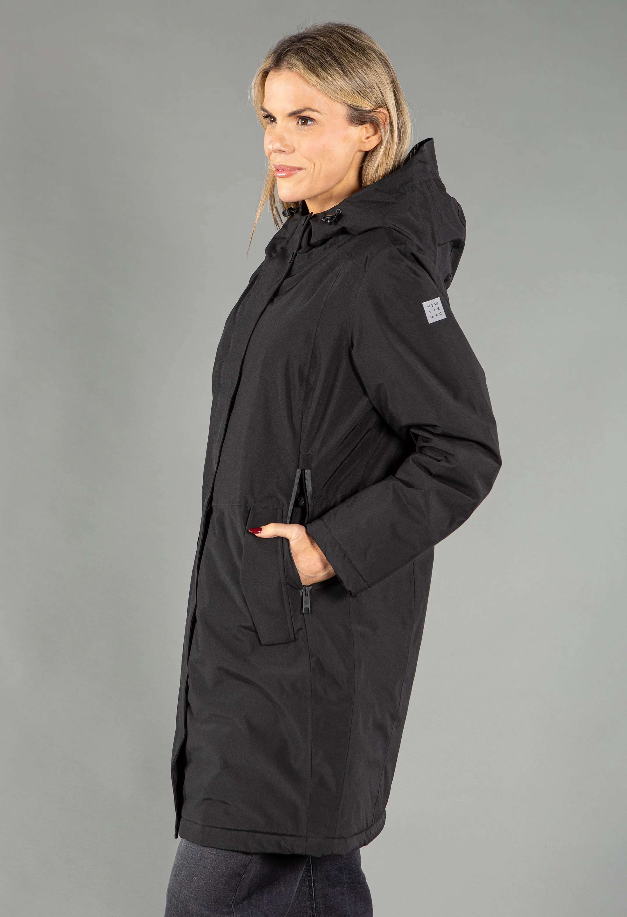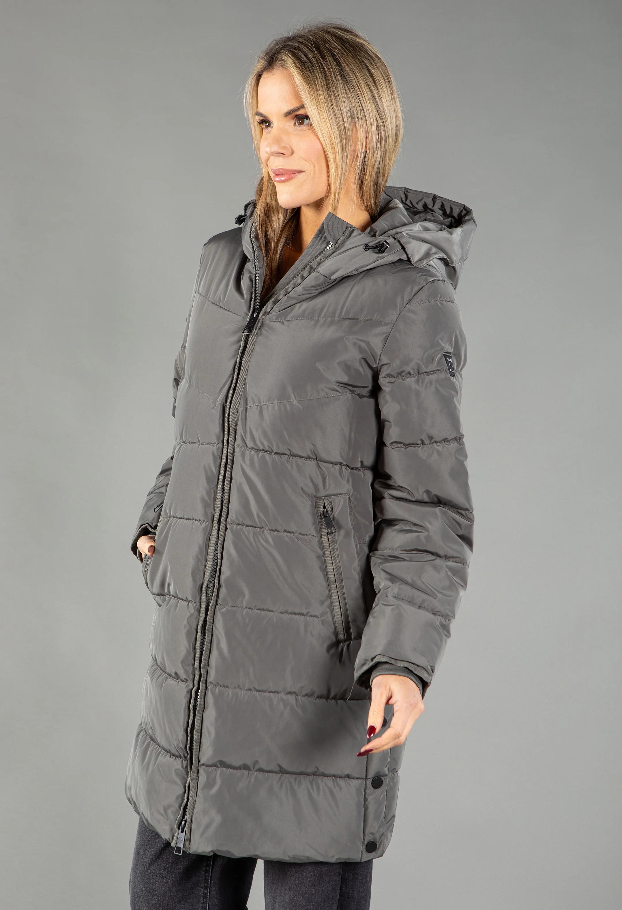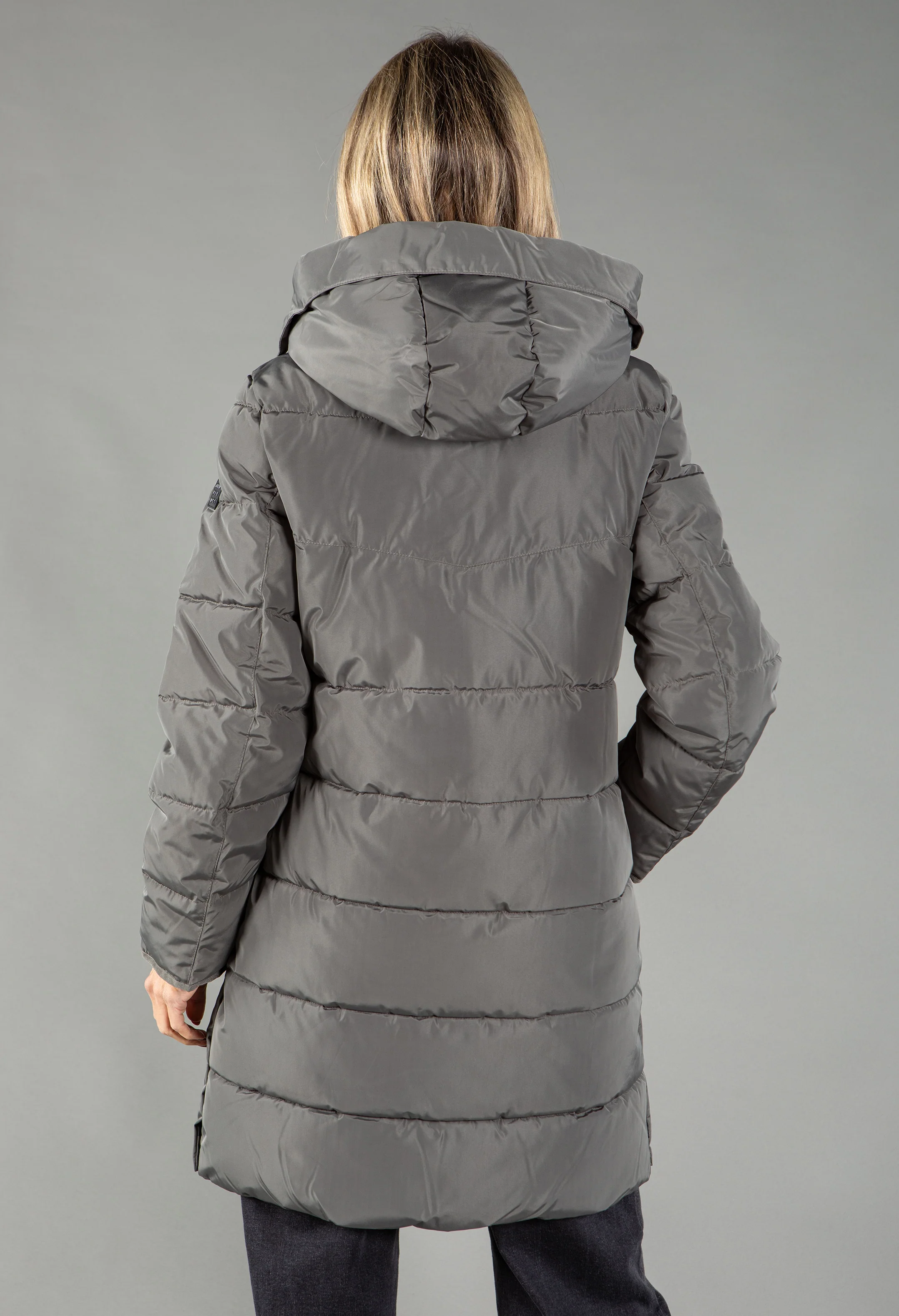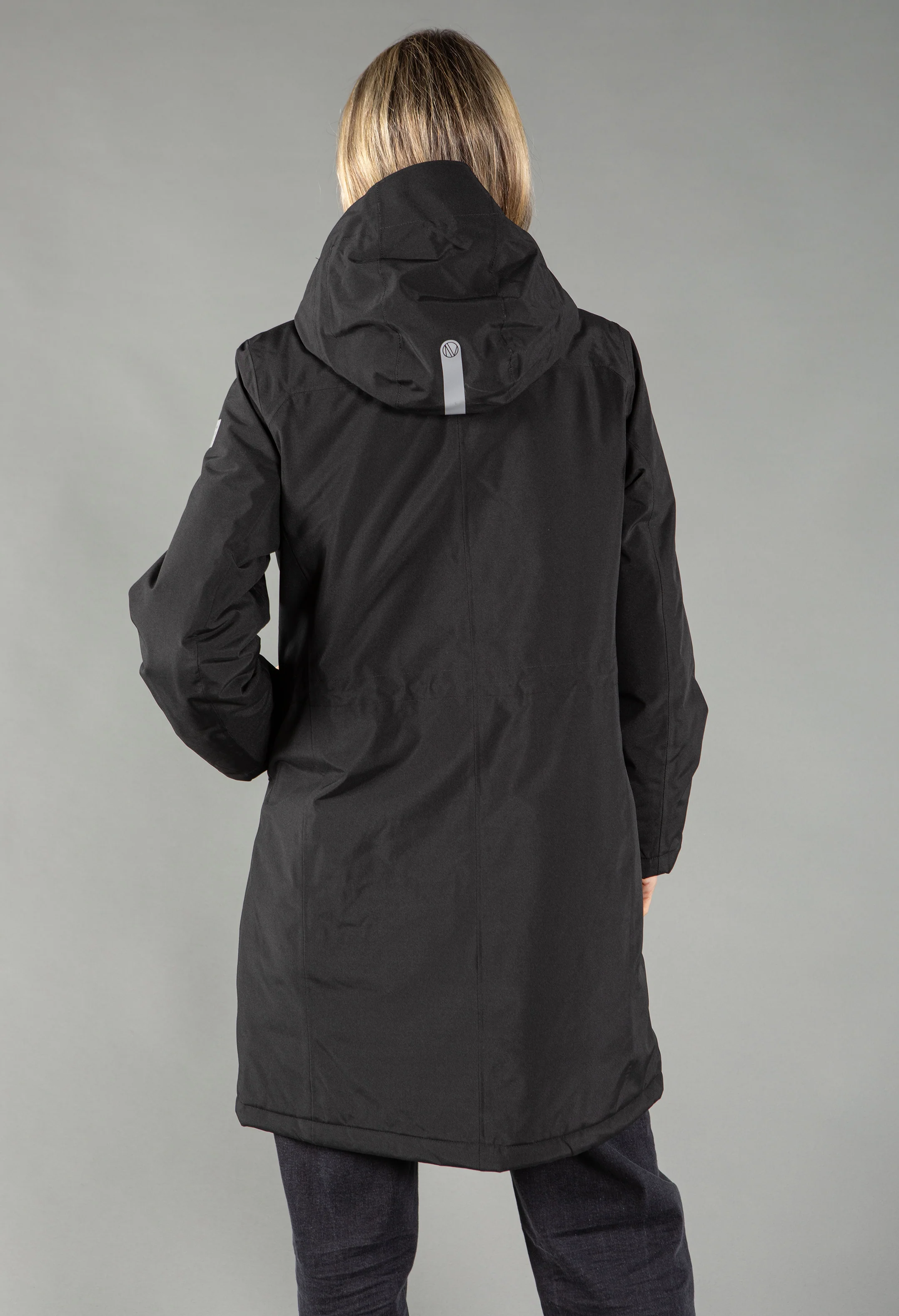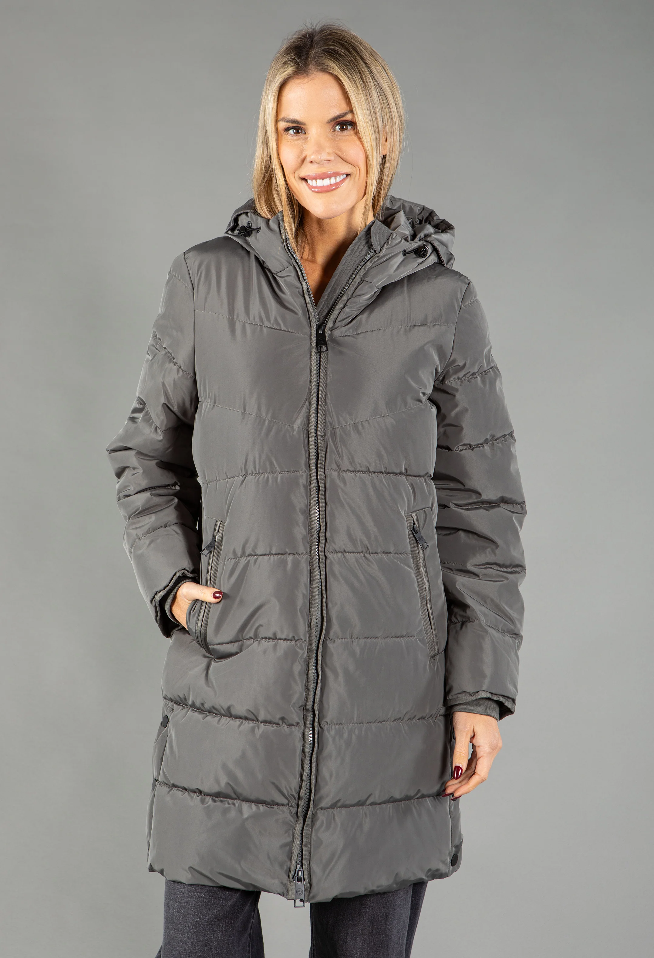 ZIP THROUGH CARDIGAN IN WHITE WITH NAVY STRIPES.