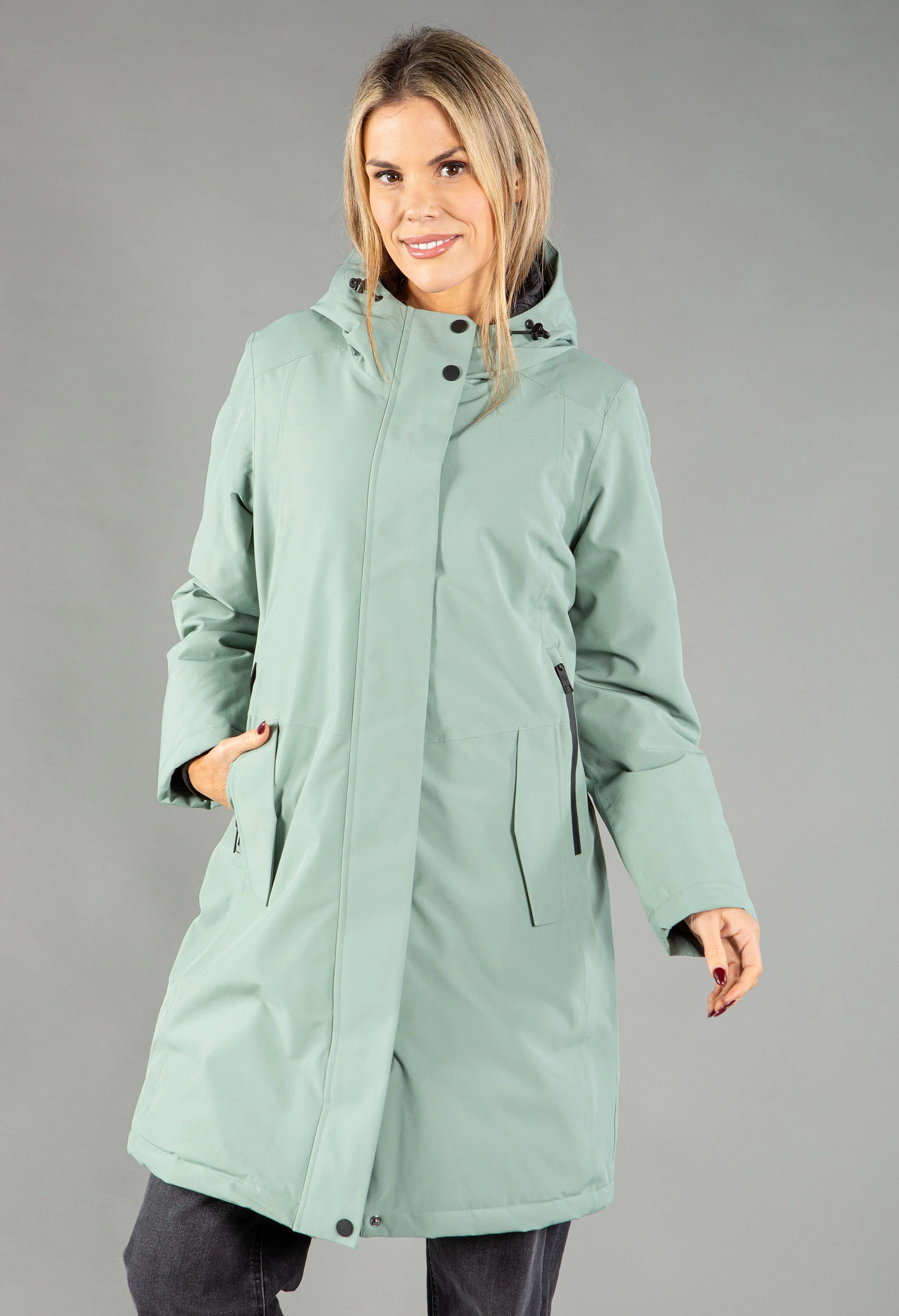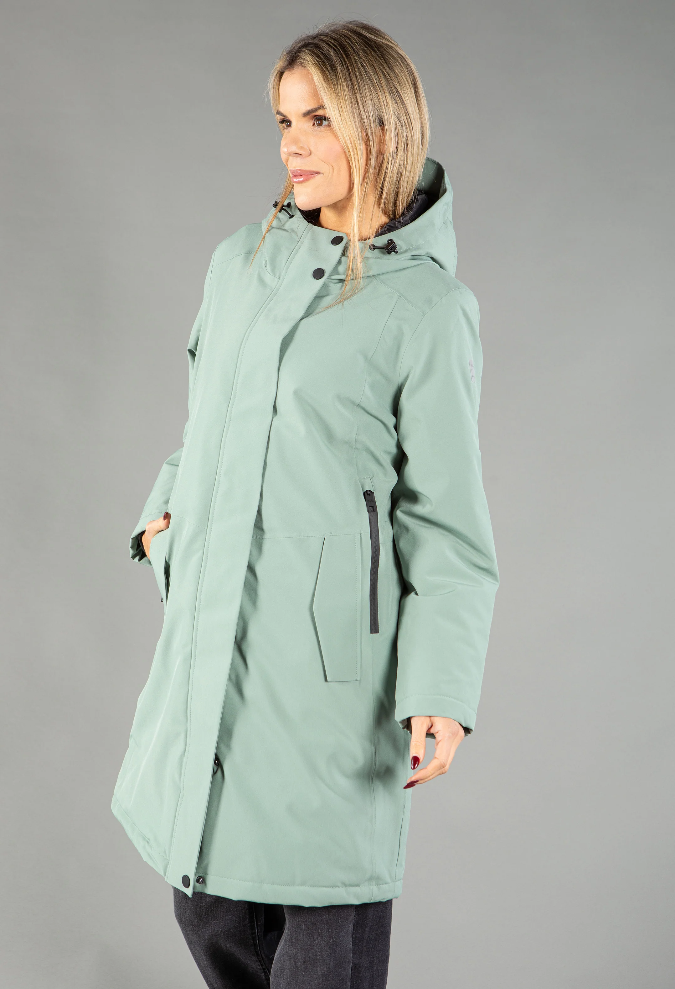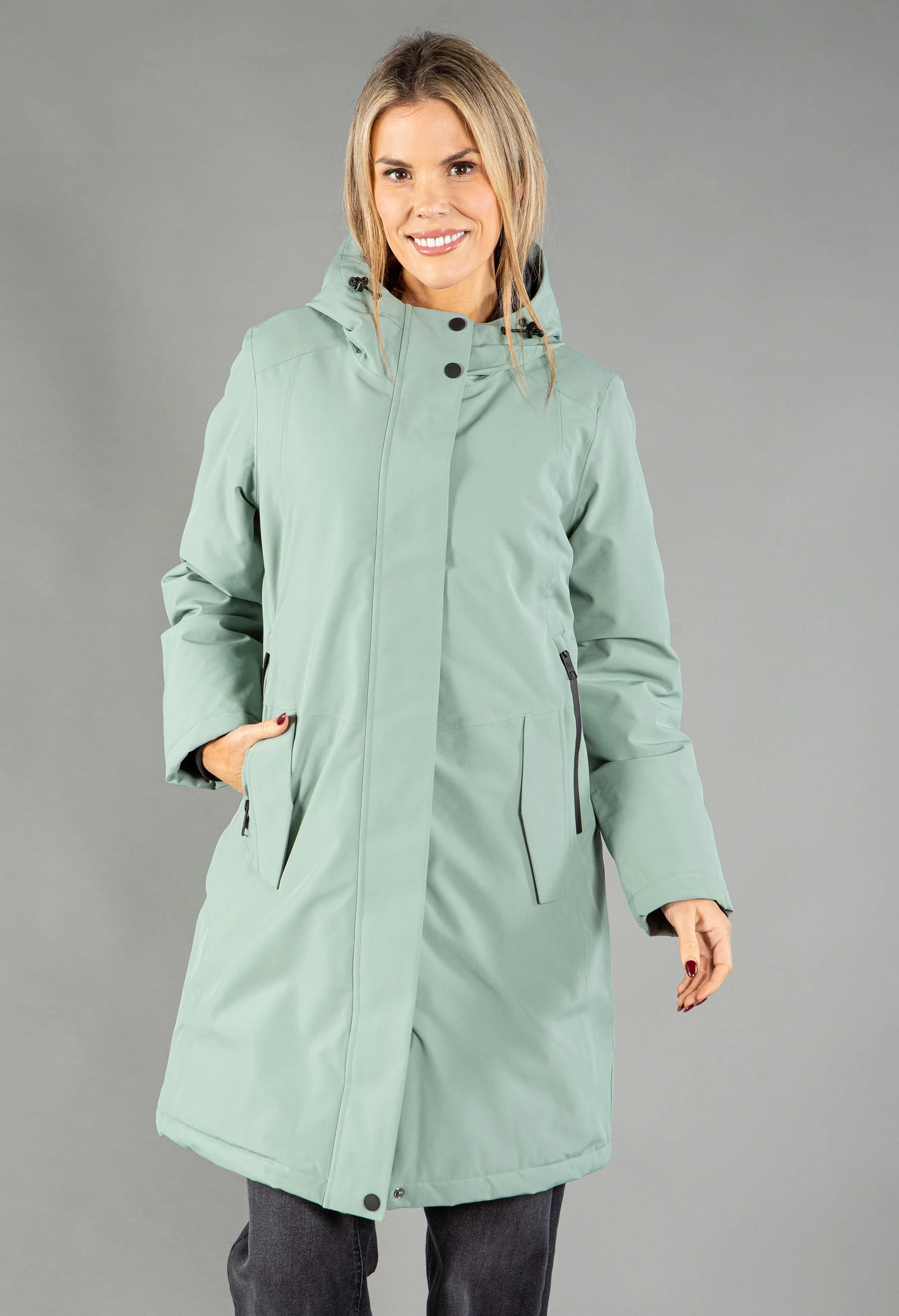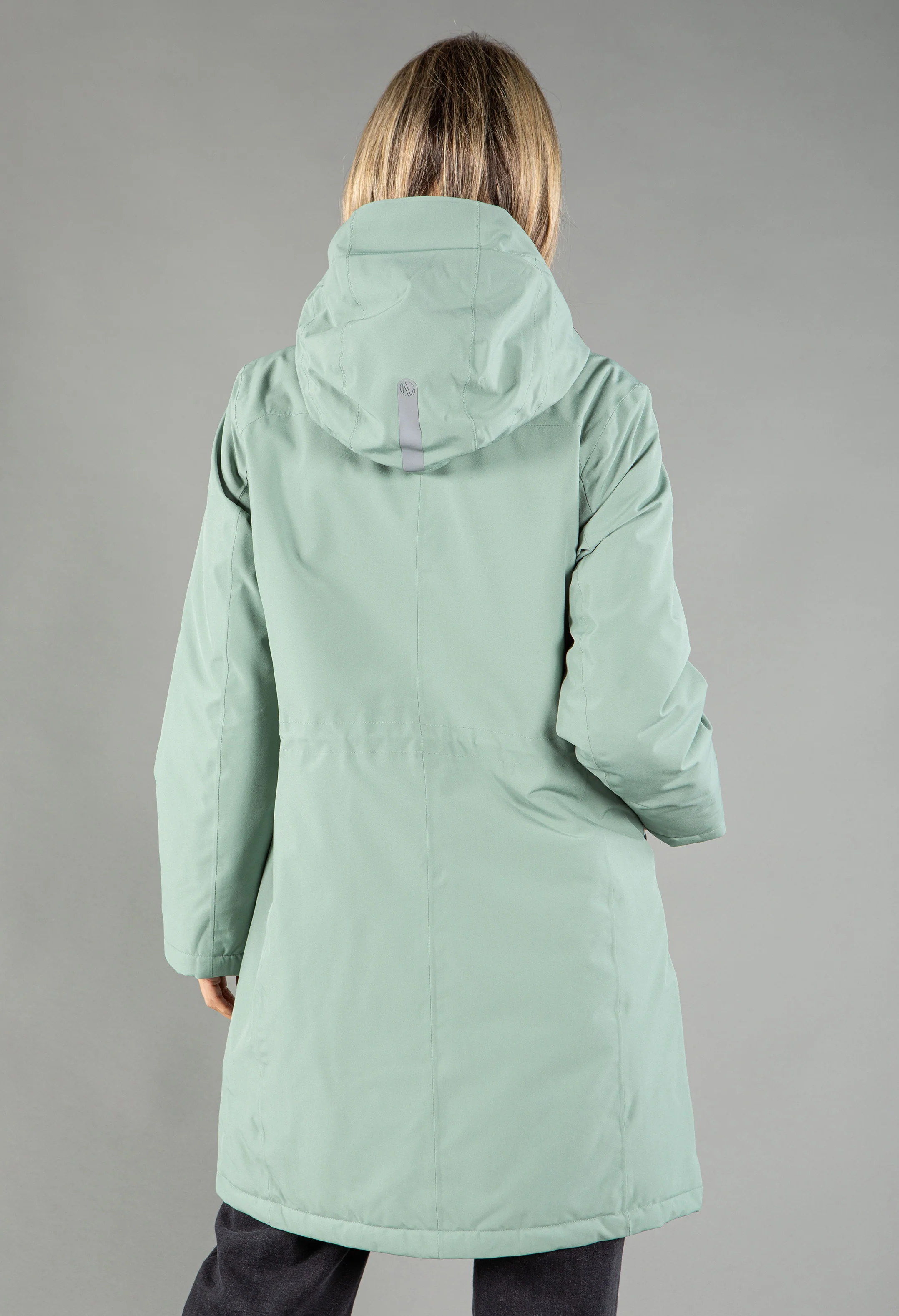 ZIP THROUGH CARDIGAN IN WHITE WITH NAVY STRIPES.