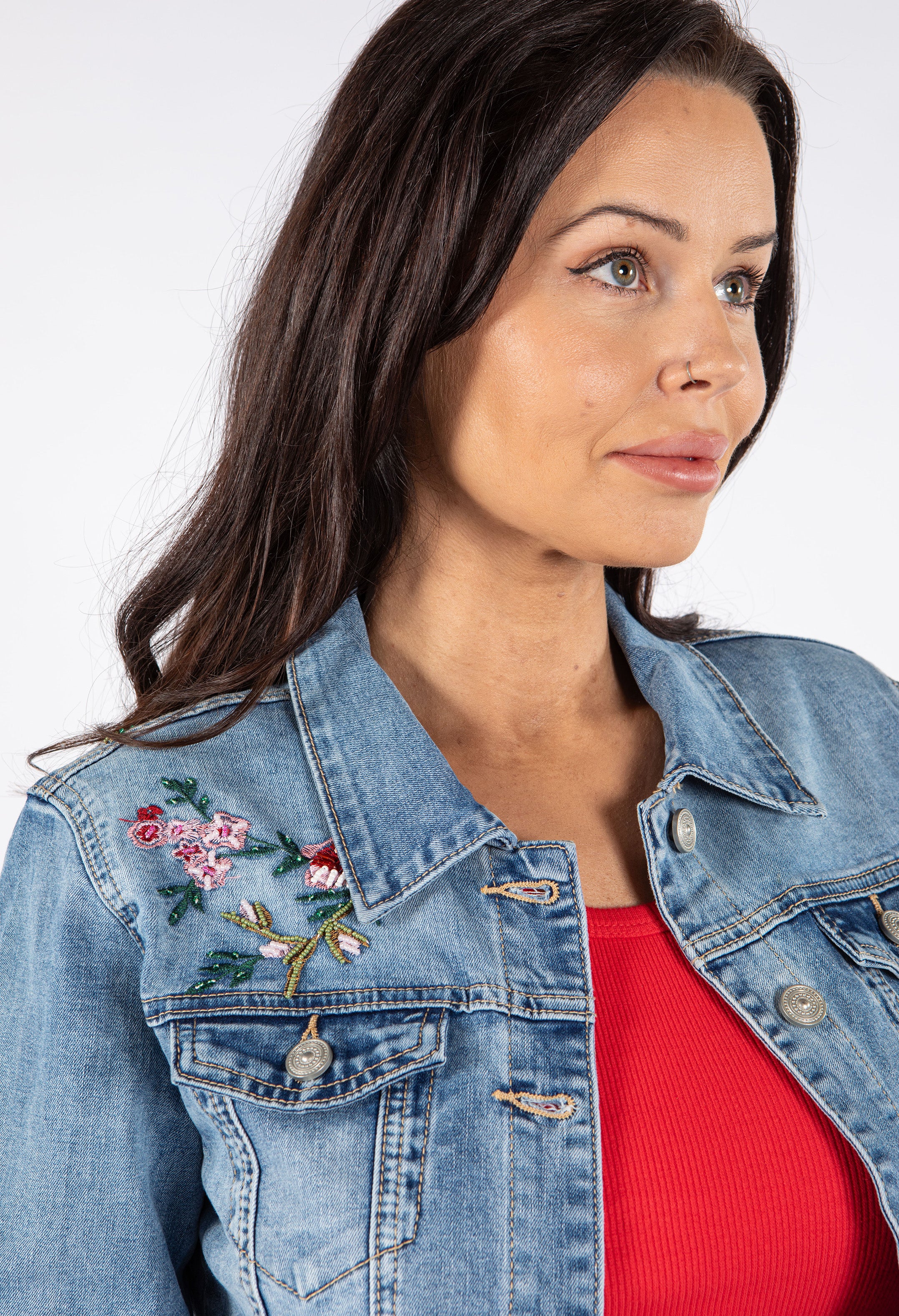 Denim Jacket with Floral Embroidery
