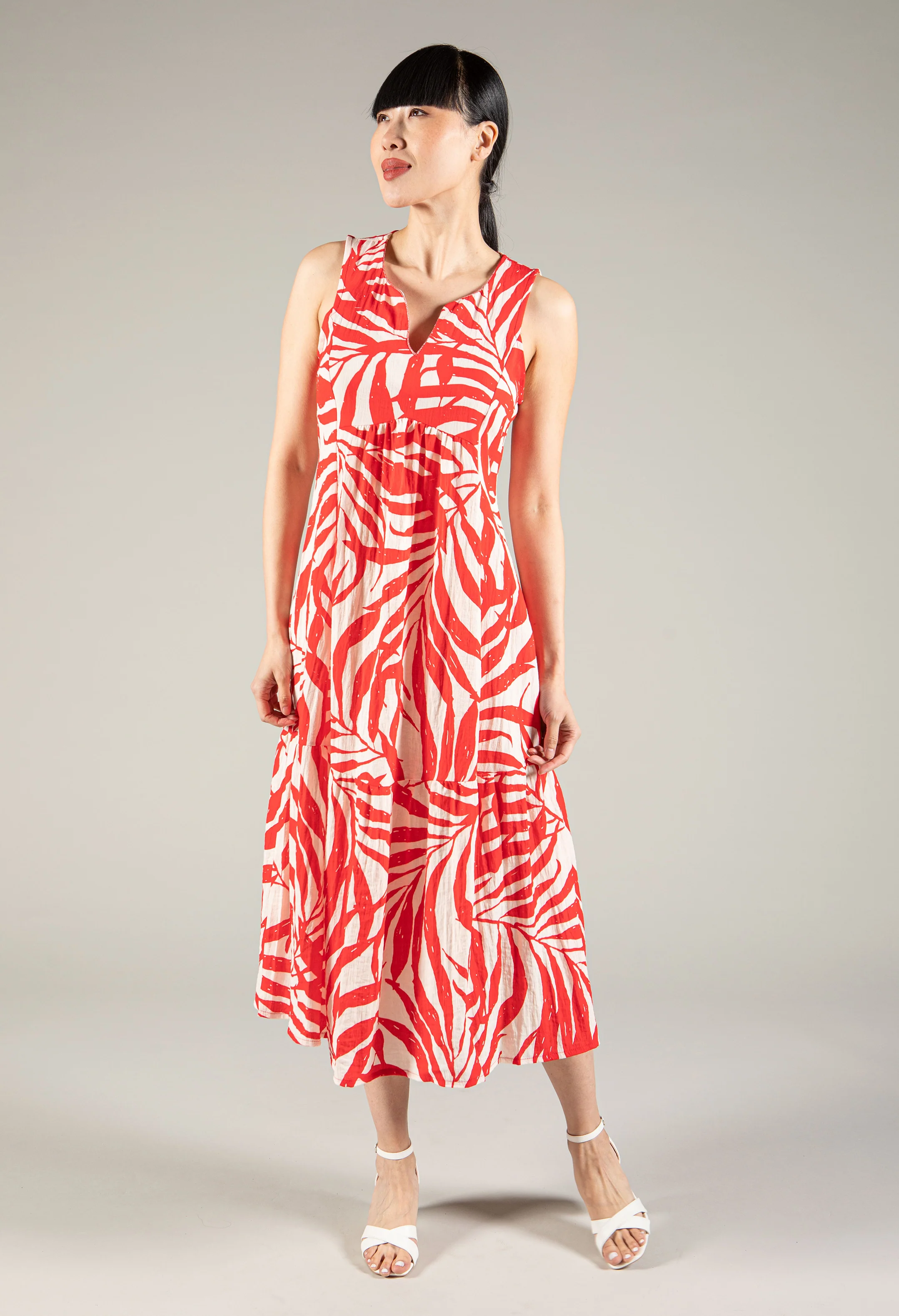 Leaf Print Midi Dress