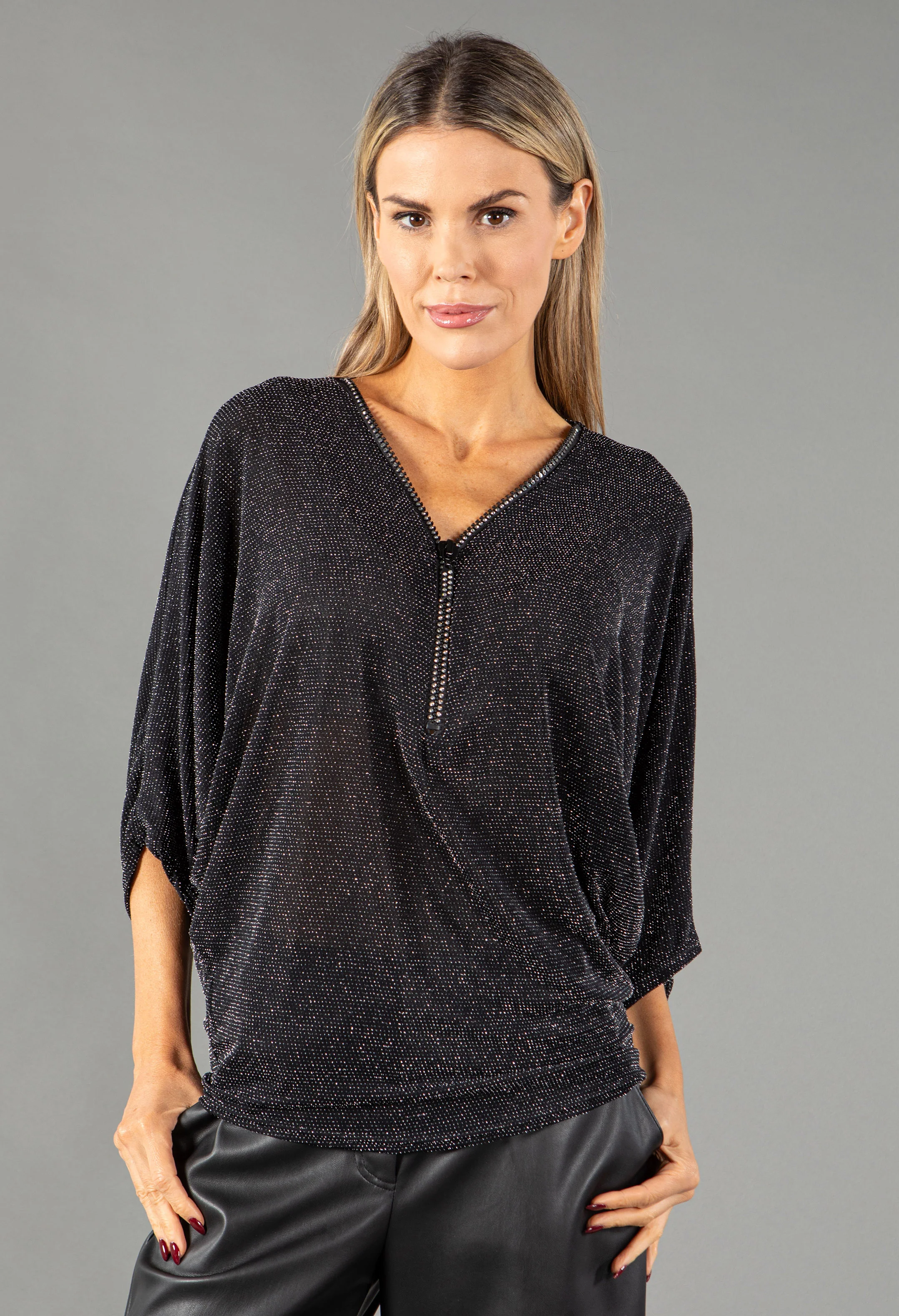 Zip Detail Lurex Top
