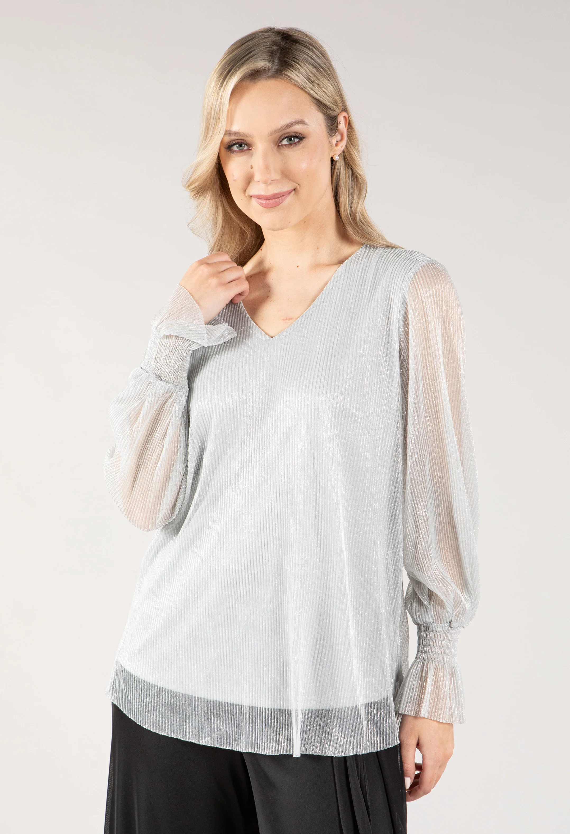 V Neckline Plisse Top