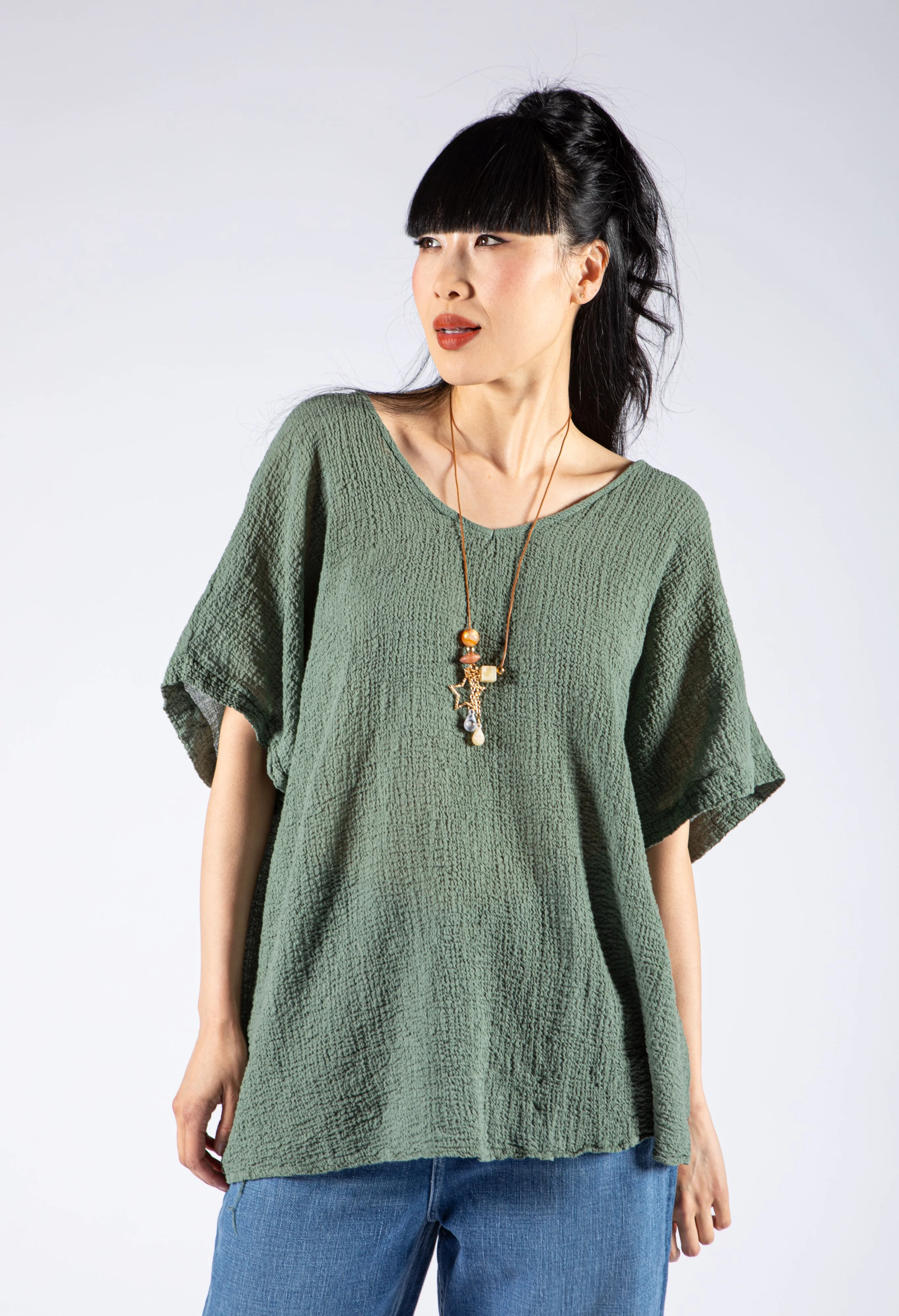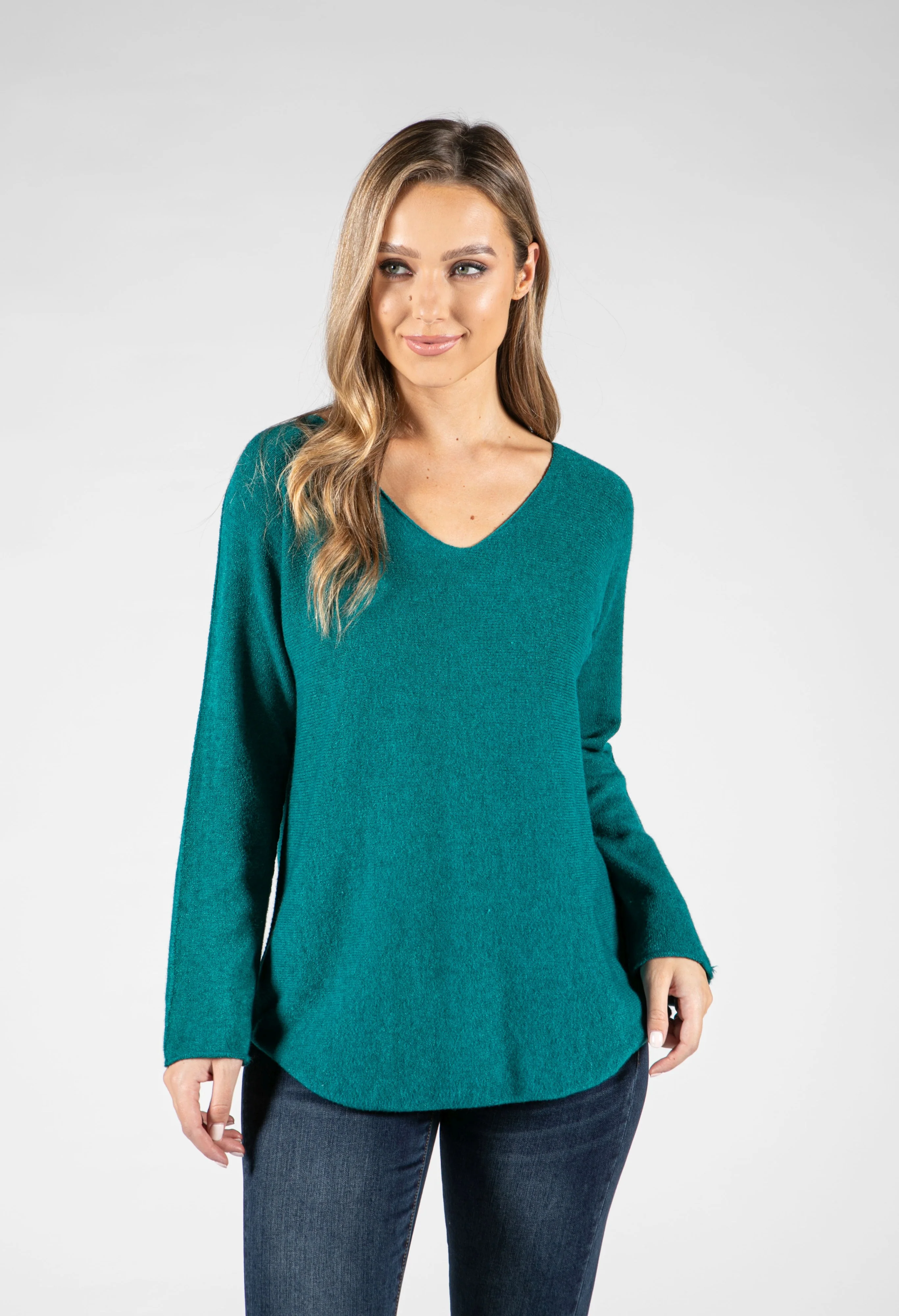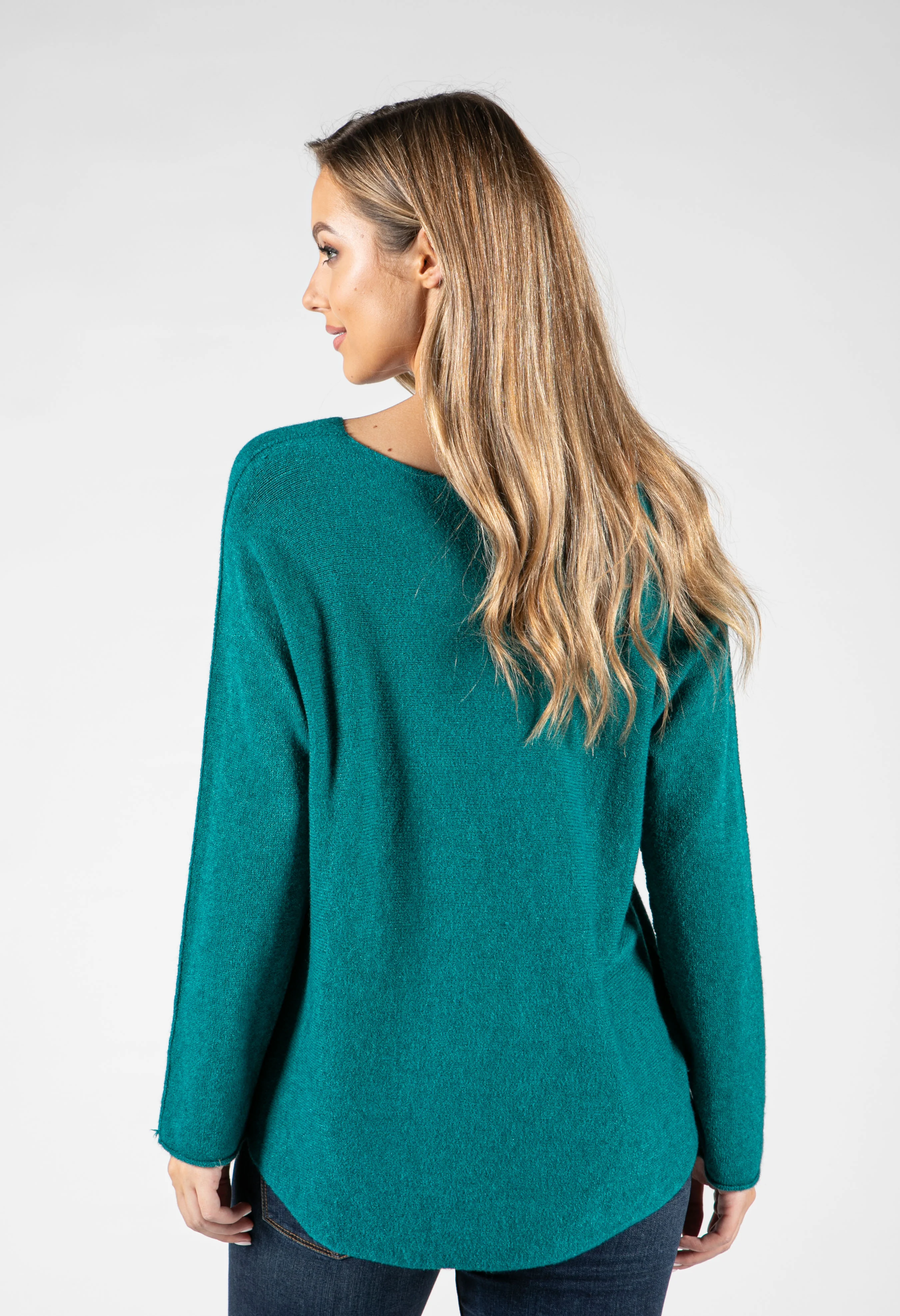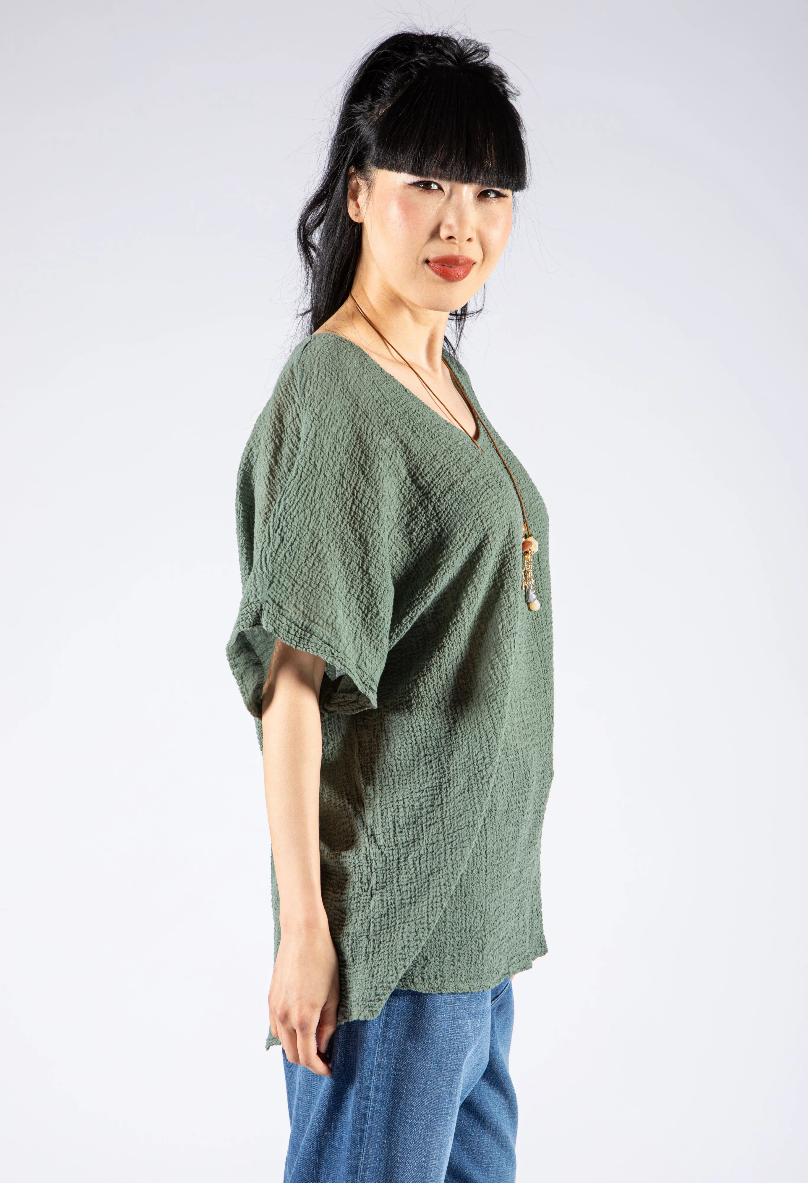 Dot Print Pleated V-Neck Dress in Teal & Black