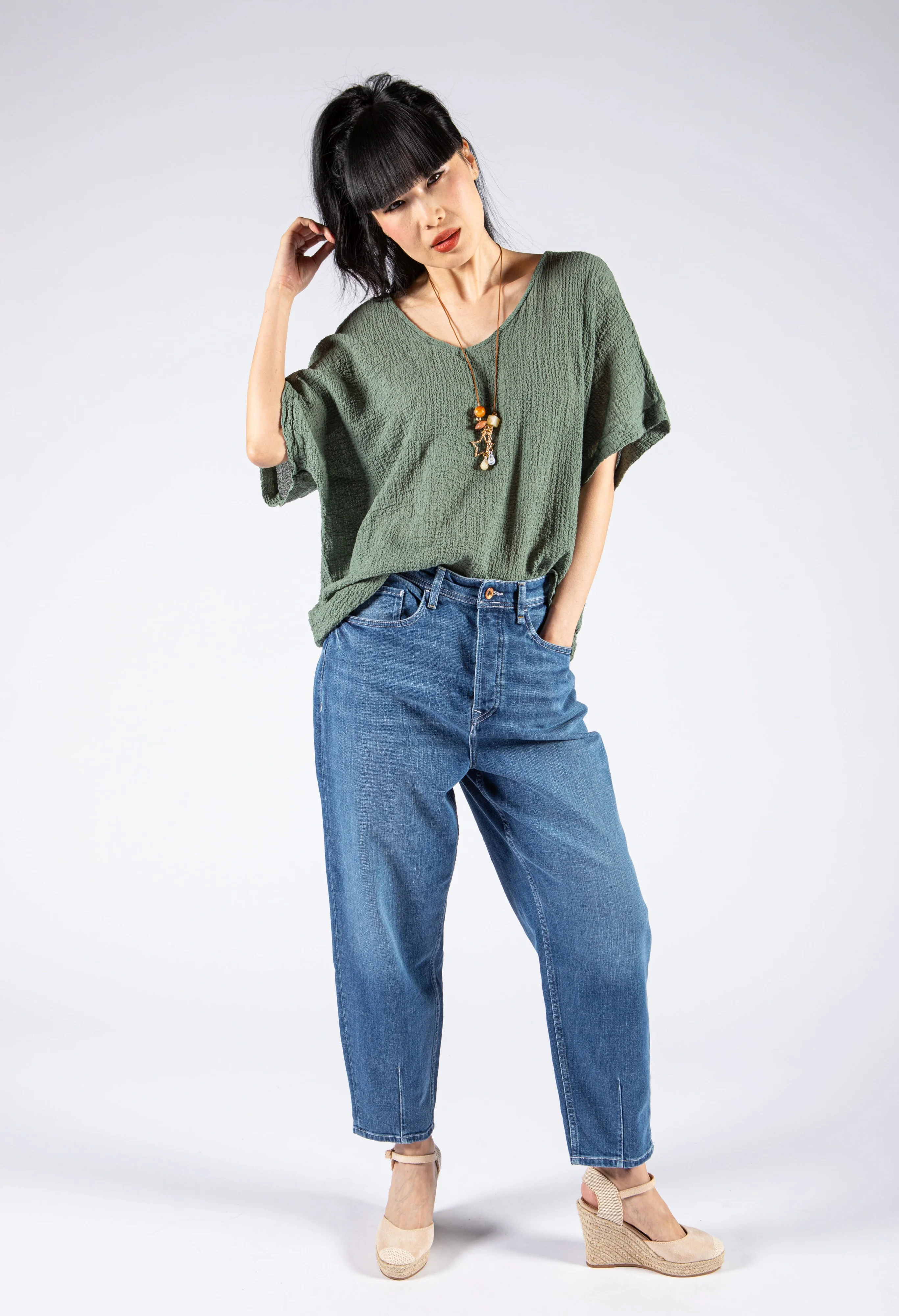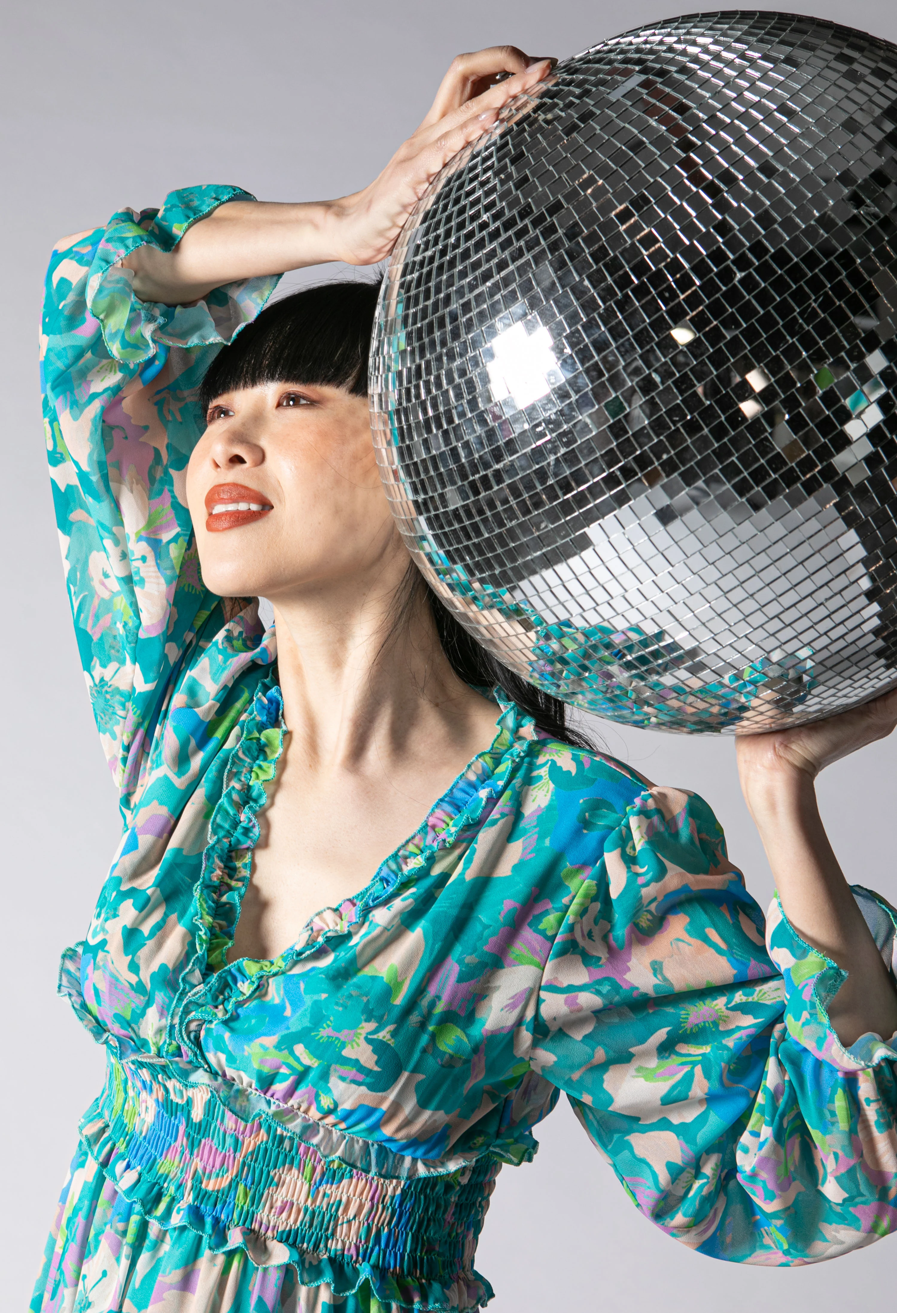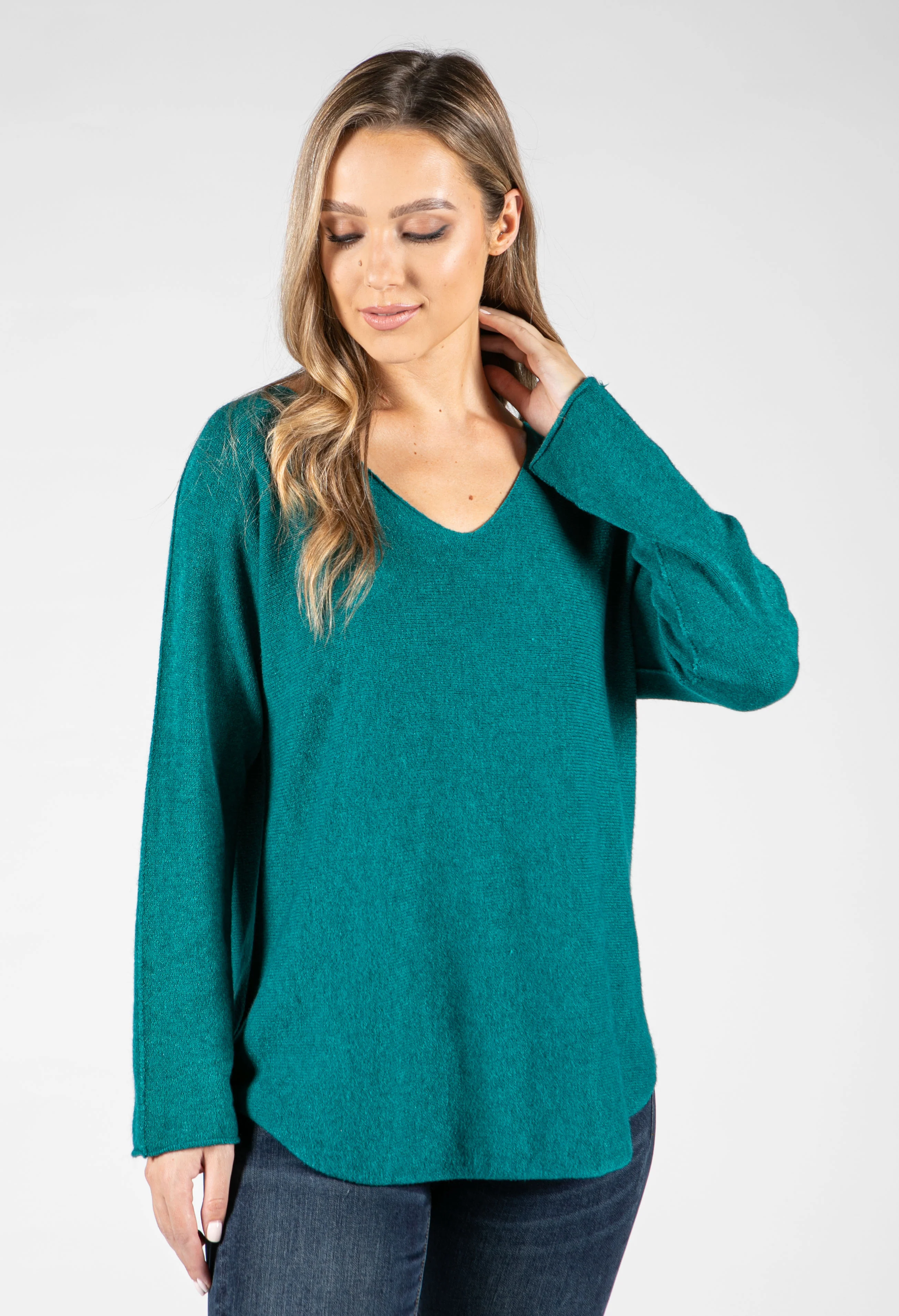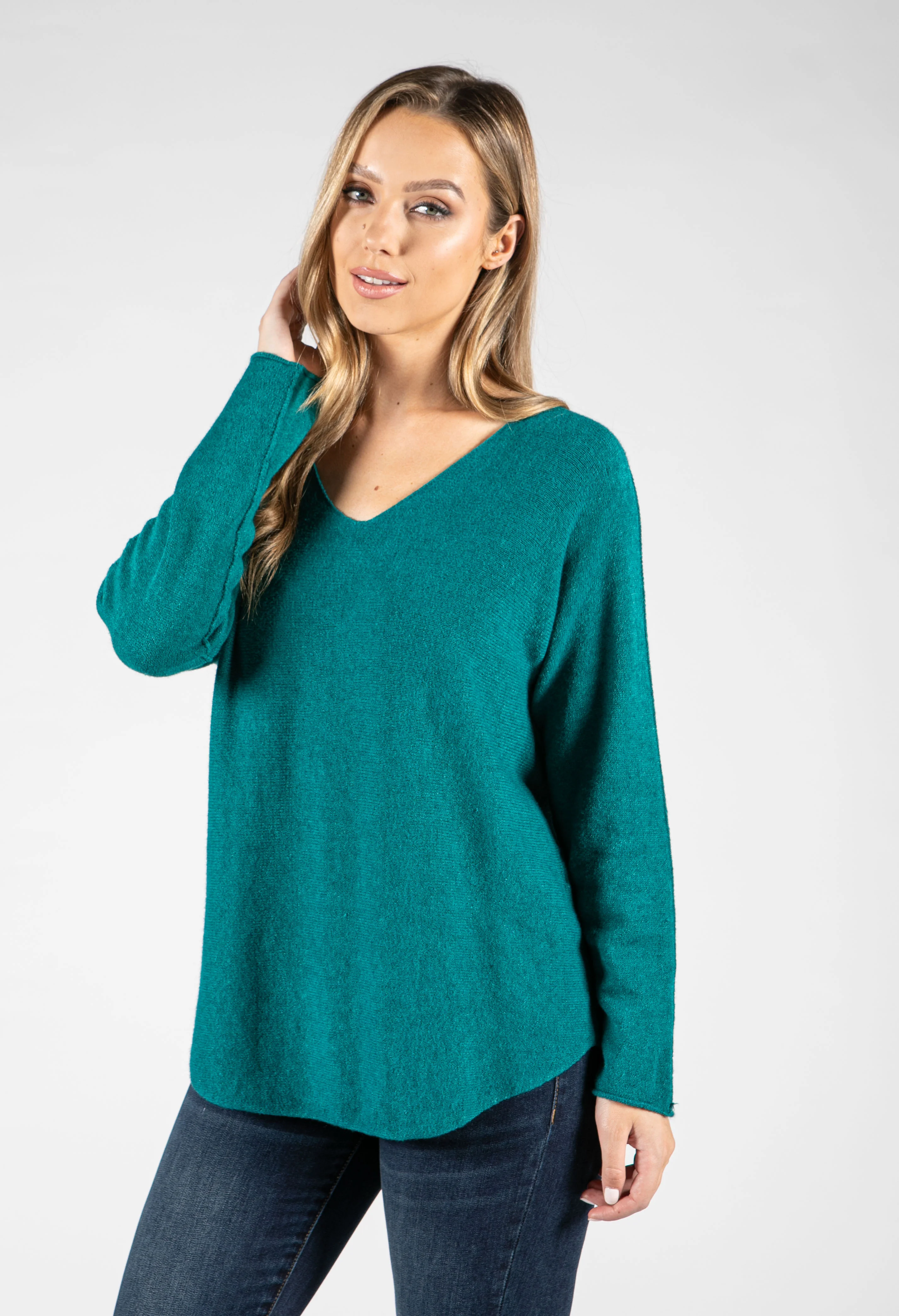 Dot Print Pleated V-Neck Dress in Teal & Black