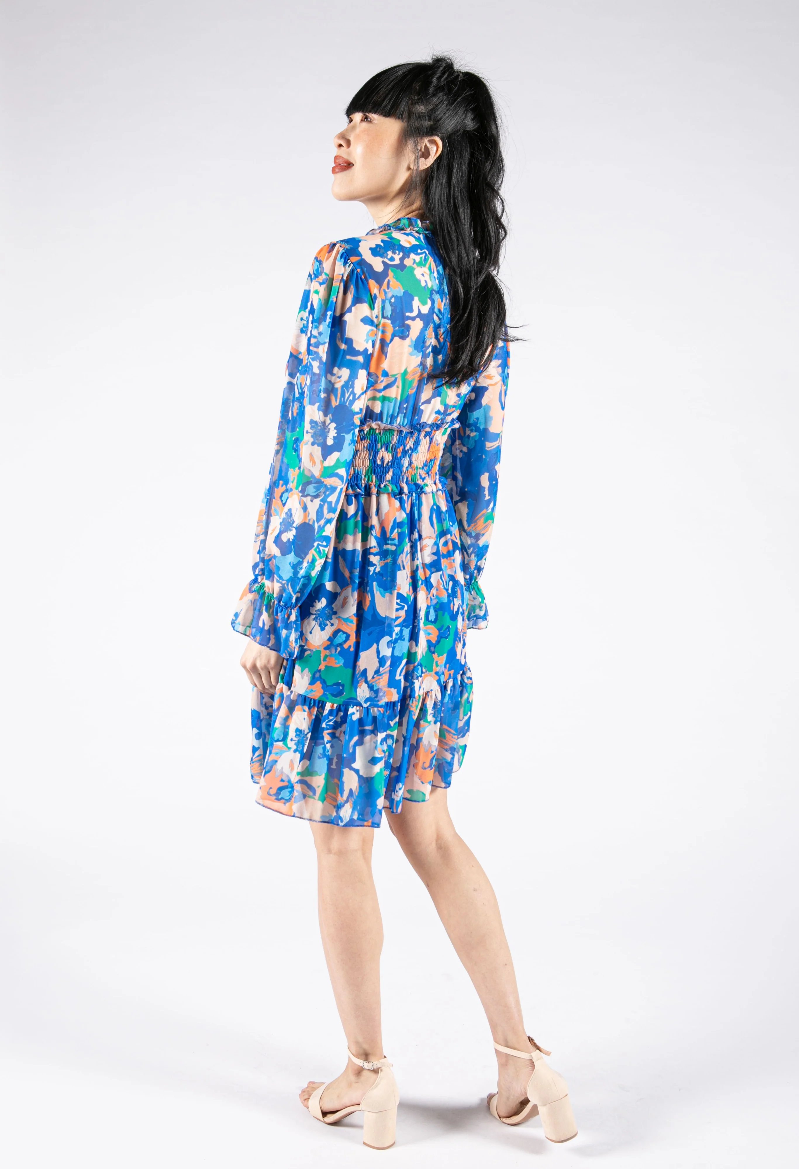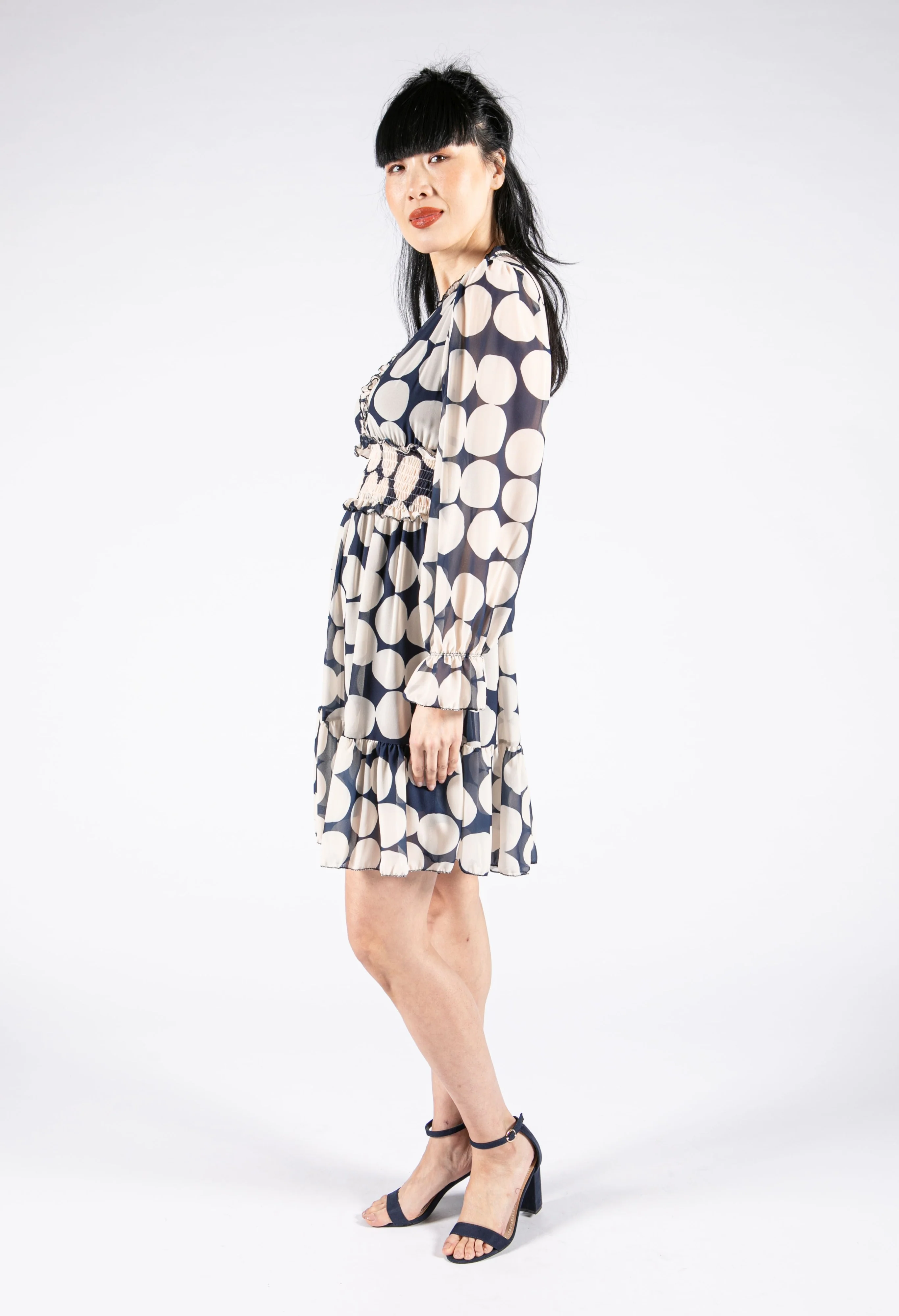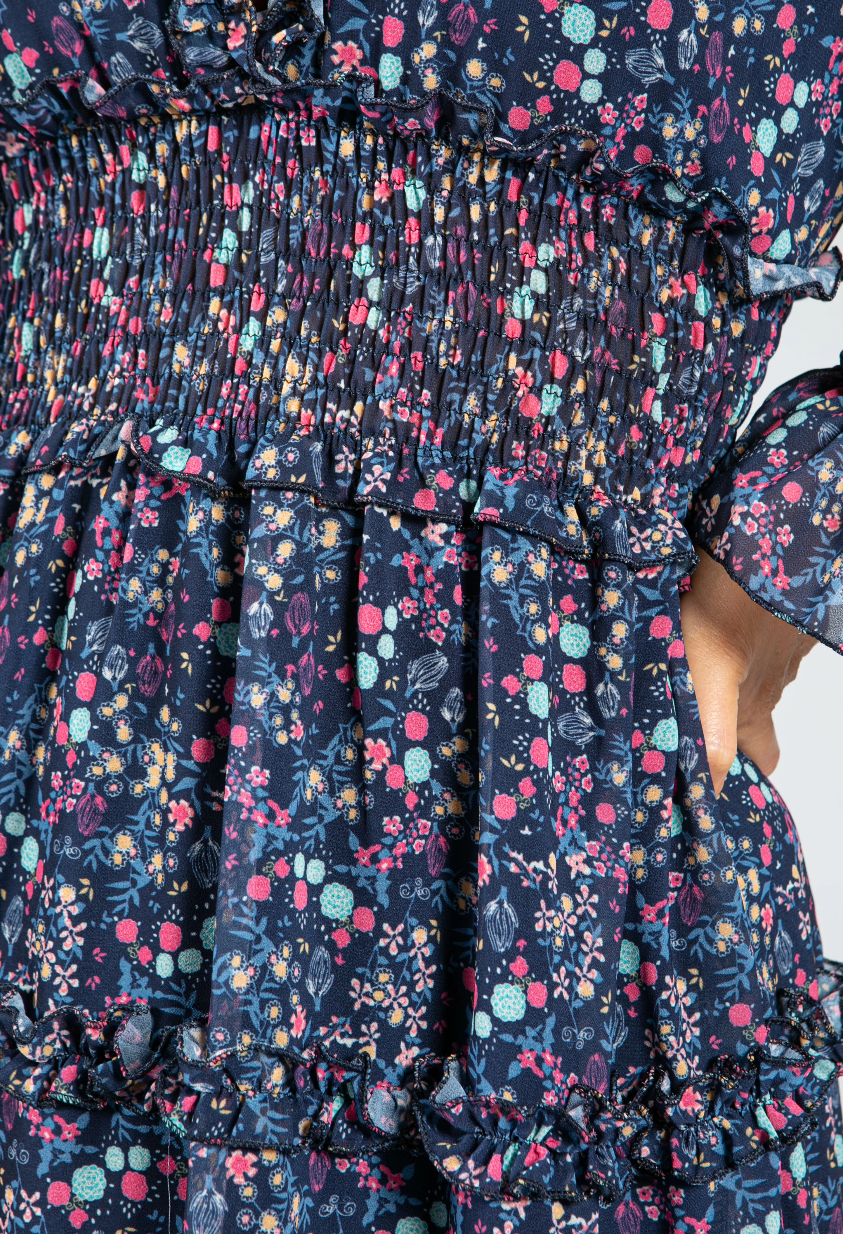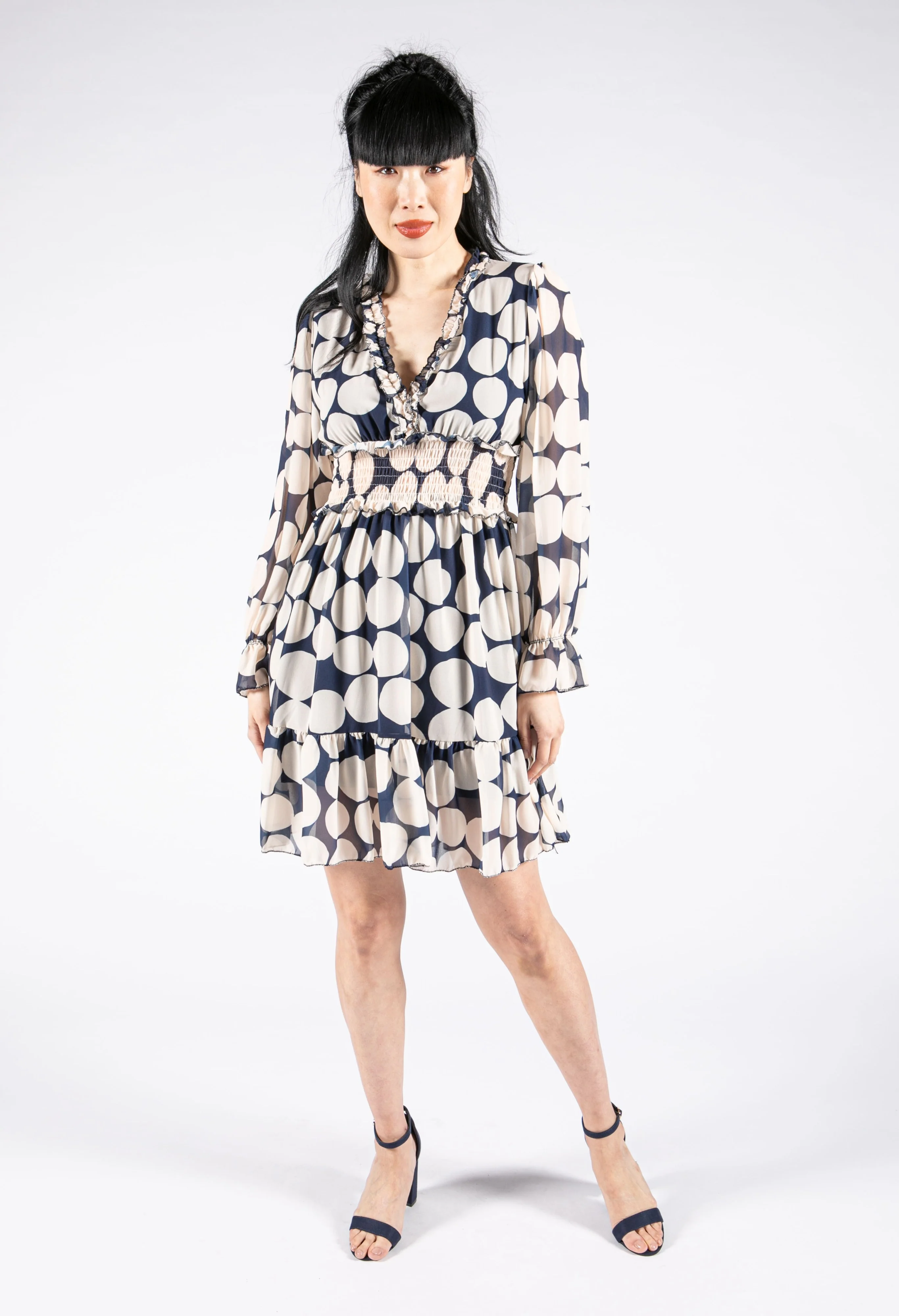 NAVY RUFFLE DRESS WITH LONG SLEEVES