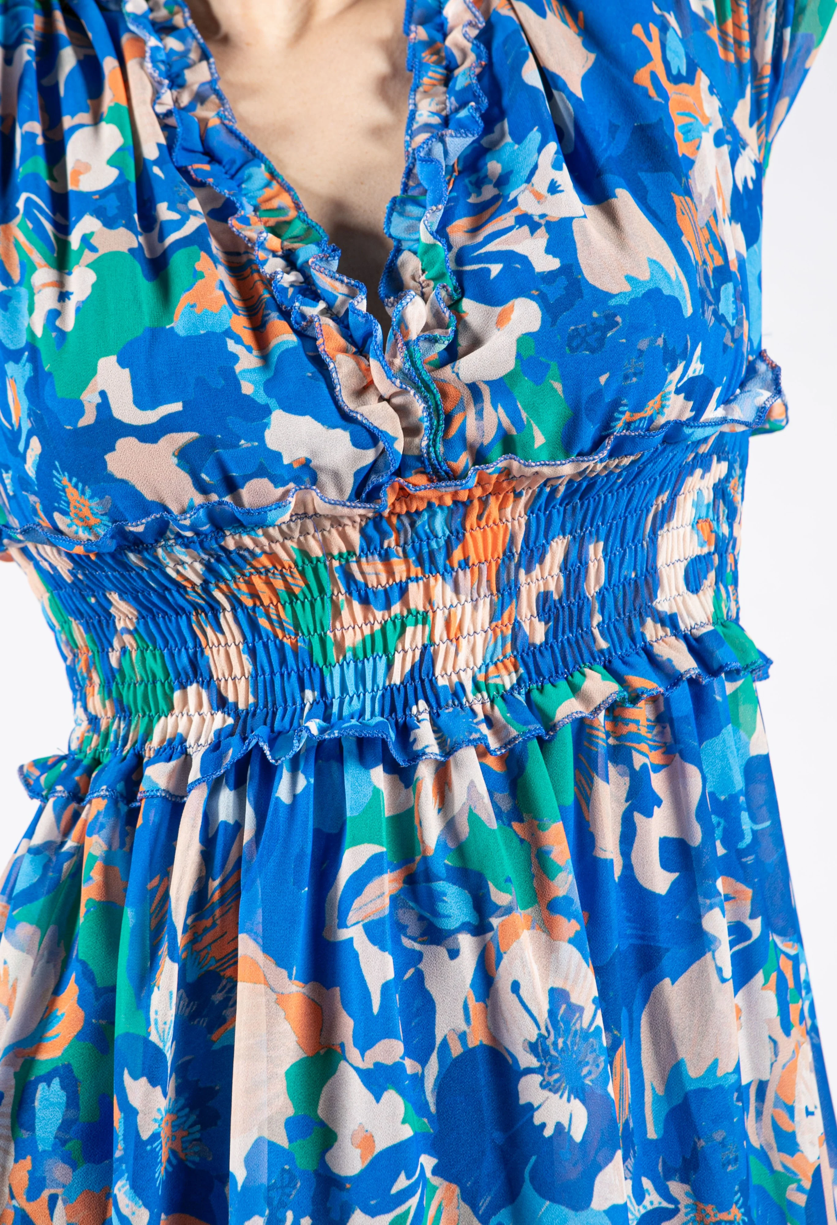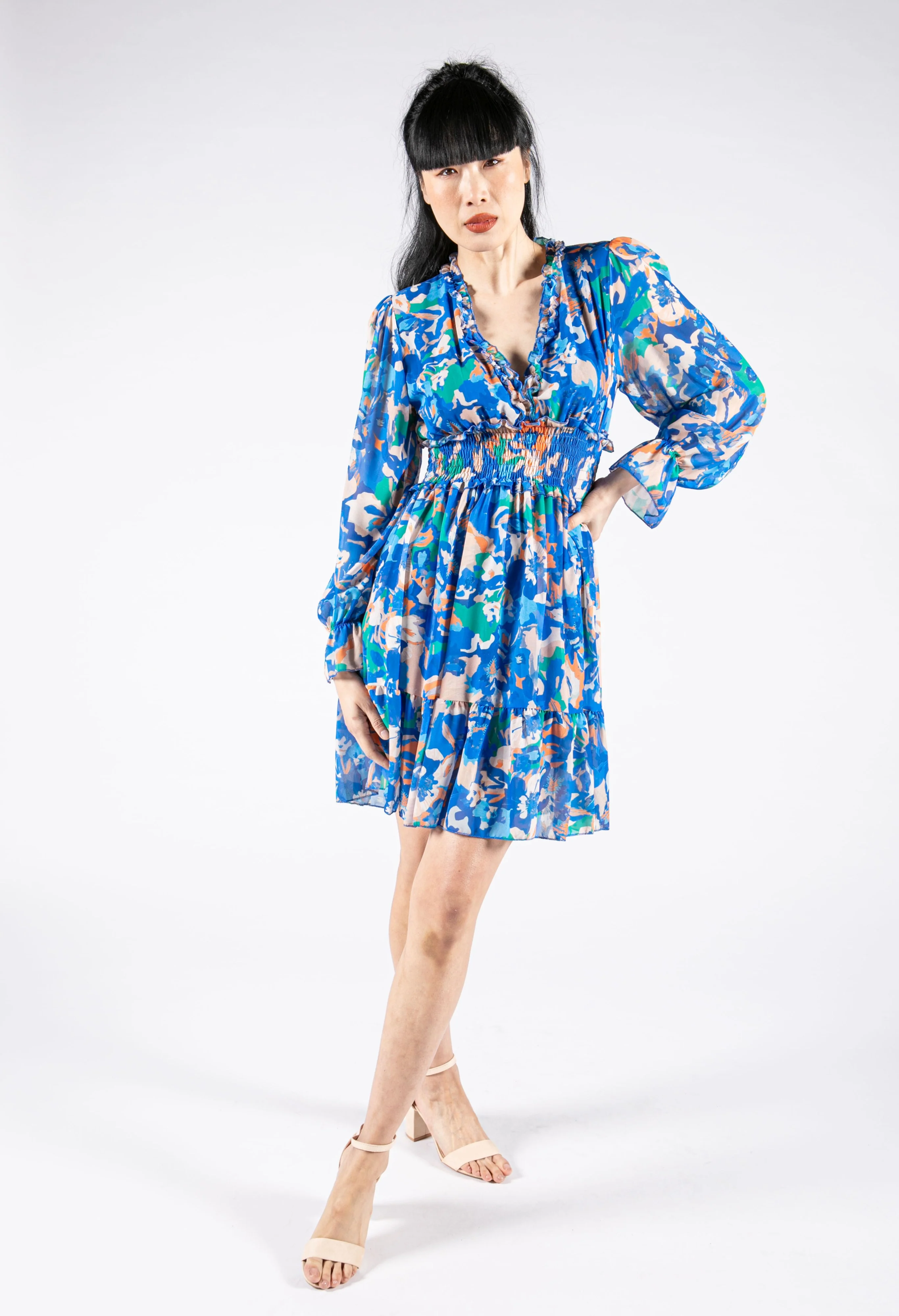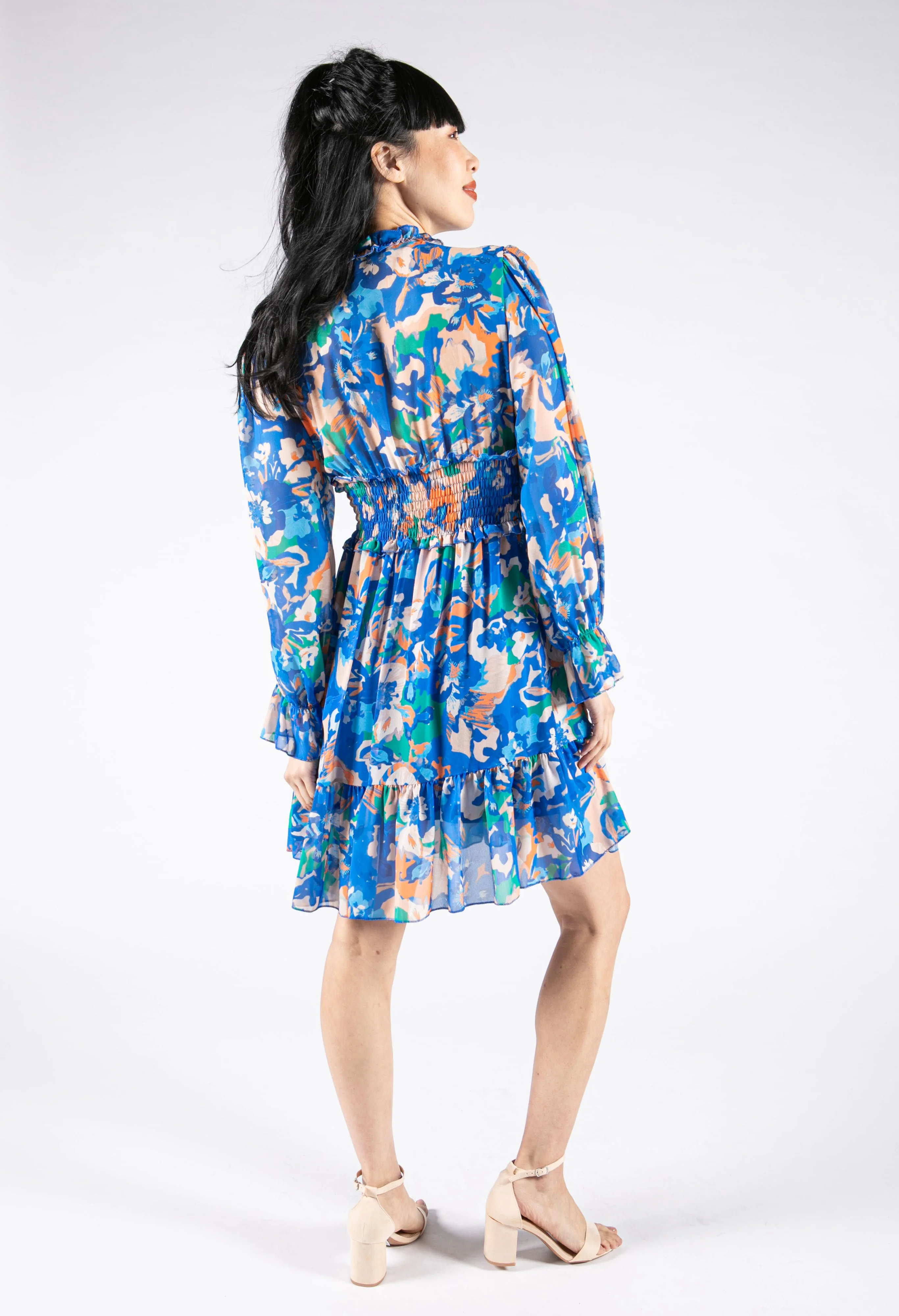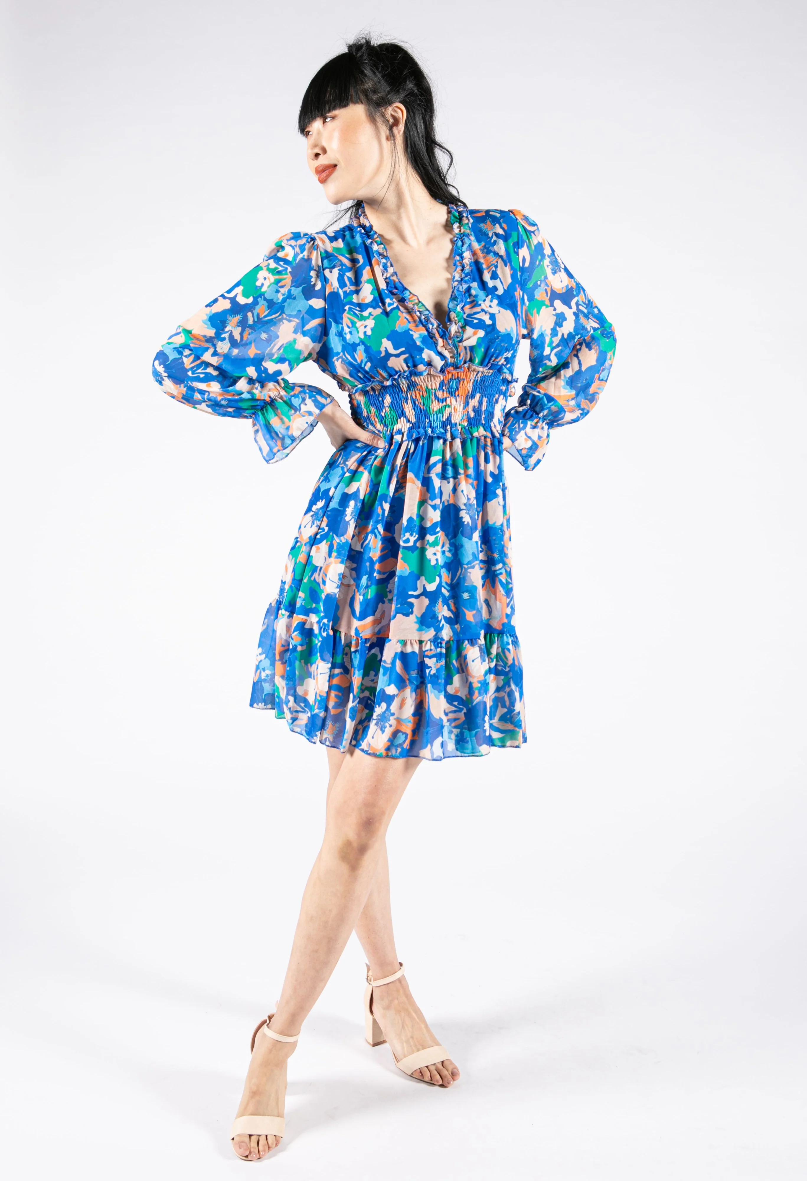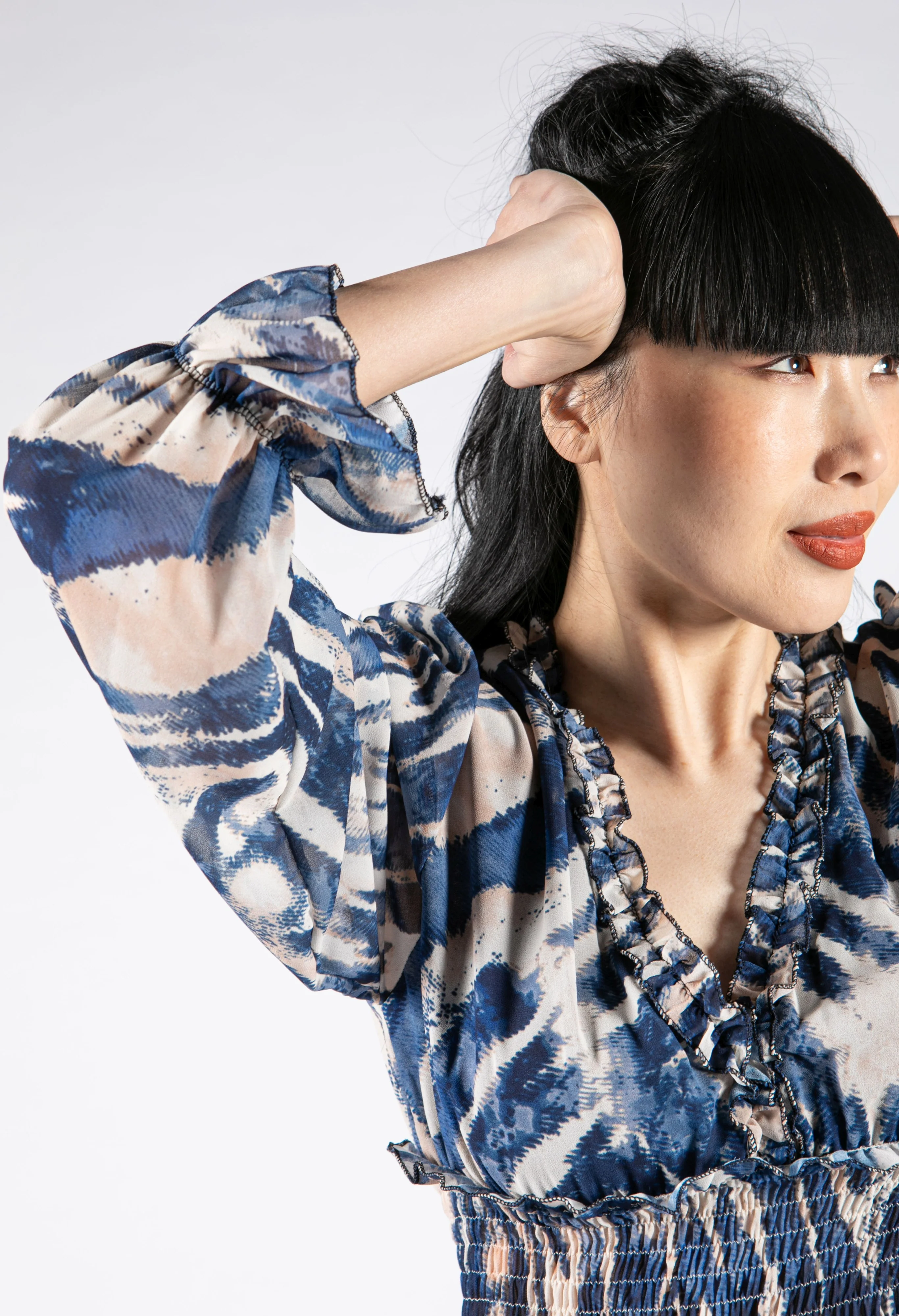 NAVY RUFFLE DRESS WITH LONG SLEEVES