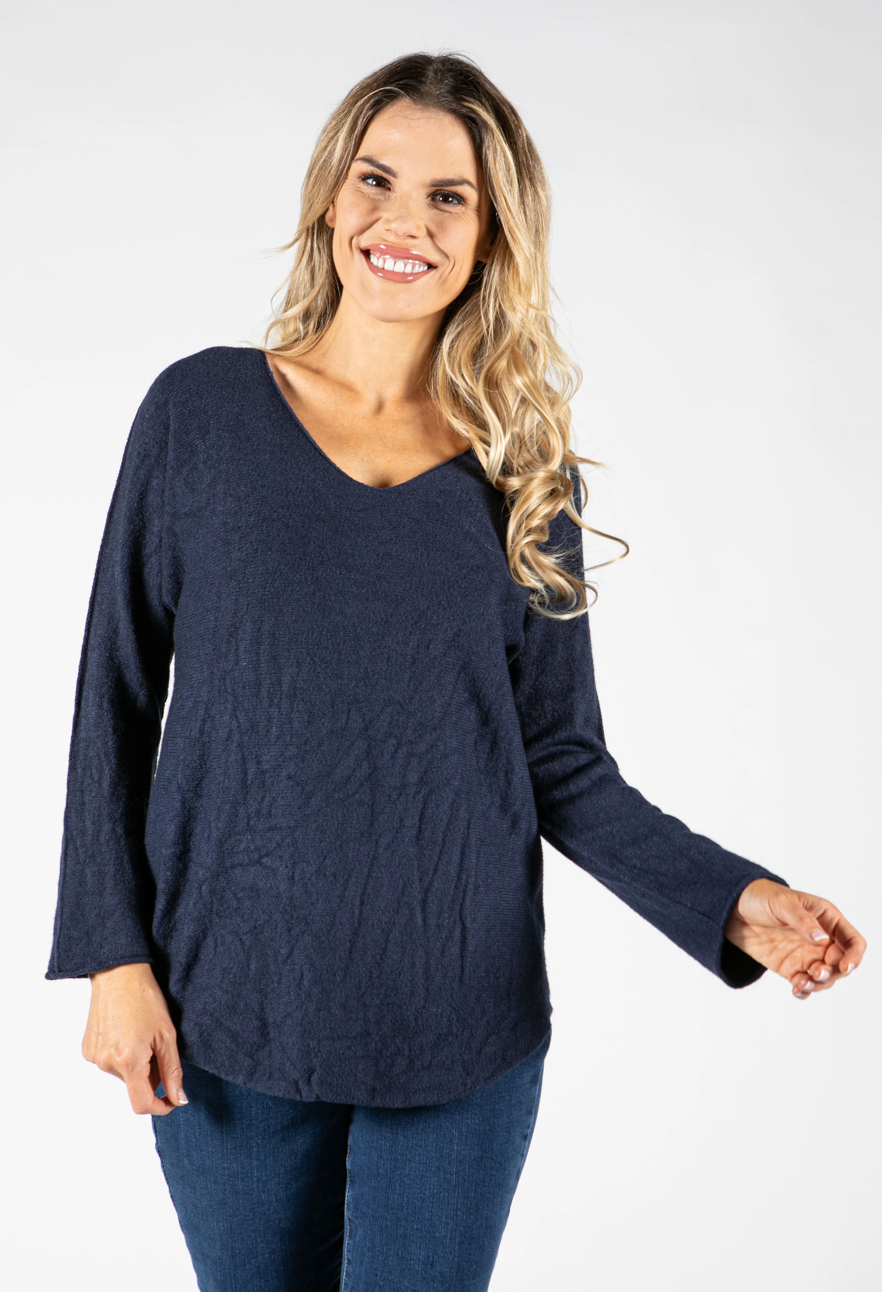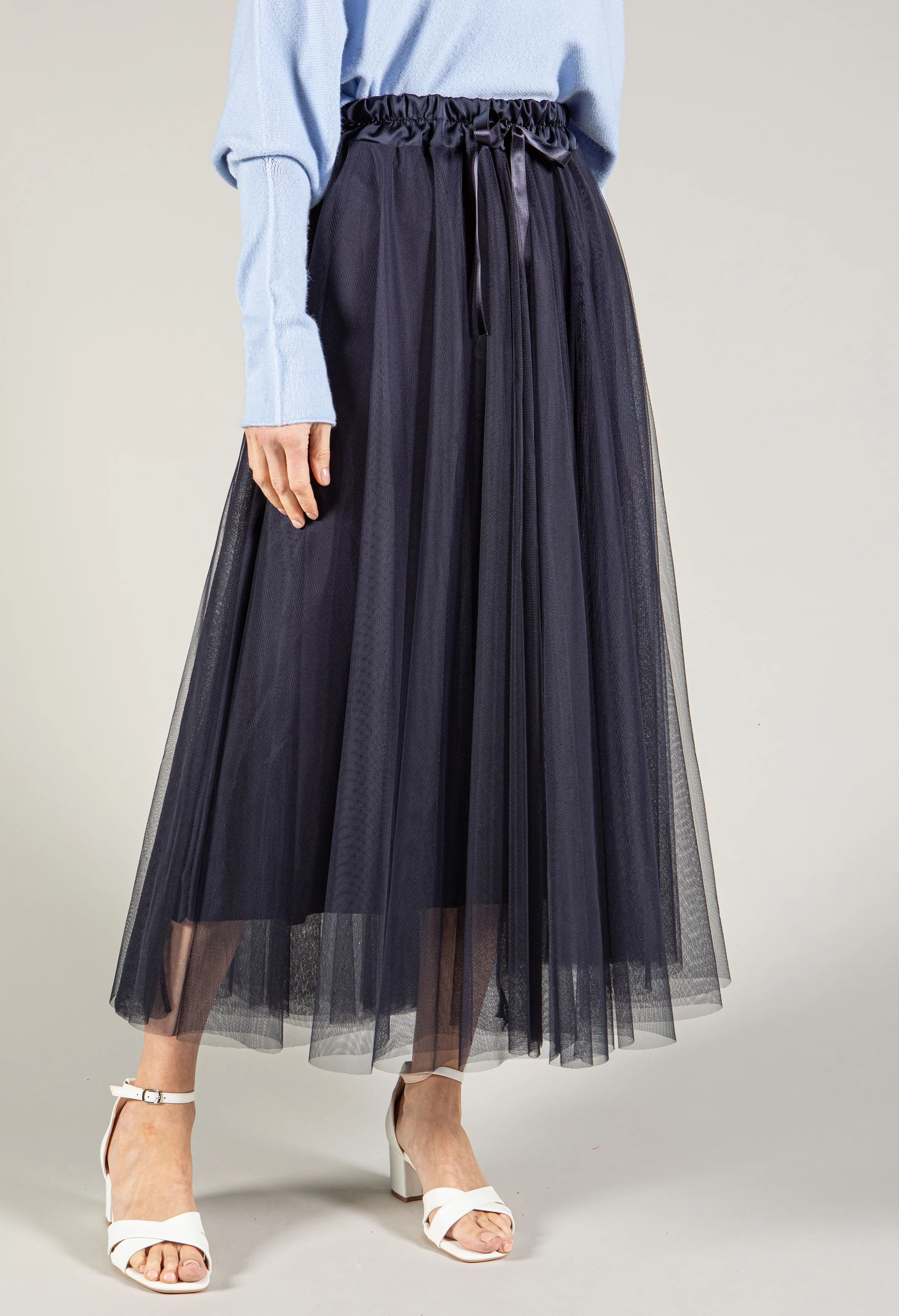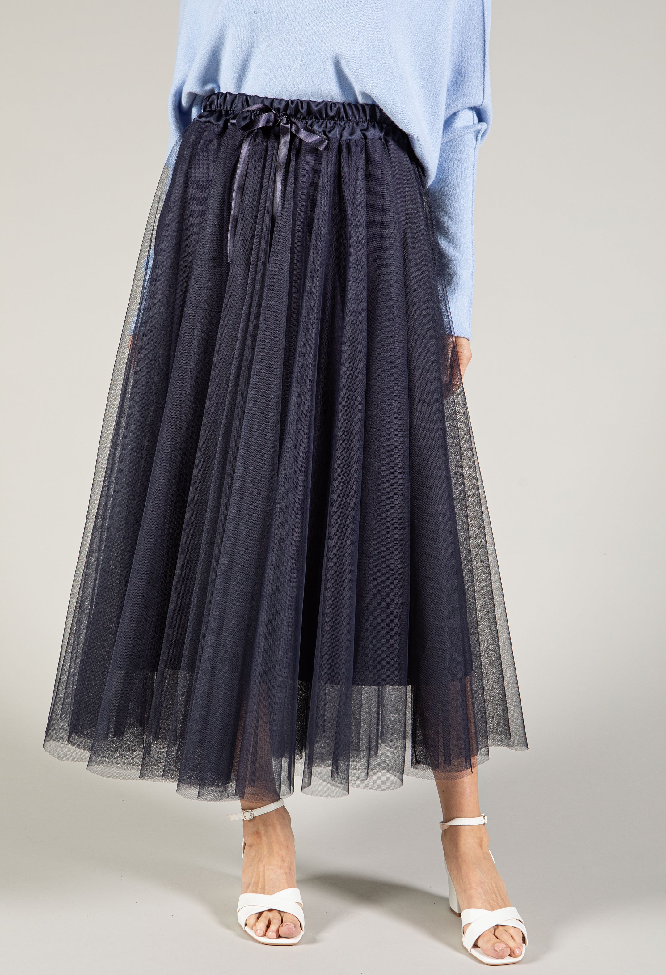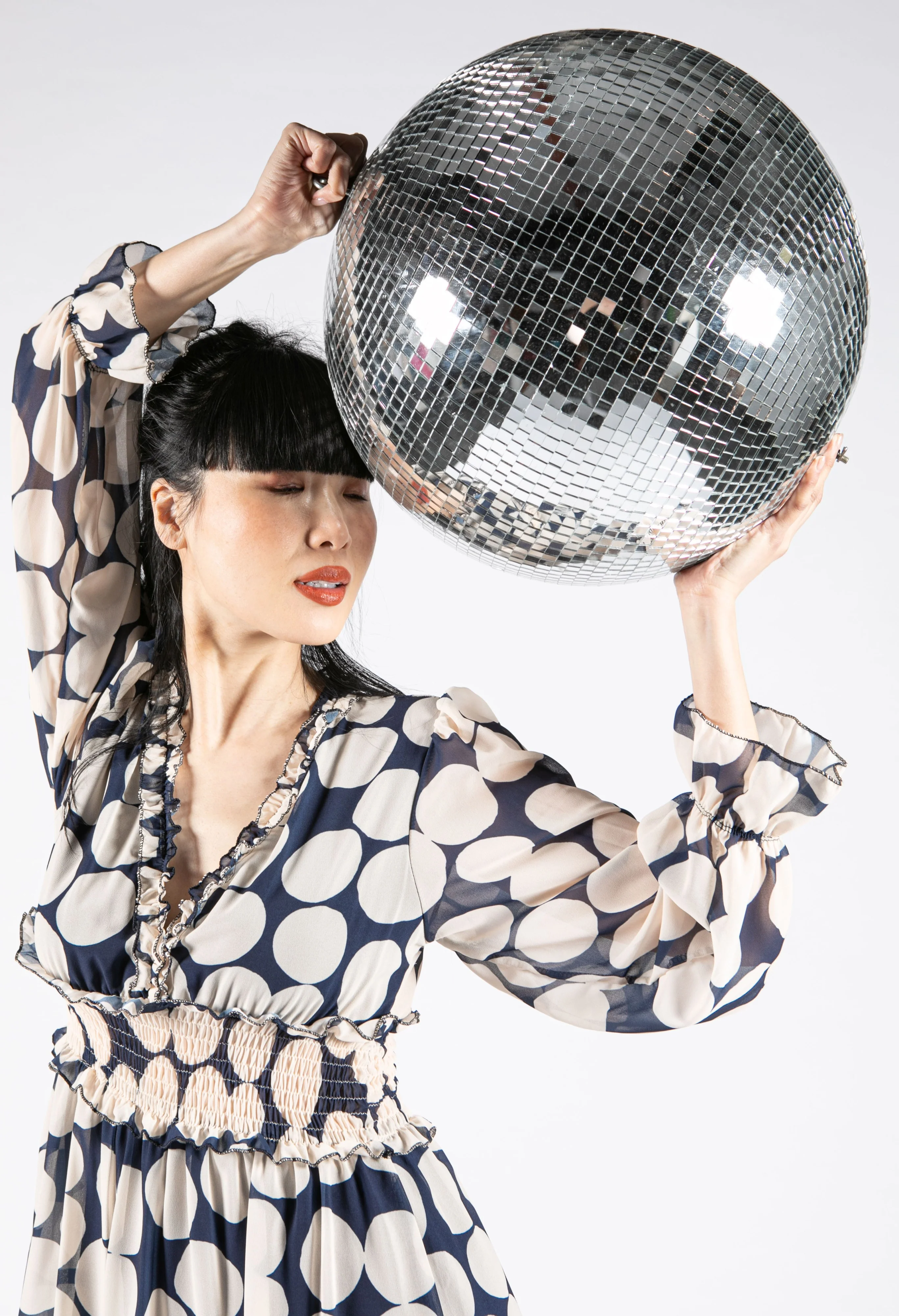 NAVY RUFFLE DRESS WITH LONG SLEEVES