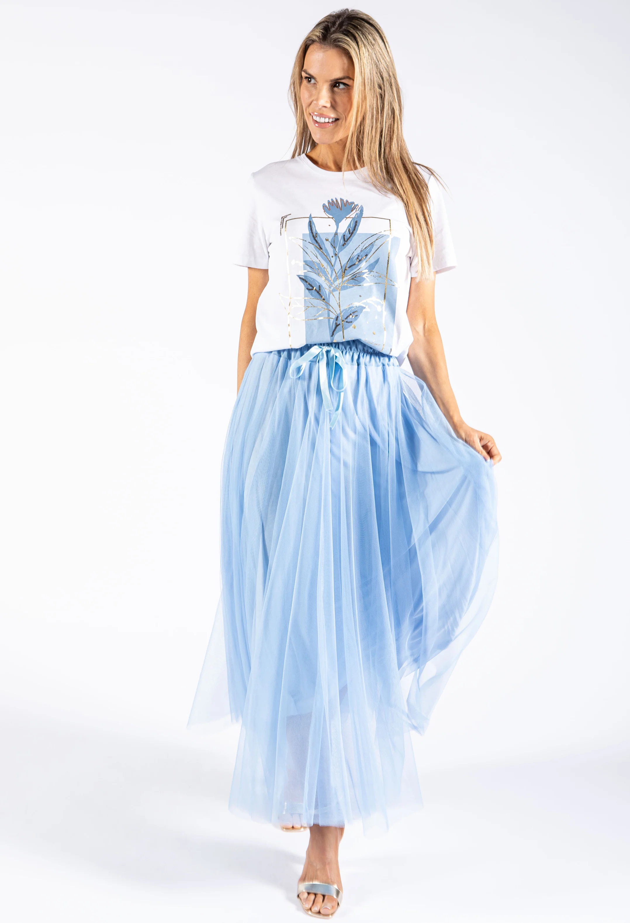 Mini Bloom Faux Button Down Skirt in Afternoon Sky Blue