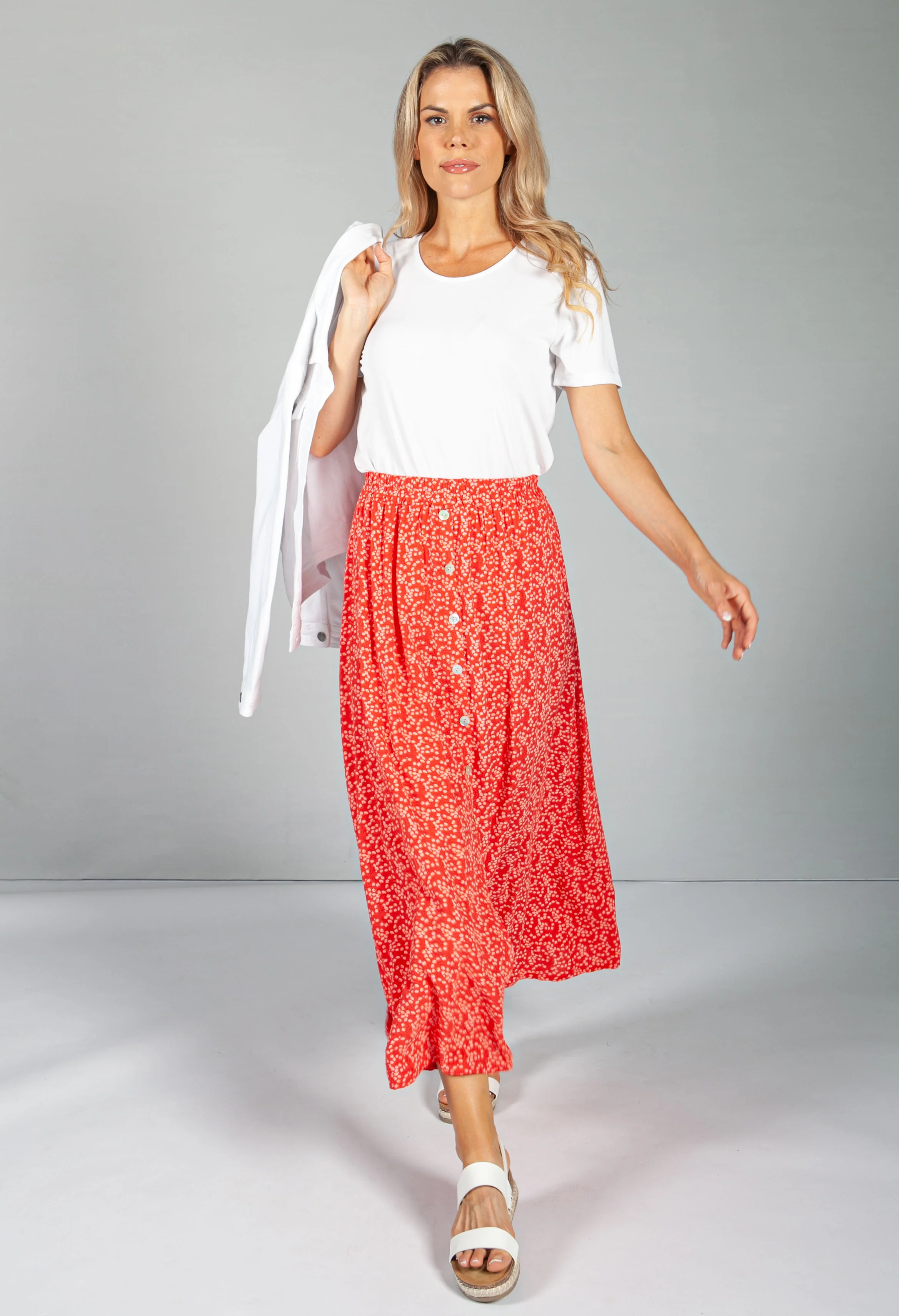 Mini Bloom Faux Button Down Skirt in Ruby Red