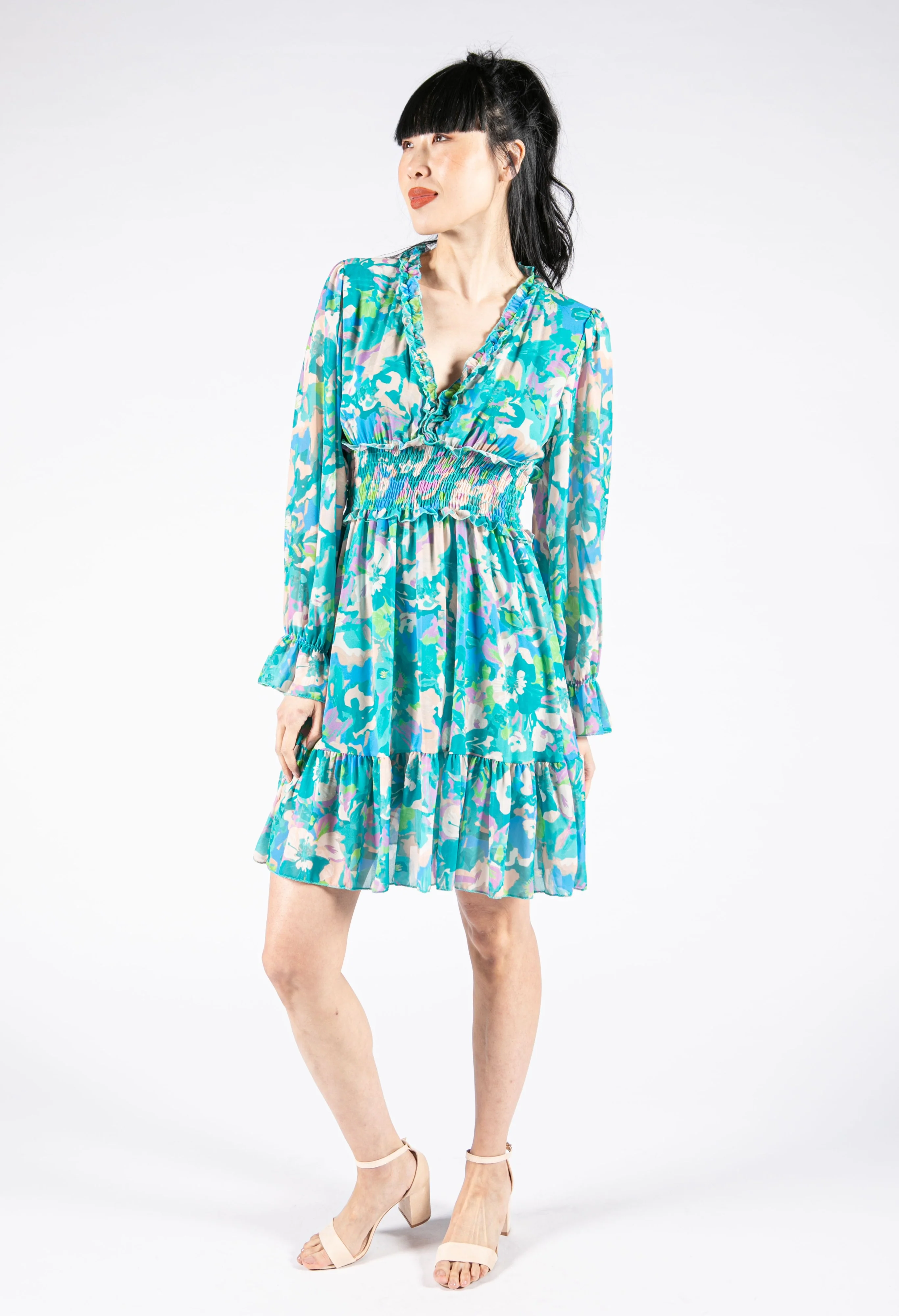 LEOPARD PRINT RUFFLE DRESS WITH LONG SLEEVES