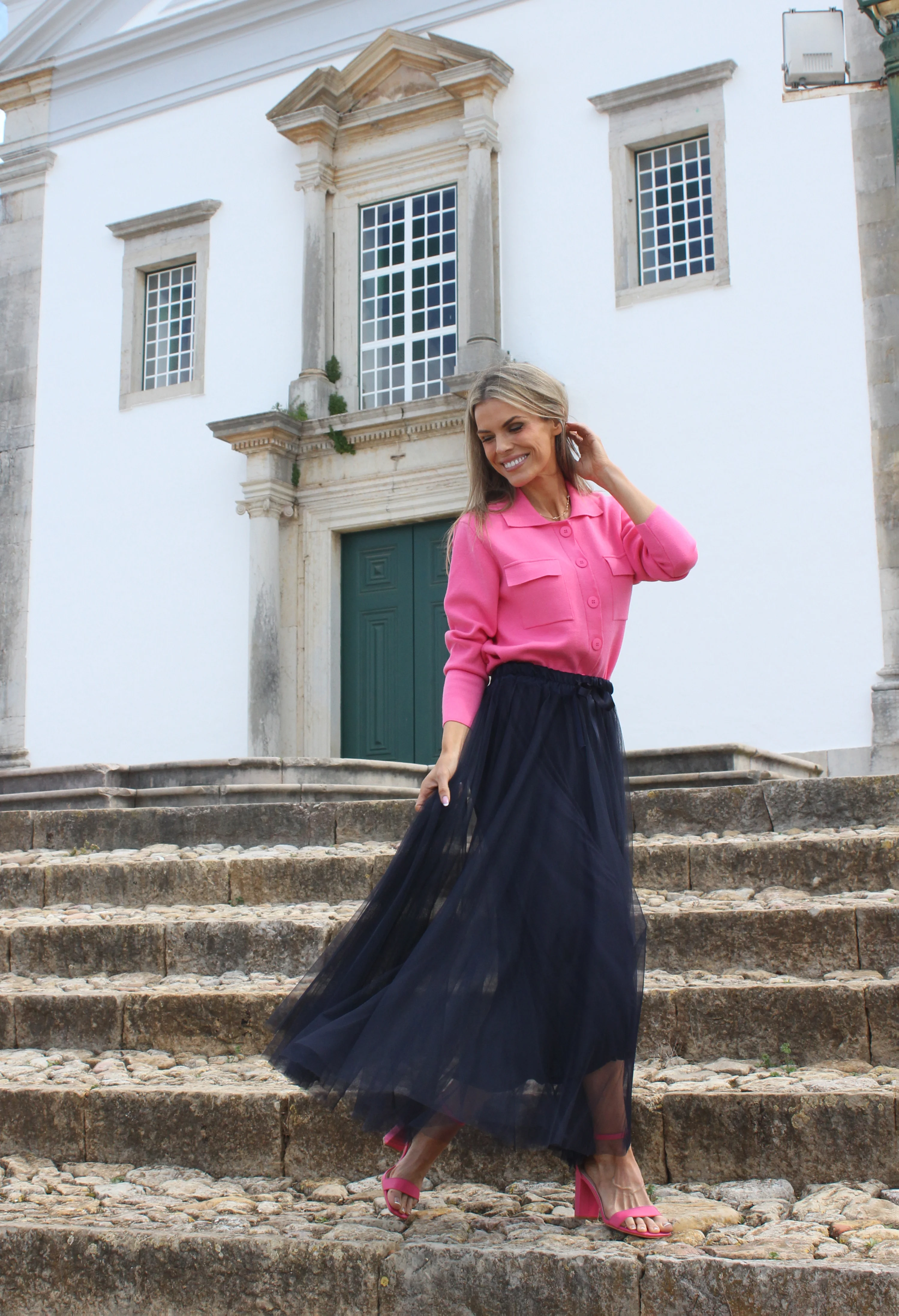 Mini Bloom Faux Button Down Skirt in Deep Navy